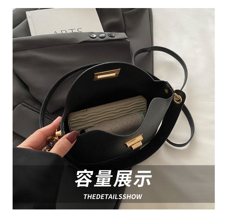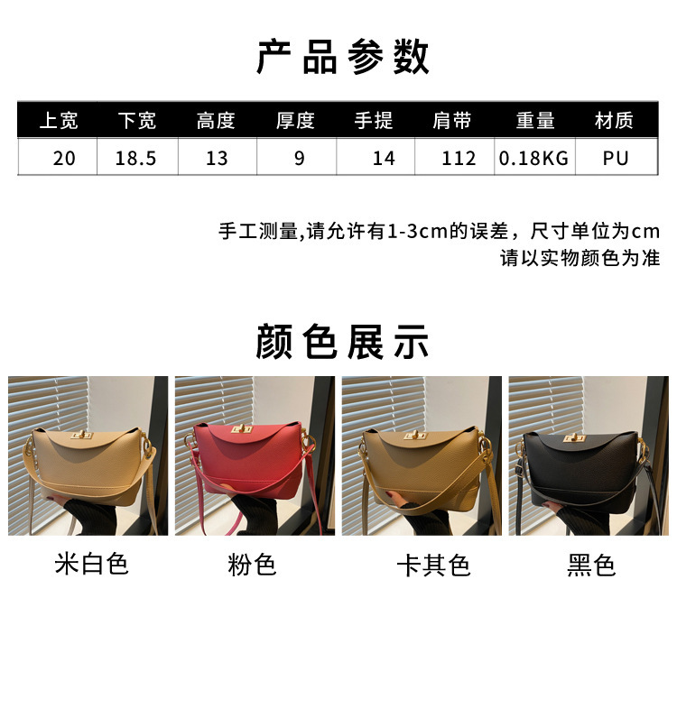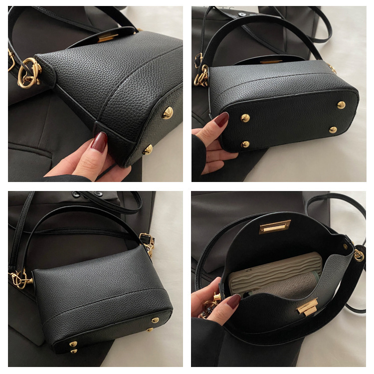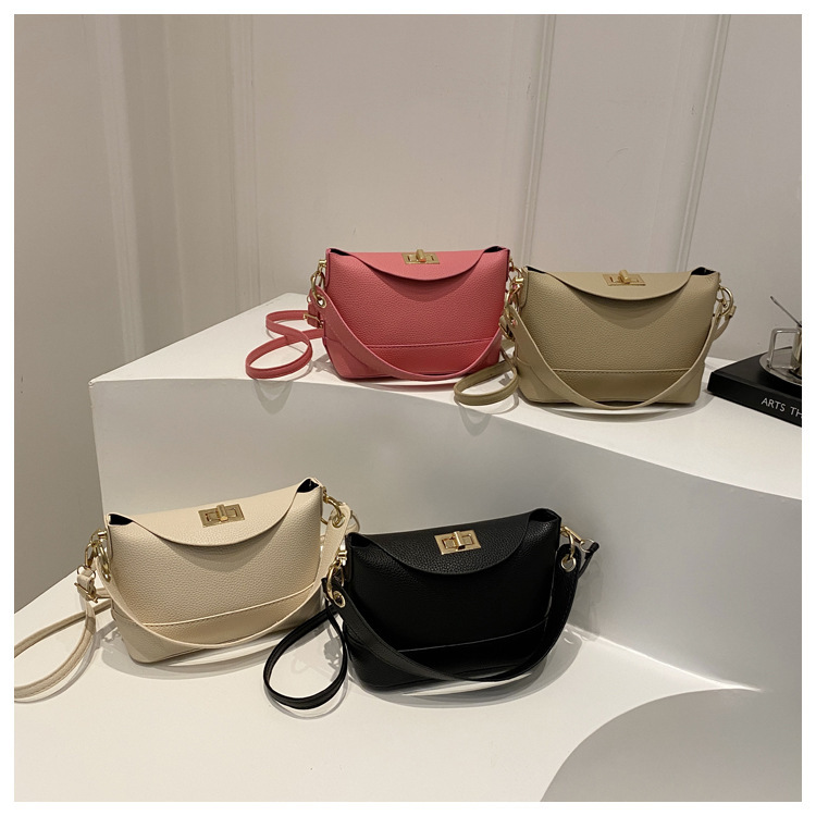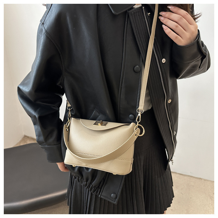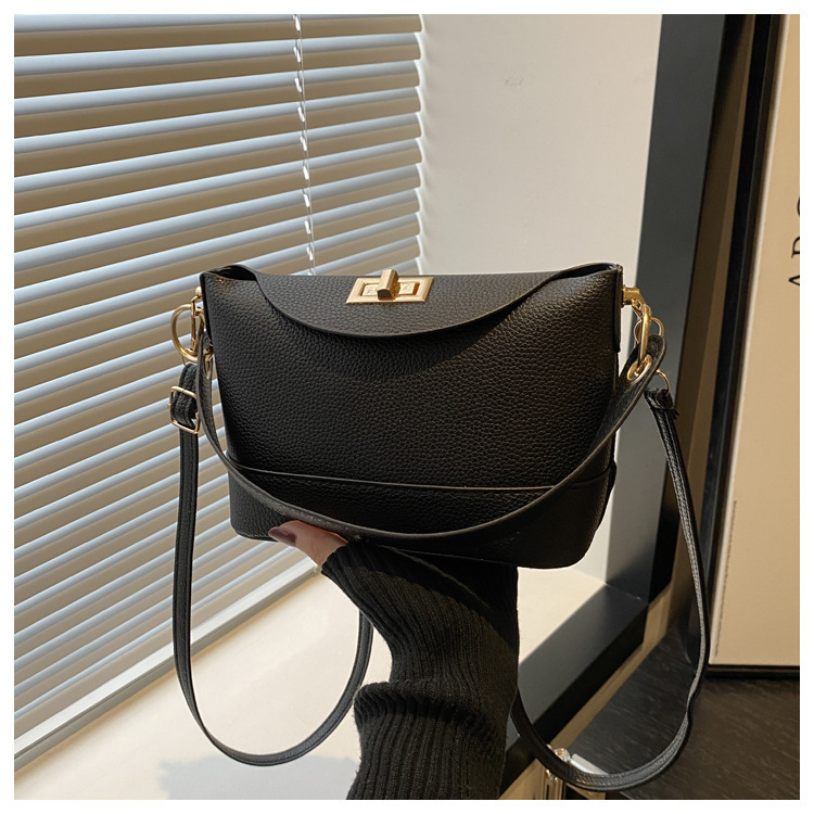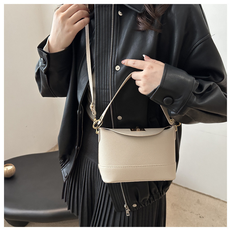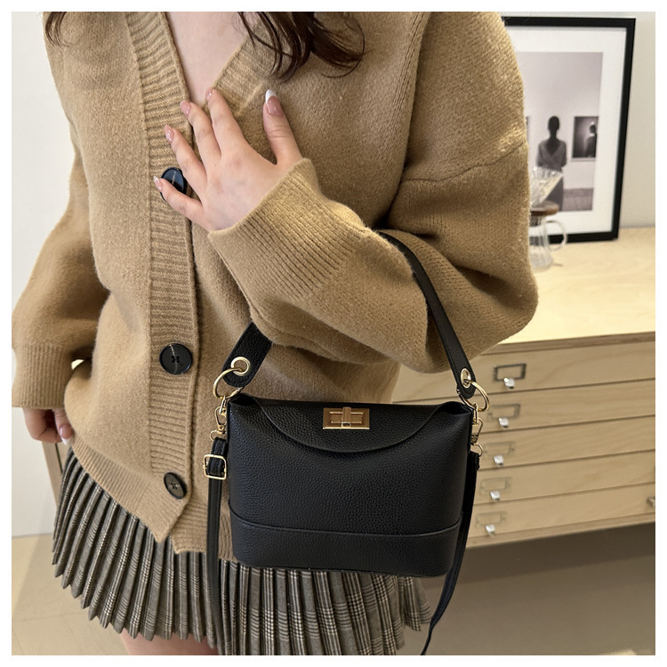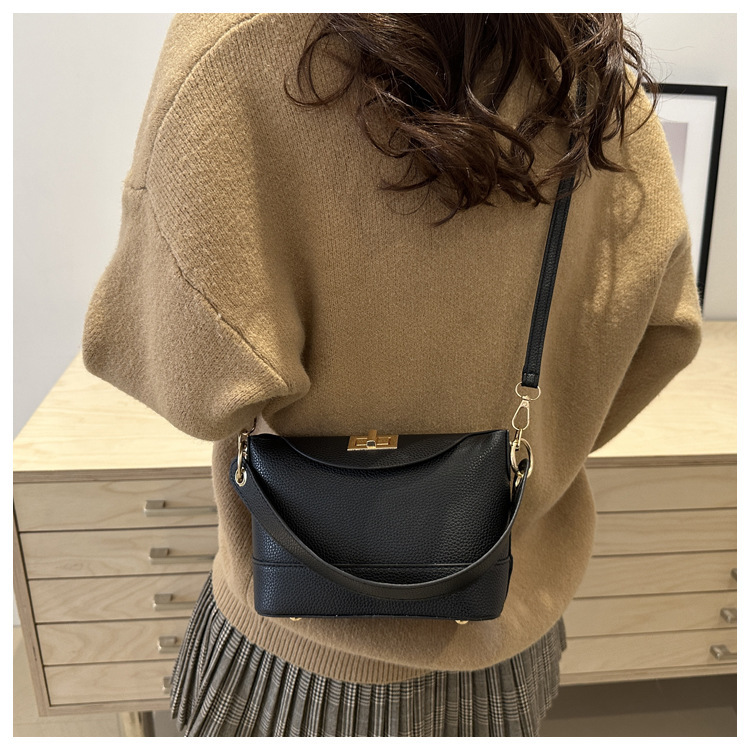 Moda de color sólido litchi 2024, nuevo bloqueo de invierno de estilo exterior de hombro casualidad, bolso de mano pequeño para mujeres