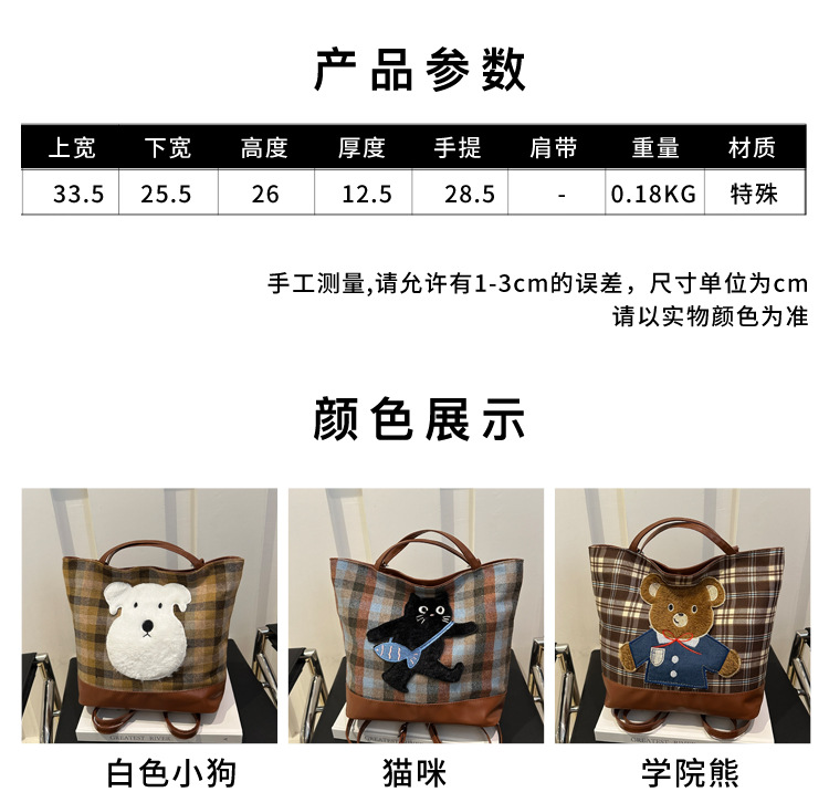 Otoño e invierno bolsas de mochila a cuadros para mujeres 2024 nueva moda coreana bolsas de gran capacidad casuales