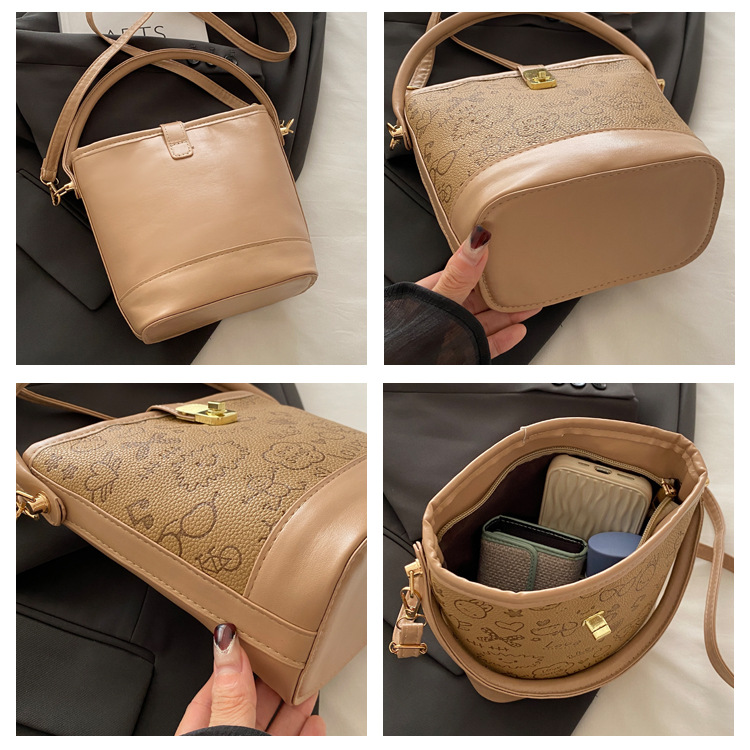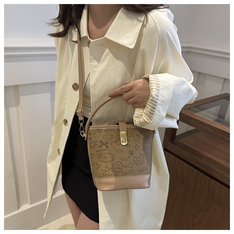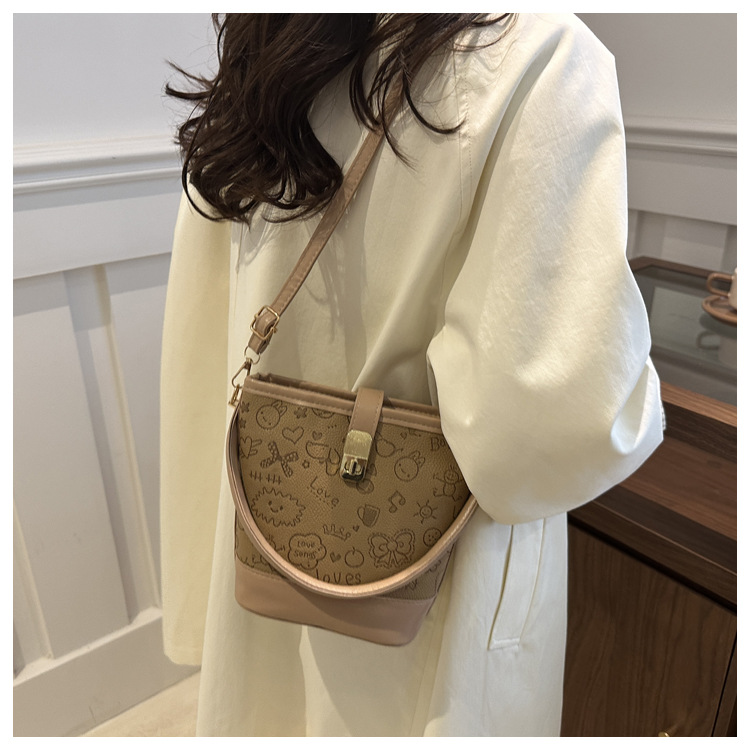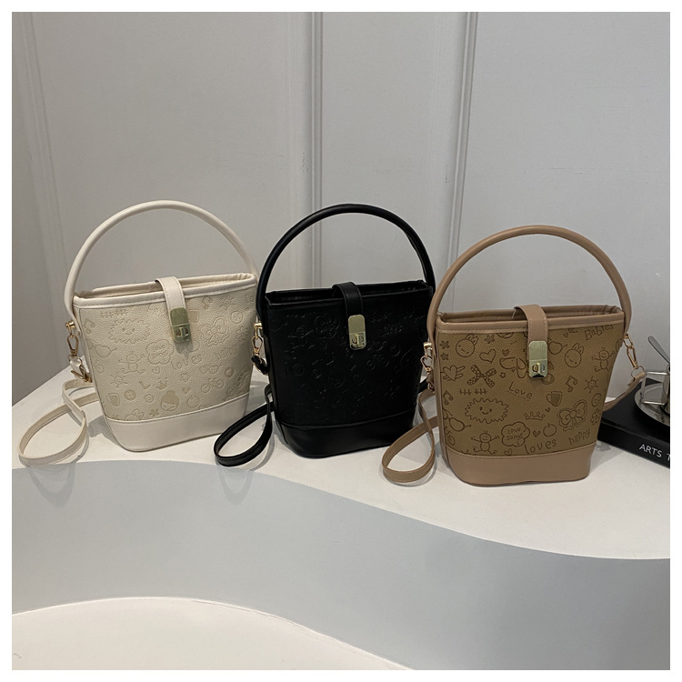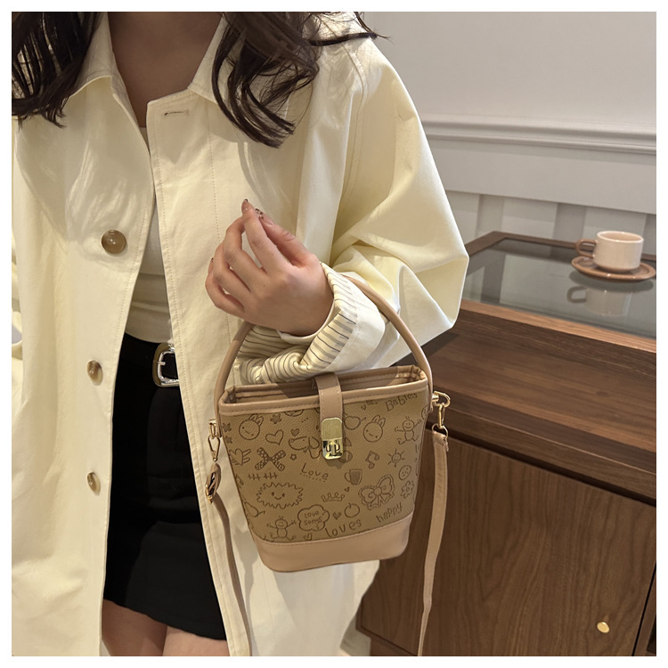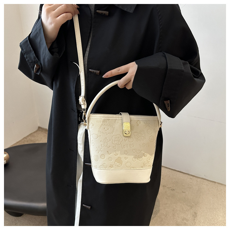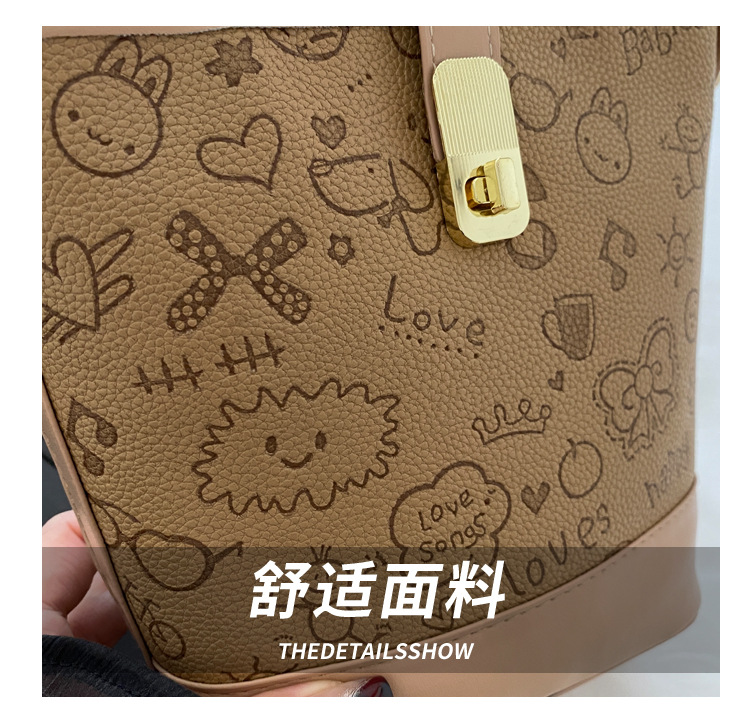 Otoño e invierno nuevo bolso de mujer 2024 moda caricatura bolso de cubo de mano versátil estilo extranjero mochila de viaje