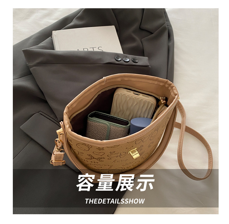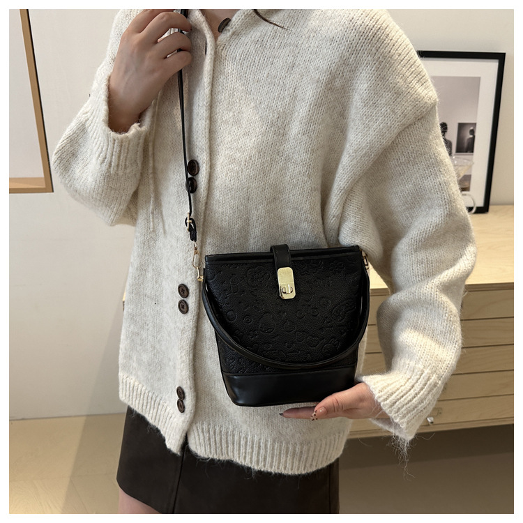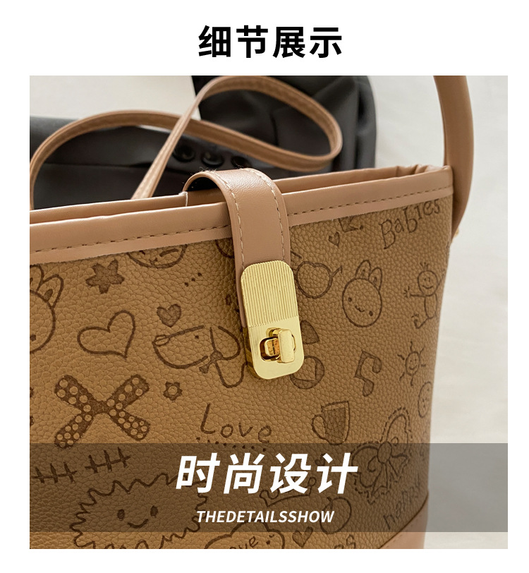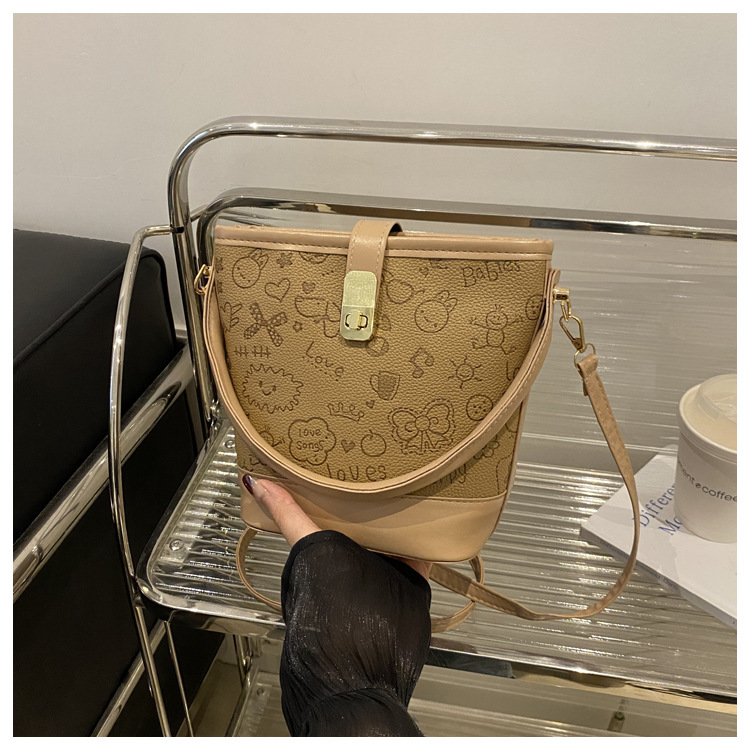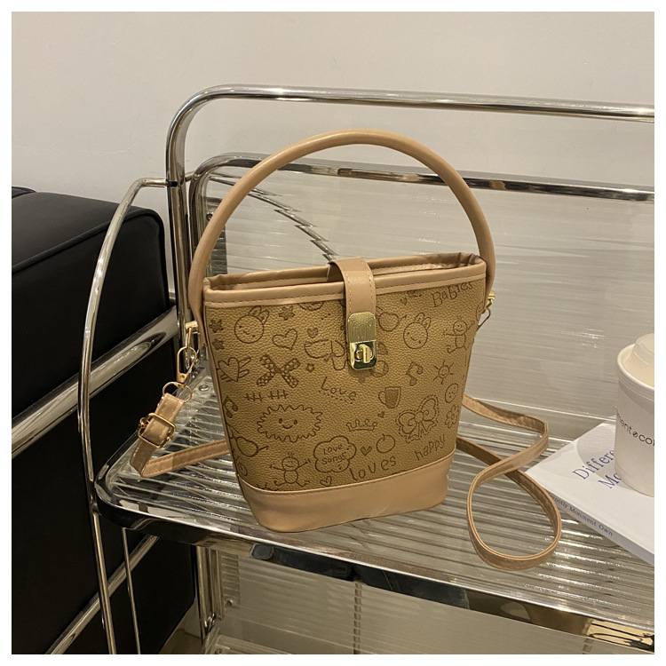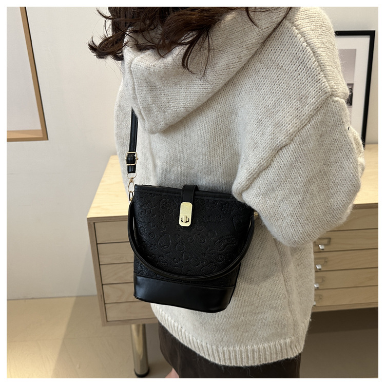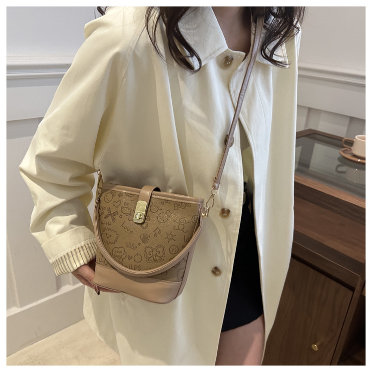 Otoño e invierno nuevo bolso de mujer 2024 moda caricatura bolso de cubo de mano versátil estilo extranjero mochila de viaje