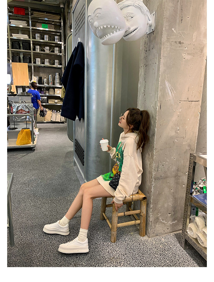 Versión de piel de oveja en stock ~ cordón de cuero redondo con una base gruesa aumentada zapatos blancos casuales zapatos de skate muffin zapatos de galletas