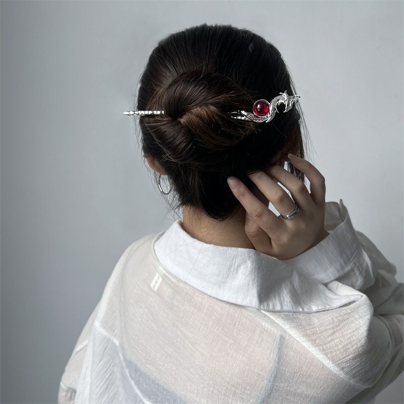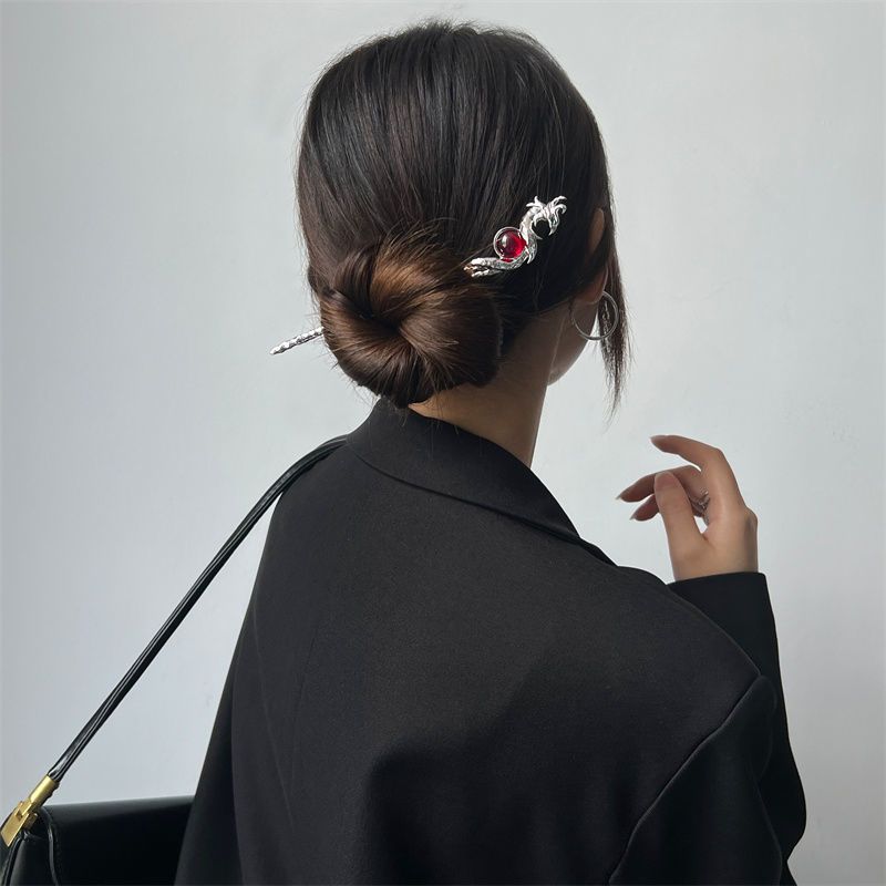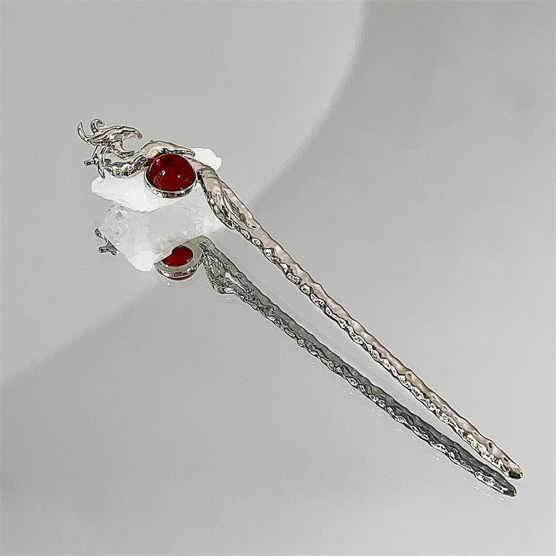 Phoenix rojo Jade horquilla nueva moda nacional chino luz diaria lujo nicho diseño alto sentido Cabeza trasera updo horquilla