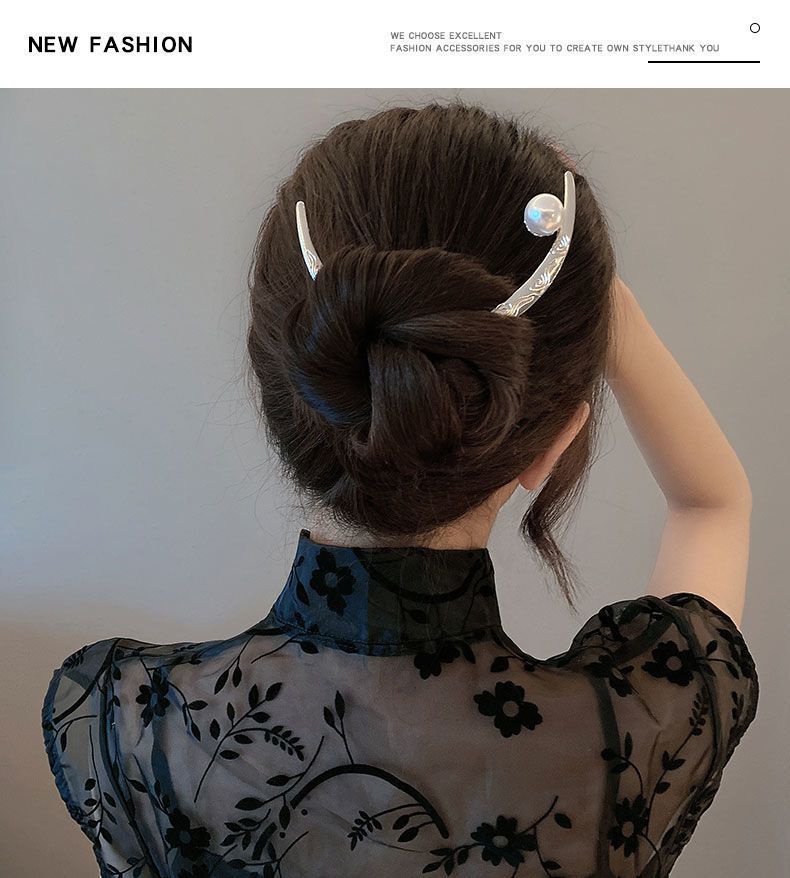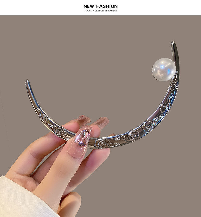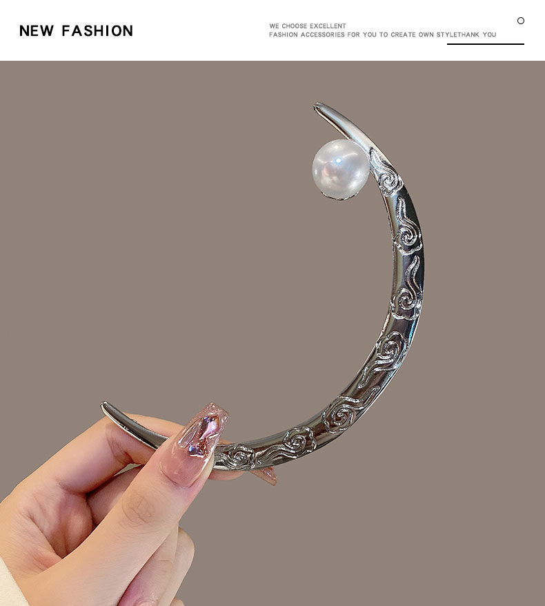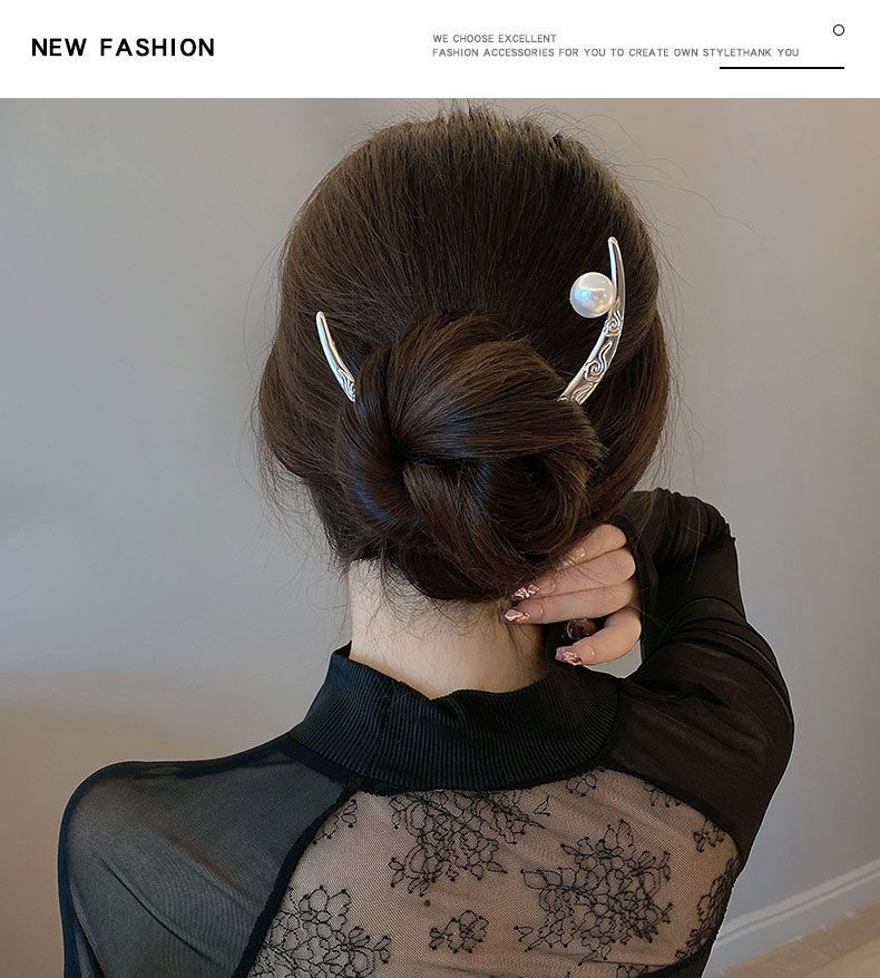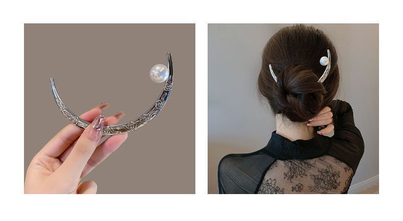 Estilo chino Luna horquilla retro horquilla de medio mes estilo antiguo de las mujeres de alto grado pelo updo artefacto espalda cuchara palillos tocado