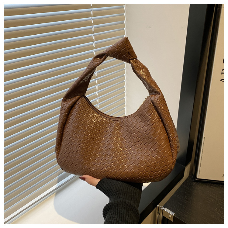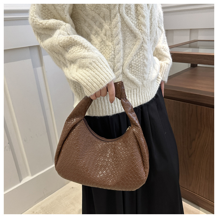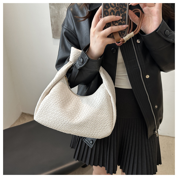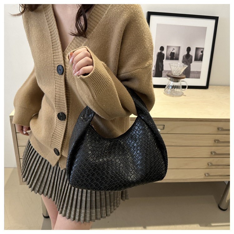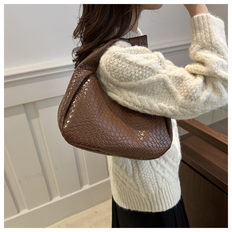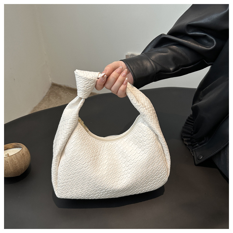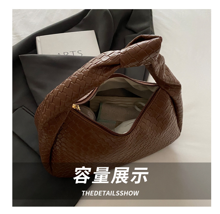 Casual retro de gran capacidad bolso de hombro de color sólido 2025 nuevo estilo de moda extranjera literatura y arte tejido brazaleta