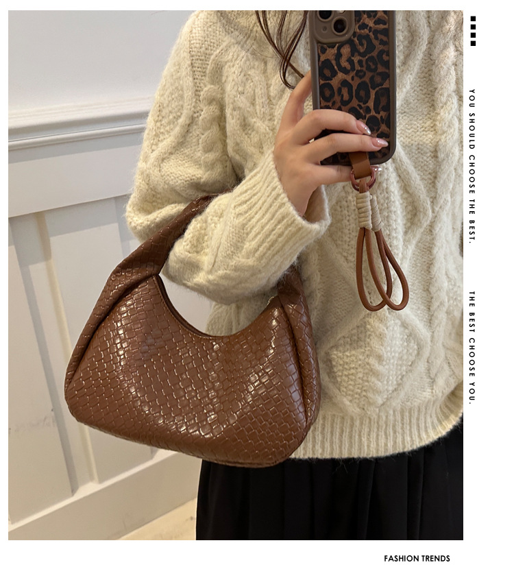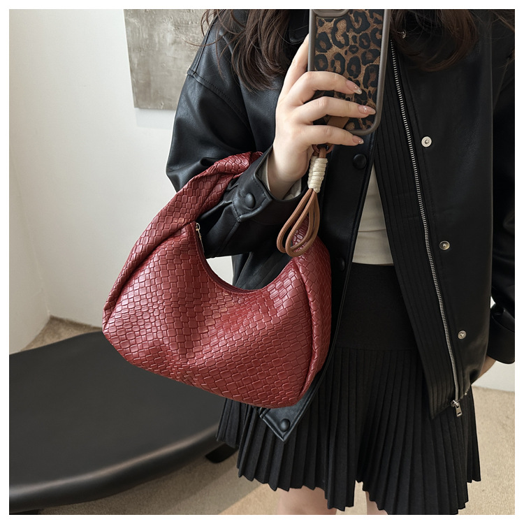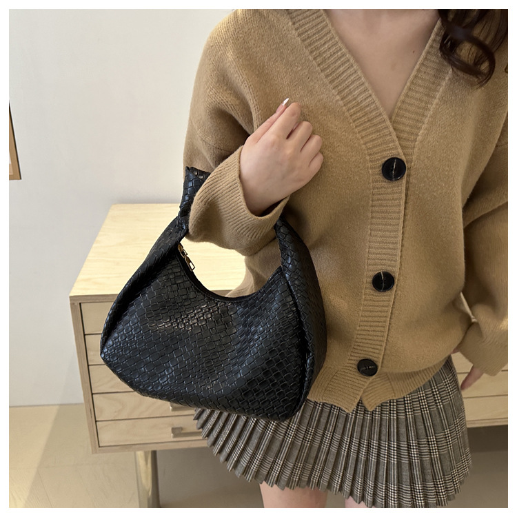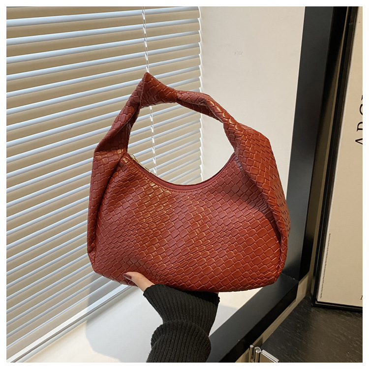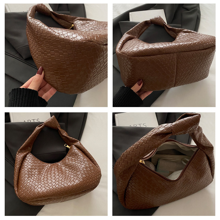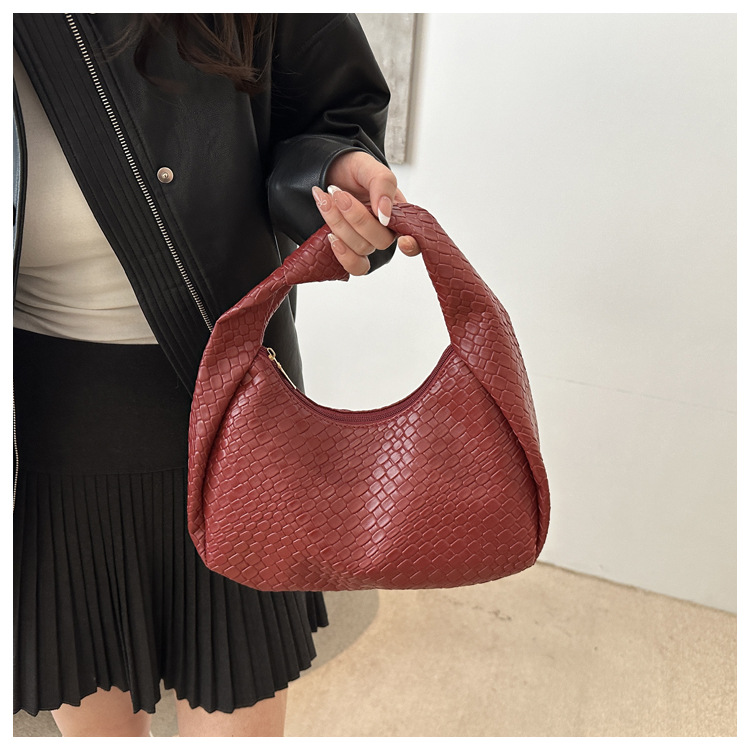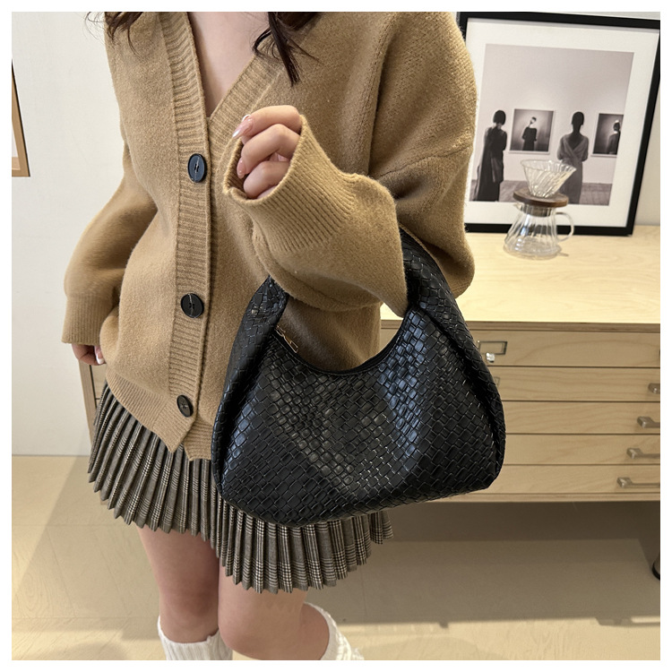 Casual retro de gran capacidad bolso de hombro de color sólido 2025 nuevo estilo de moda extranjera literatura y arte tejido brazaleta