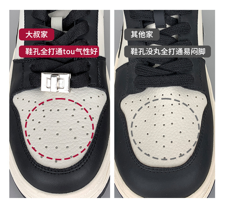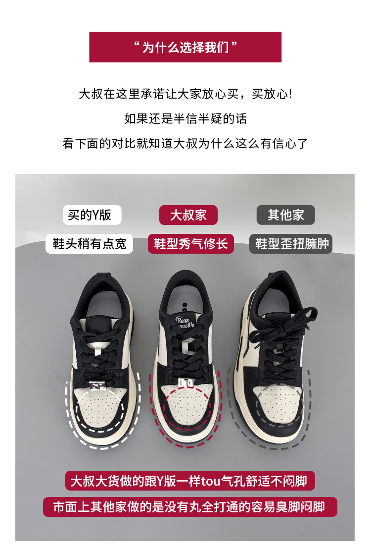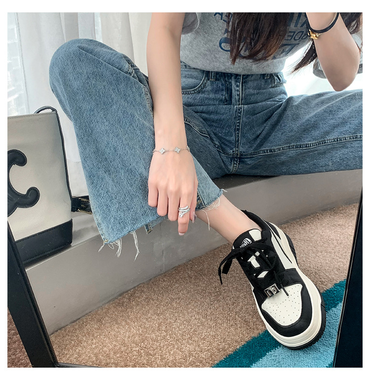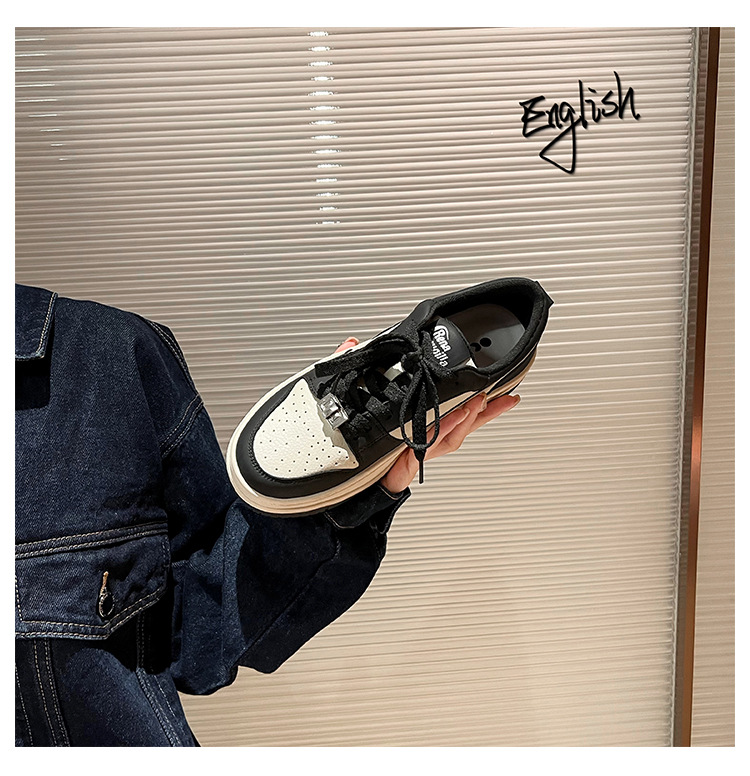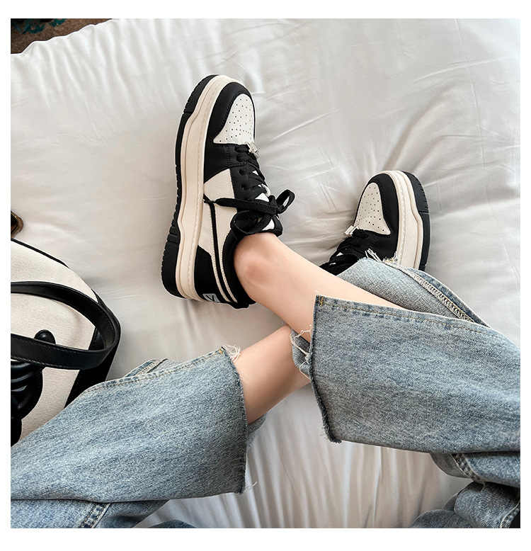 Versión de piel de vaca de alta calidad ~ Zapatos blancos de suela gruesa de cuero para mujer, primavera de 2025, nuevas zapatillas deportivas en blanco y negro, zapatillas de deporte panda