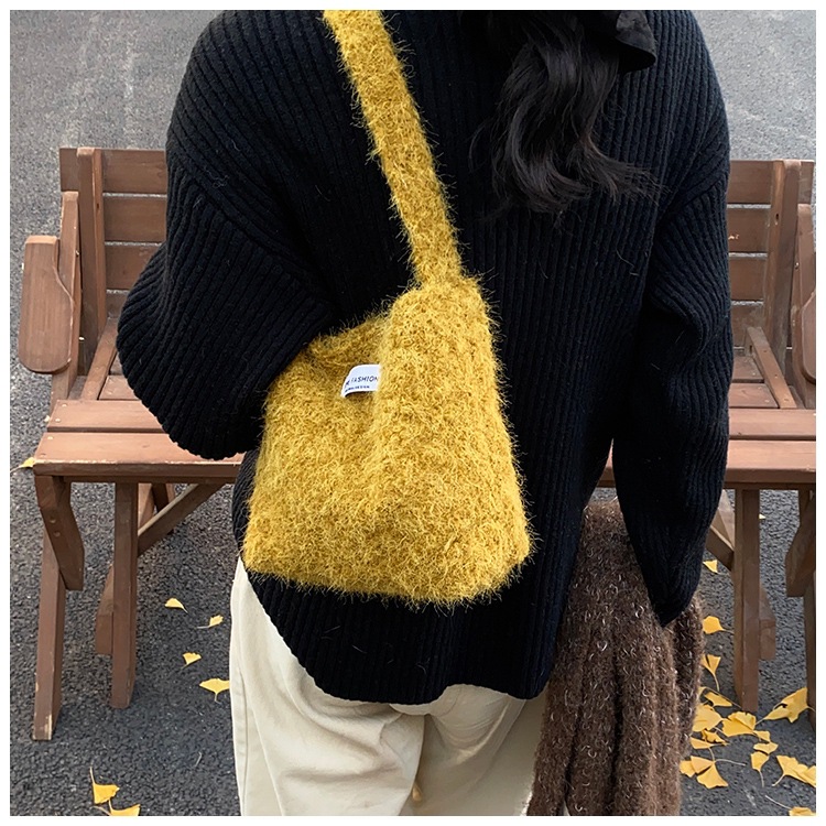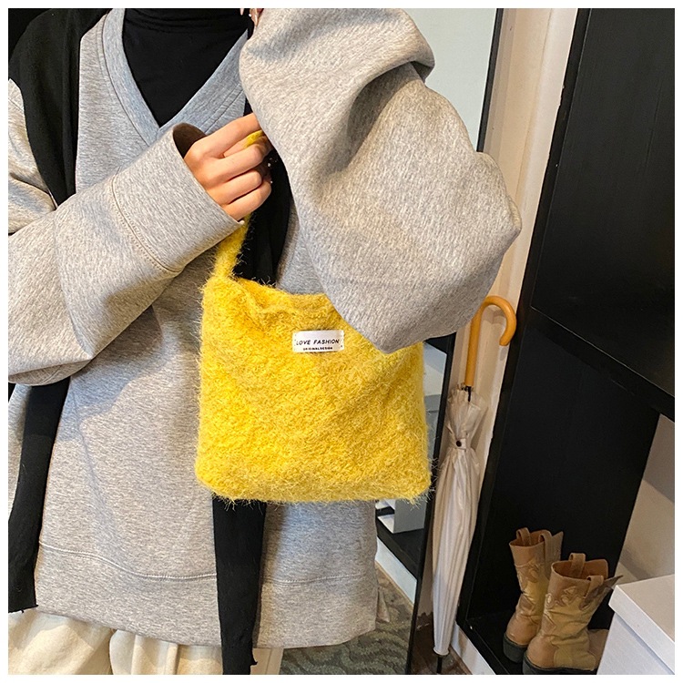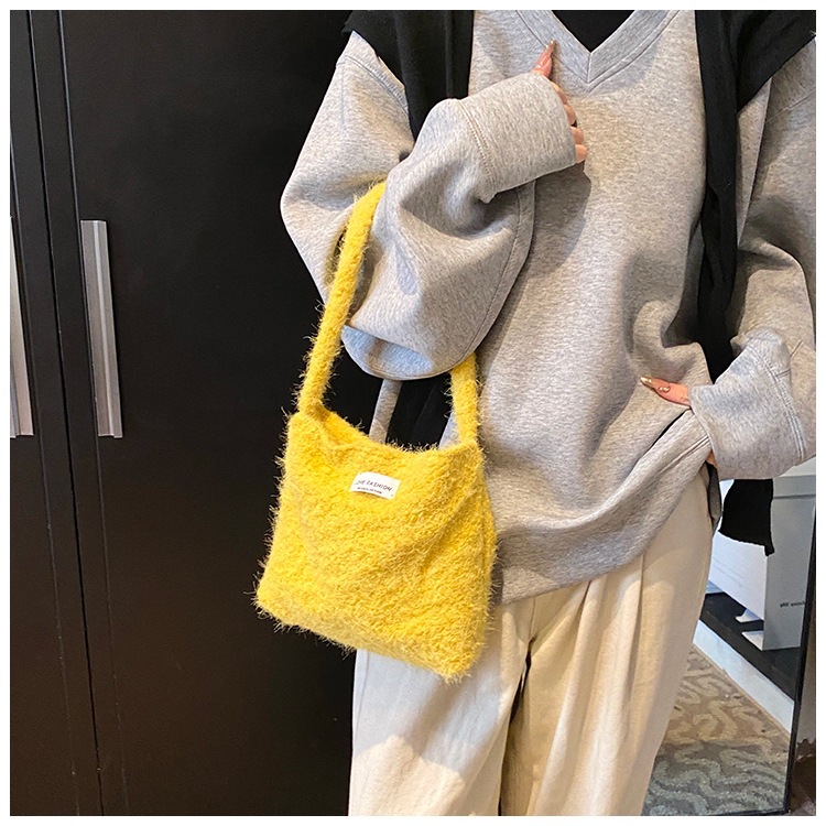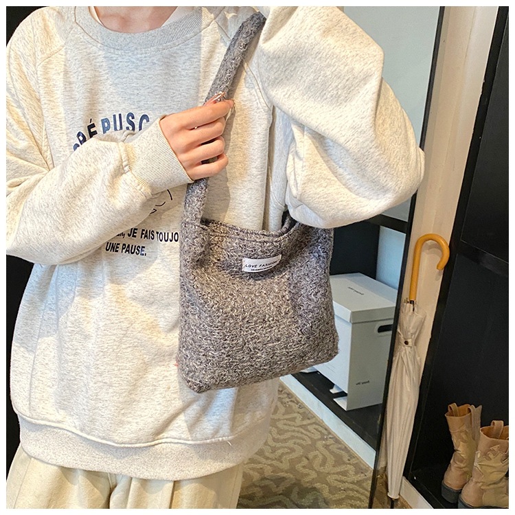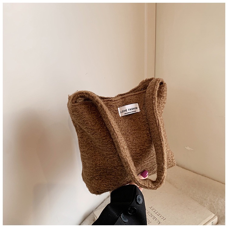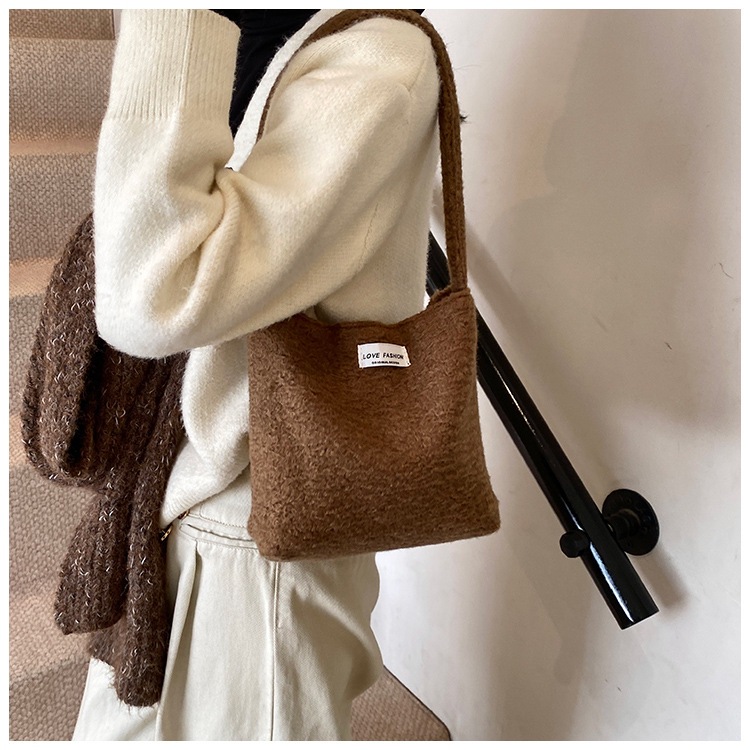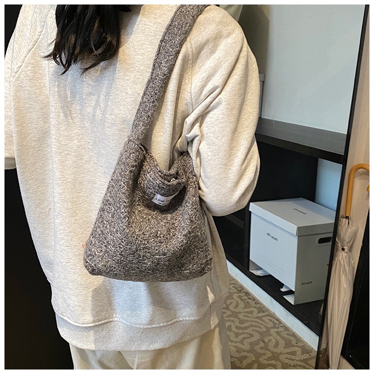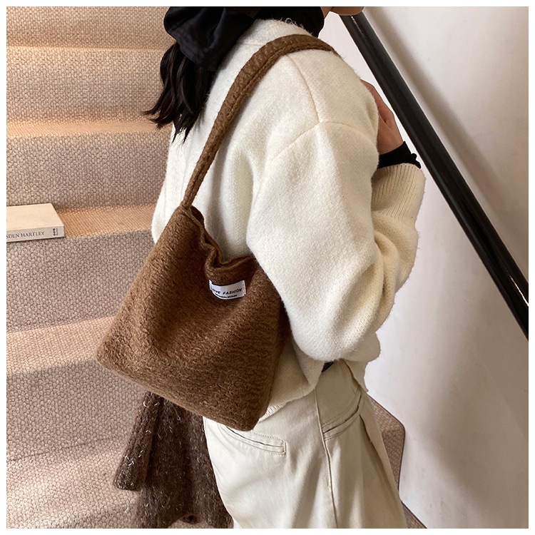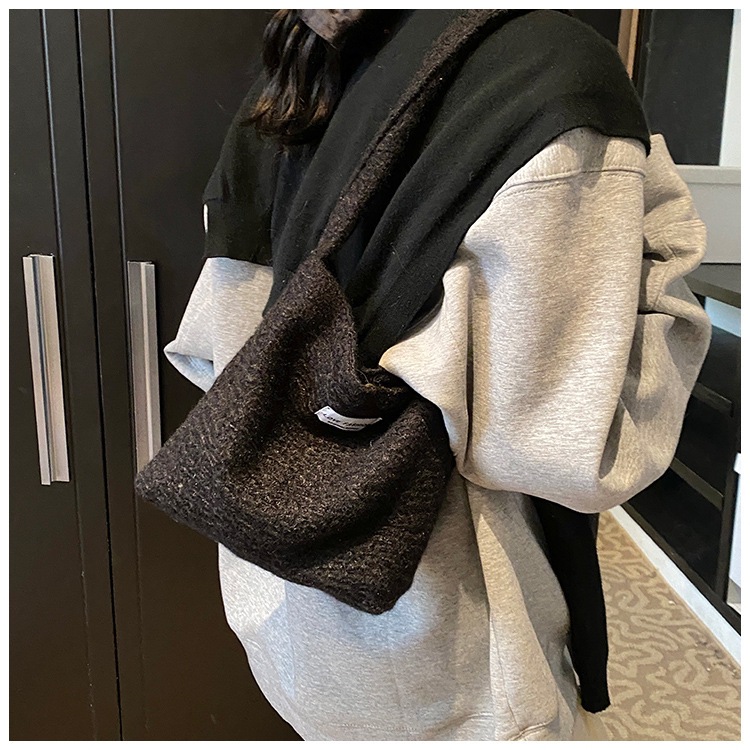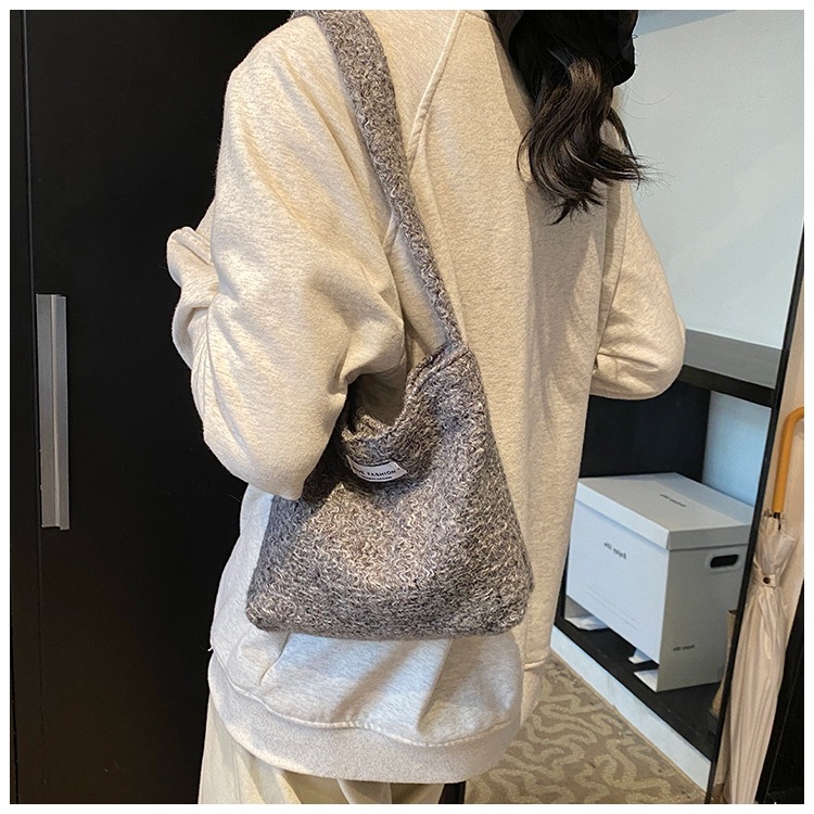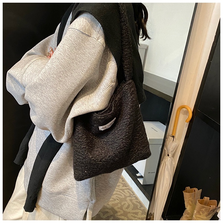 Bolsa de hombro de lana de moda simple para mujeres 2024 nuevo otoño y invierno de moda de la gripe ligera bolso de mano de lujo bolso de brazo