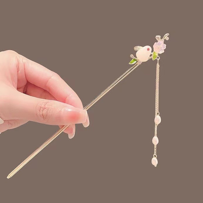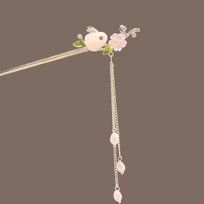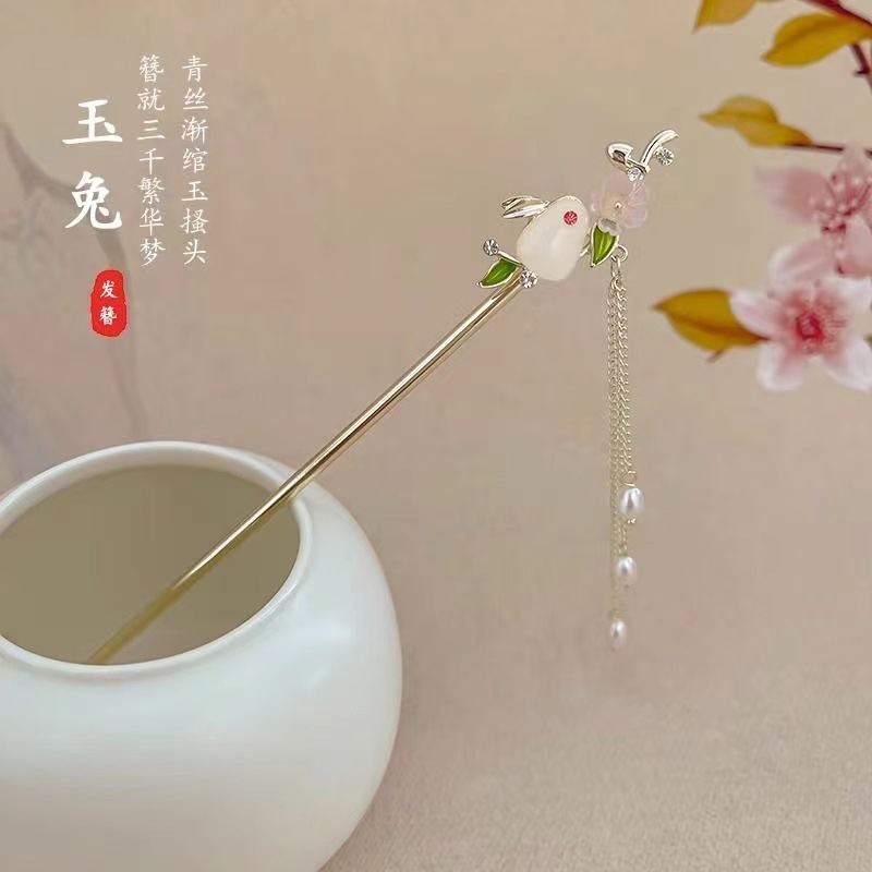 Jade conejo pinzas de cabello mujeres estilo antiguo tocado de ropa de estilo chino pasos de rotación Su jade pinzas de perlas niños lindos cheongsam nuevo pinzas de estilo chino