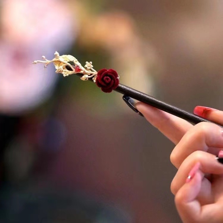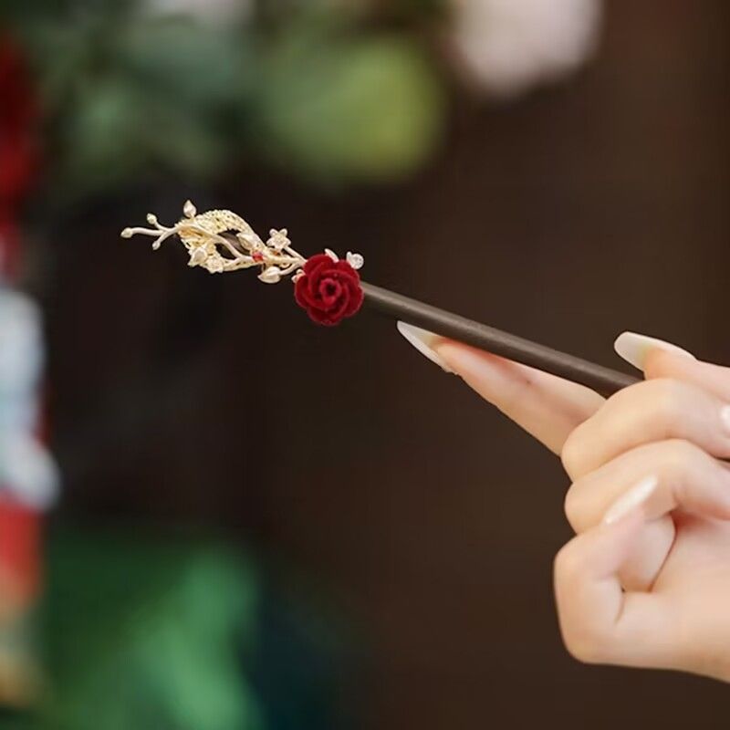 Clipper de cabello de rosa roja antigua niñas de alto nivel cheongsam nuevo estilo chino diario clipper de cabello tocado
