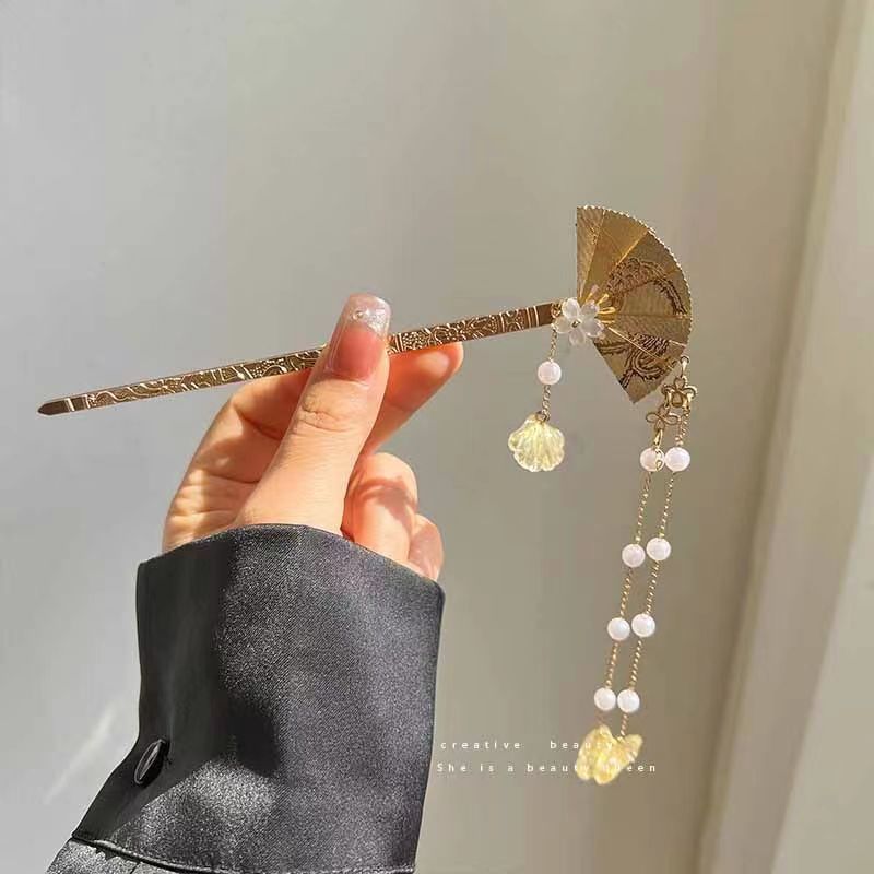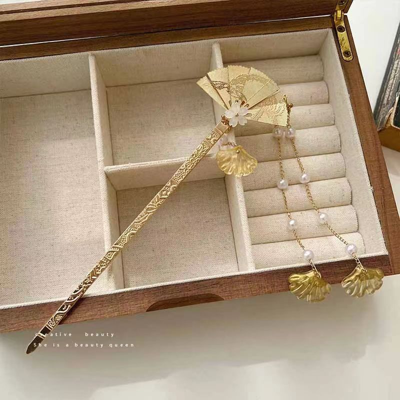 Abanico paso a paso horquilla de borla de perlas de alto valor estilo antiguo de alta calidad horquilla nuevo estilo chino frío y largo accesorios para el cabello con borla
