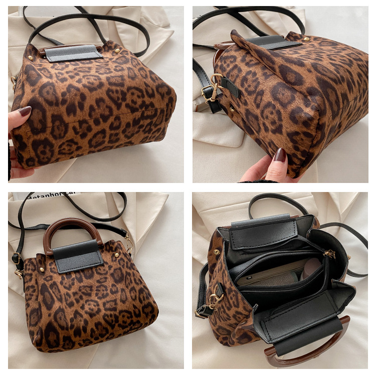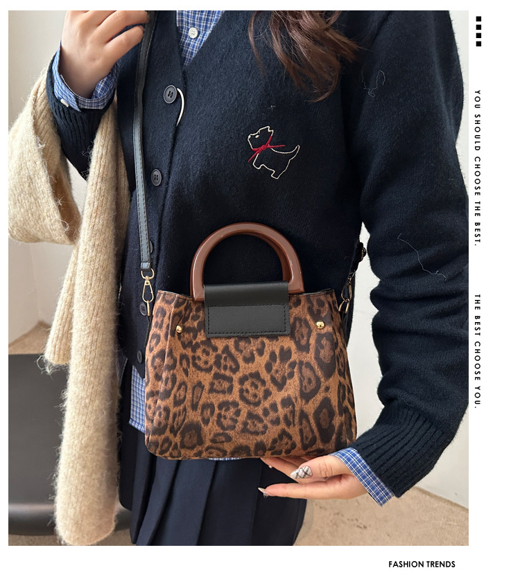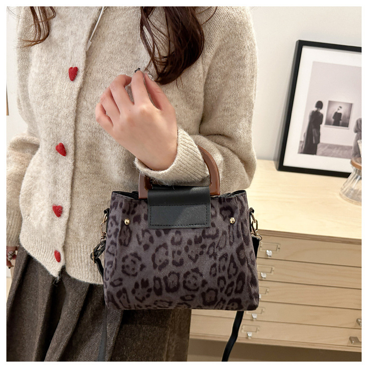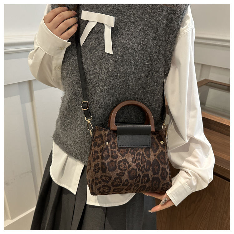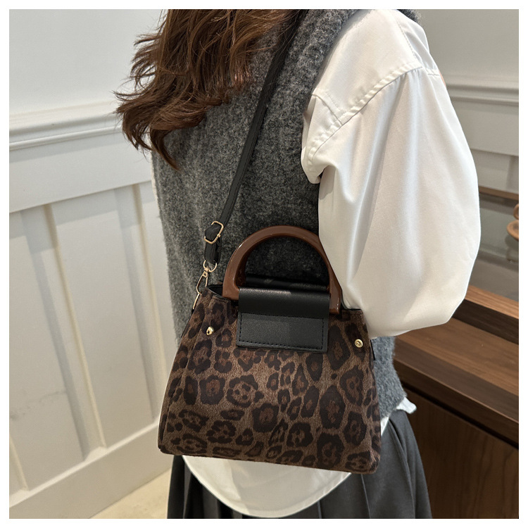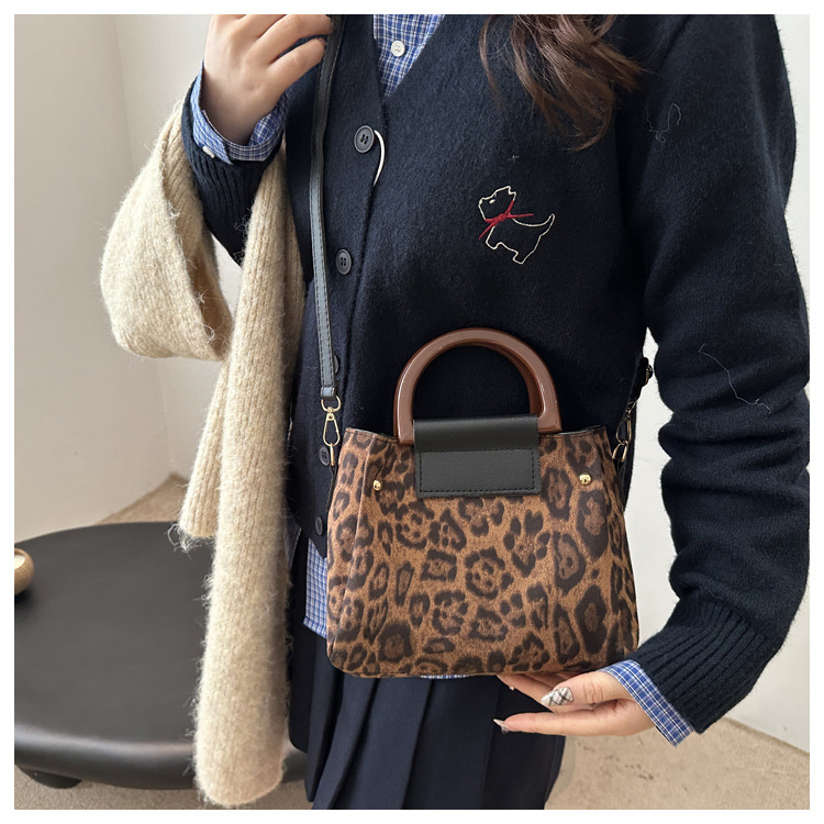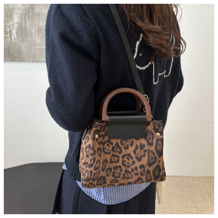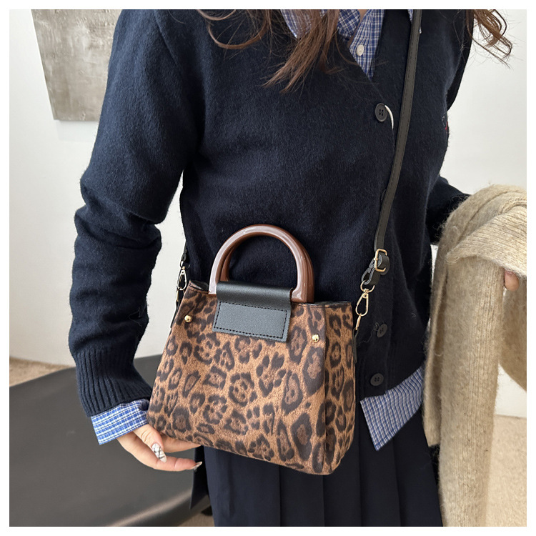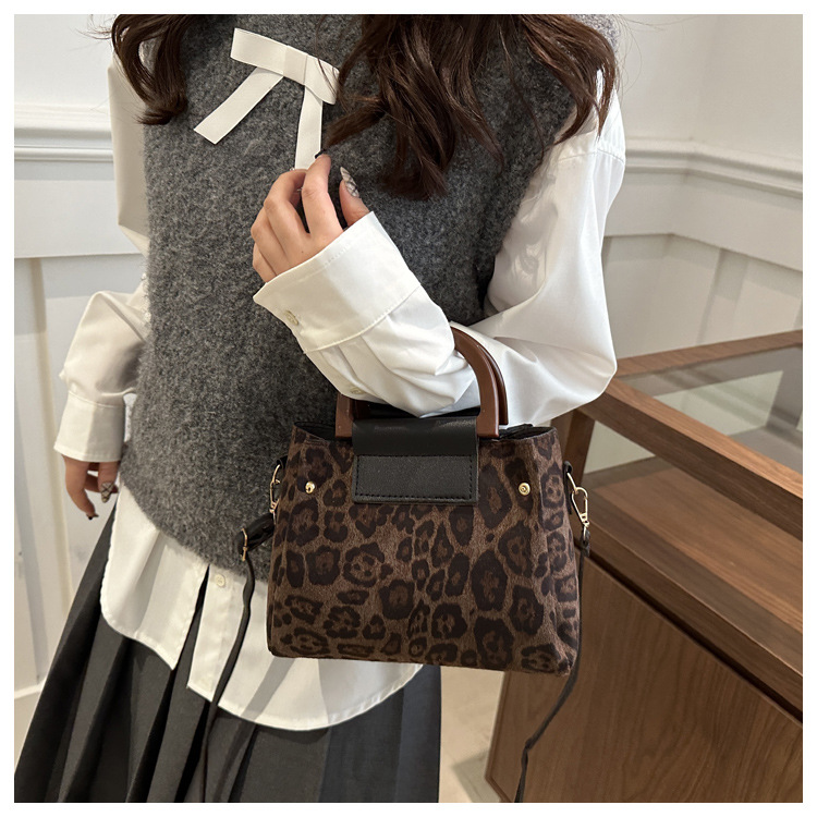 Moda coreana retro leopardo bolso de mano 2025 primavera nueva mujer bolso de hombro de color contraste temperamento bolso cuadrado
