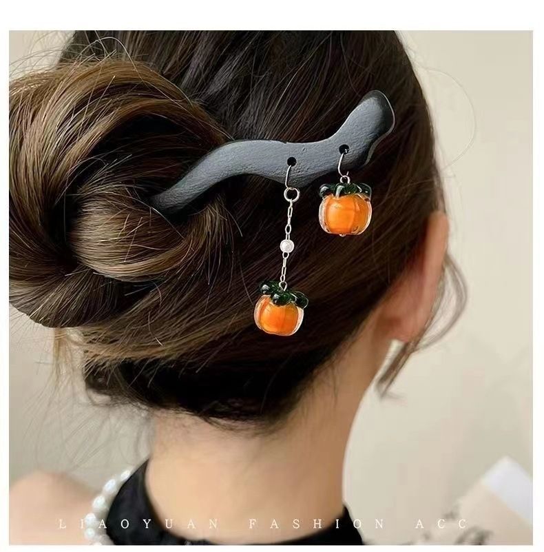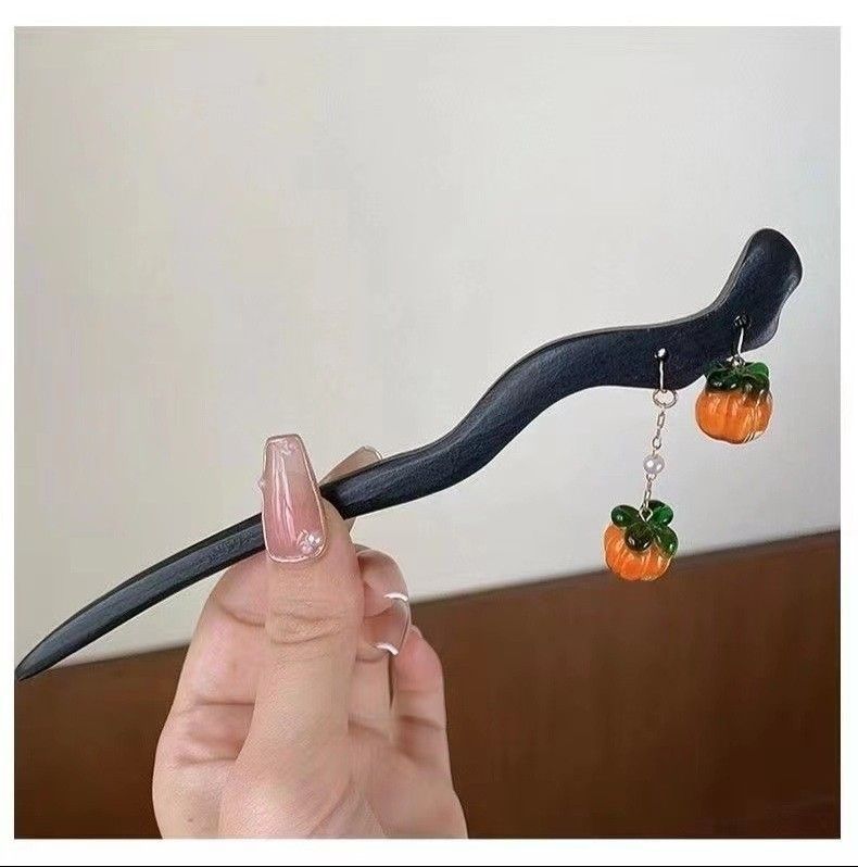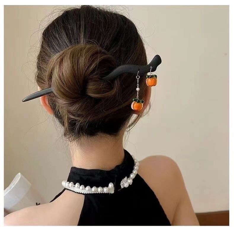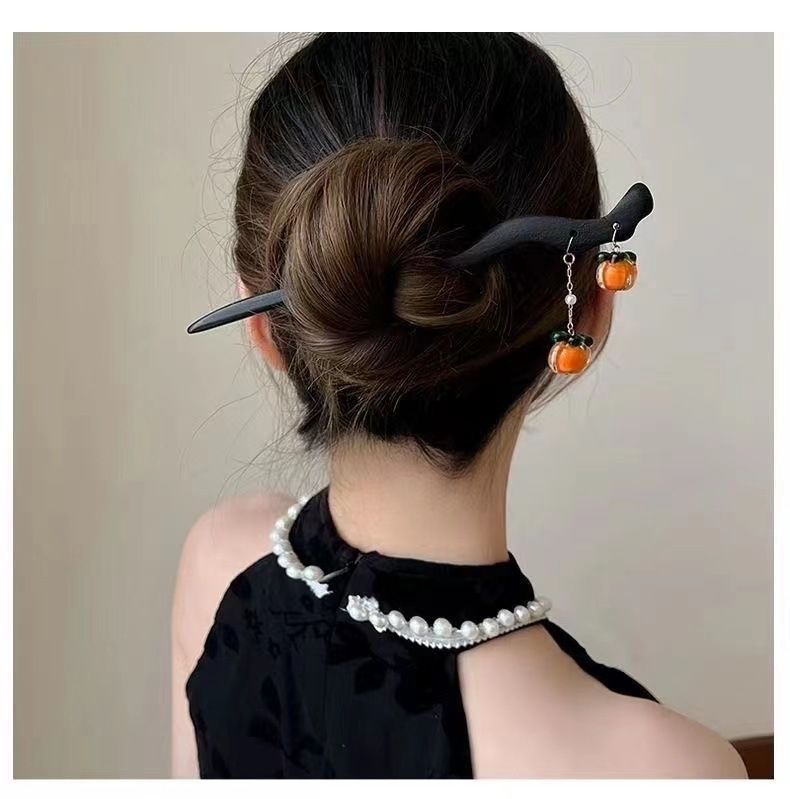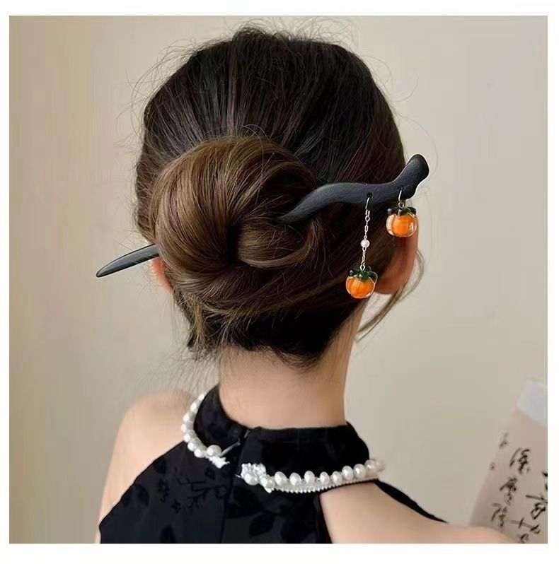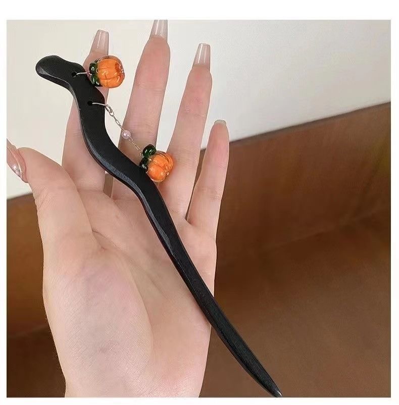Caqui Ruyi ~ de alta calidad updo horquilla estilo antiguo hanfu tocado simple cheongsam accesorios horquilla de madera accesorios para el cabello de las mujeres