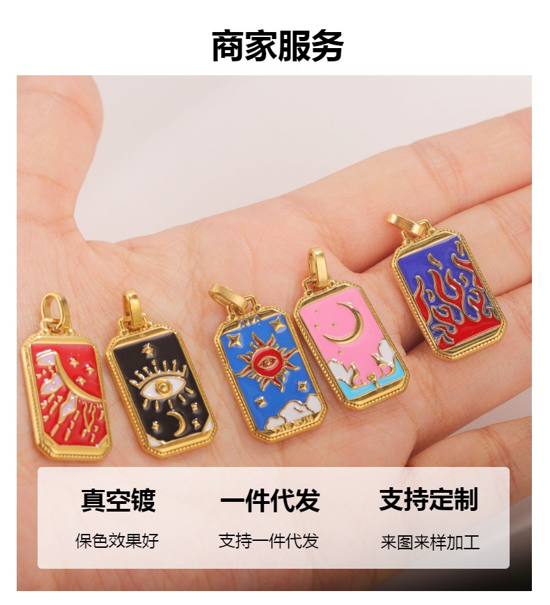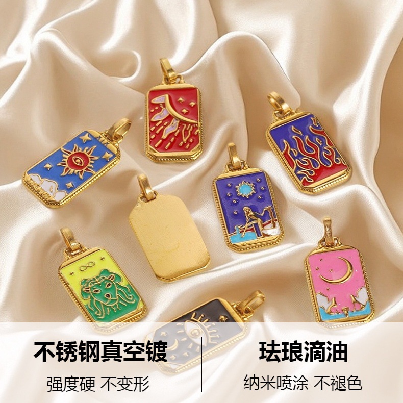 Europa y América esmalte goteo de aceite tarot colgante colgante DIY accesorios de joyería acero inoxidable al por mayor vacío dorado tarjeta colgante