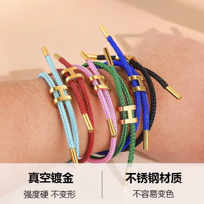 Acero inoxidable transfronterizo 18K chapado en oro I hebilla de alambre de acero pulsera de cuerda roja ajustable 3D oro duro titanio pulsera de acero trenzado