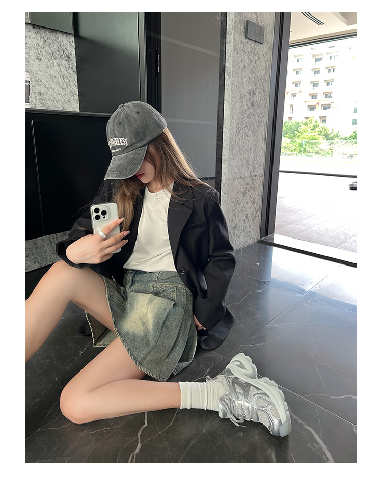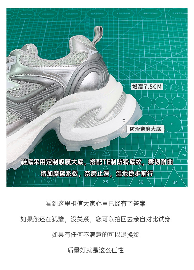 7.5cm de altura Oh ~ versión de cuero de vaca de altura de fondo grueso zapatos de papá mujeres 2024 primavera y otoño nuevos zapatos casuales transpirables de malla