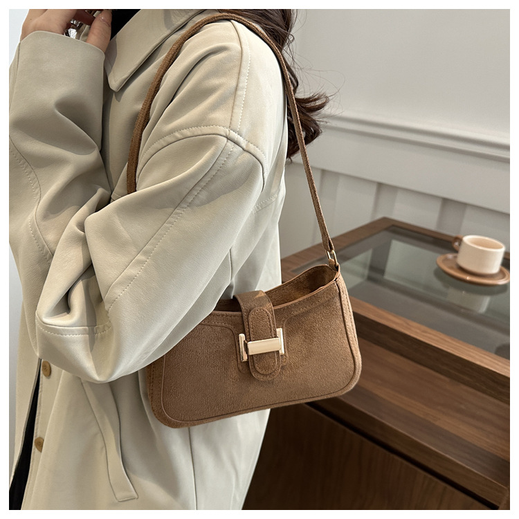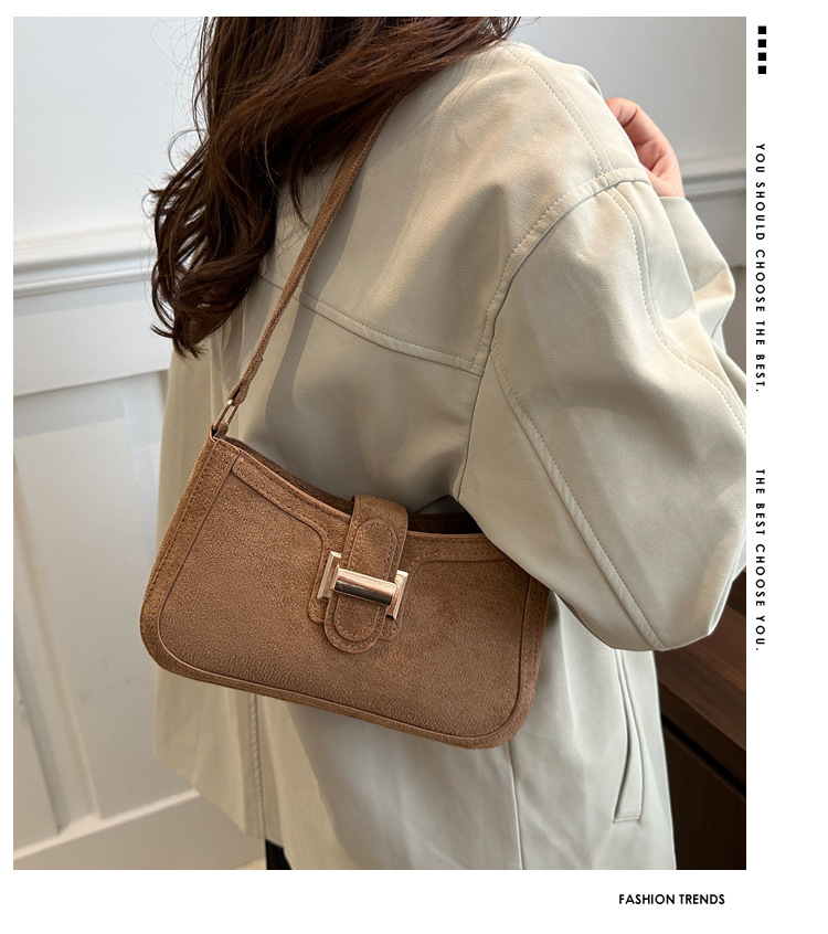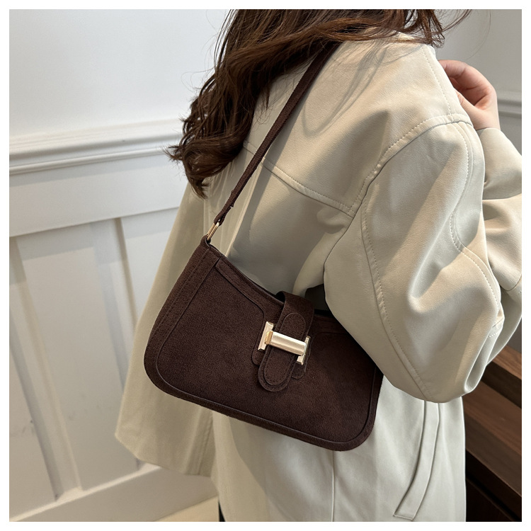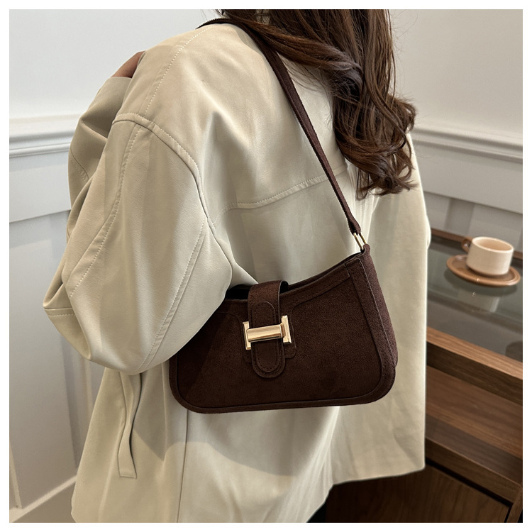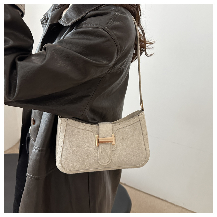 Diseño de nicho francés bolso de axila retro mujer 2024 nueva textura hebilla de cinturón bolso de mensajero de hombro de moda mujer