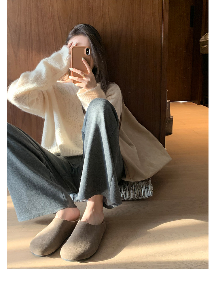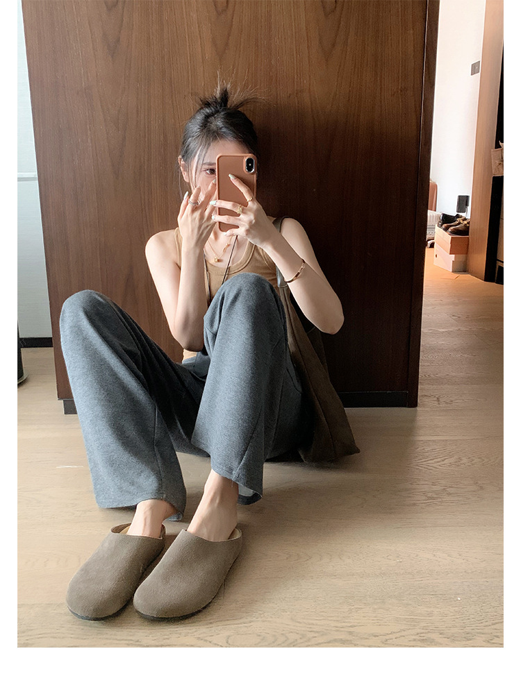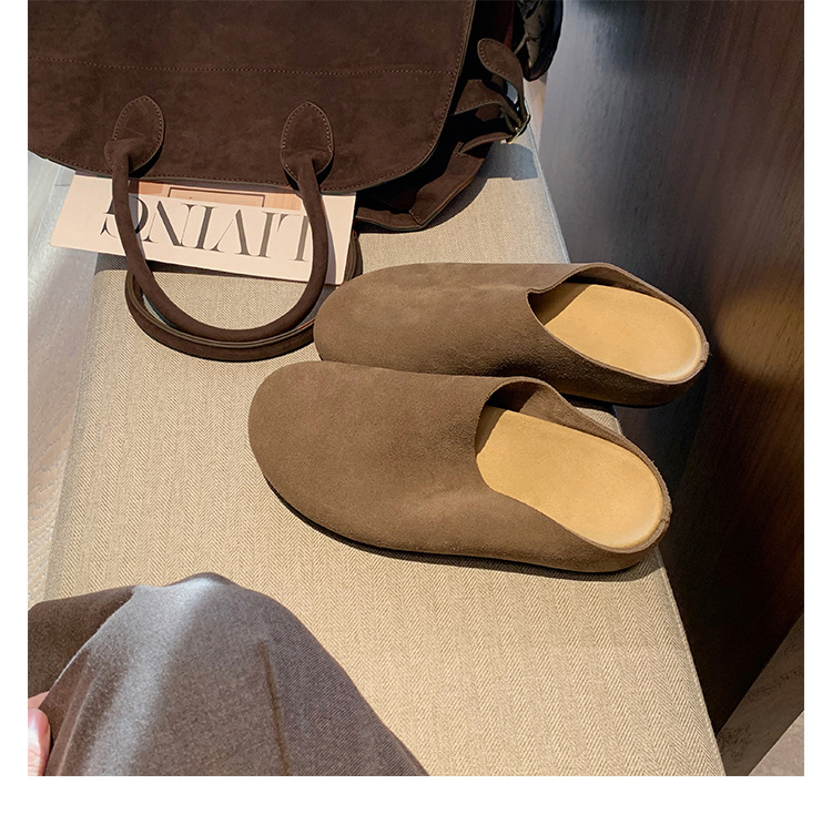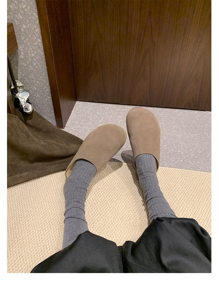 Todo el cuero de vaca ~ cuero real con una base gruesa Bocken zapatillas de mujer aumentando la altura de la base suave Mueller zapatillas Bocken medio zapatillas frías zapatillas