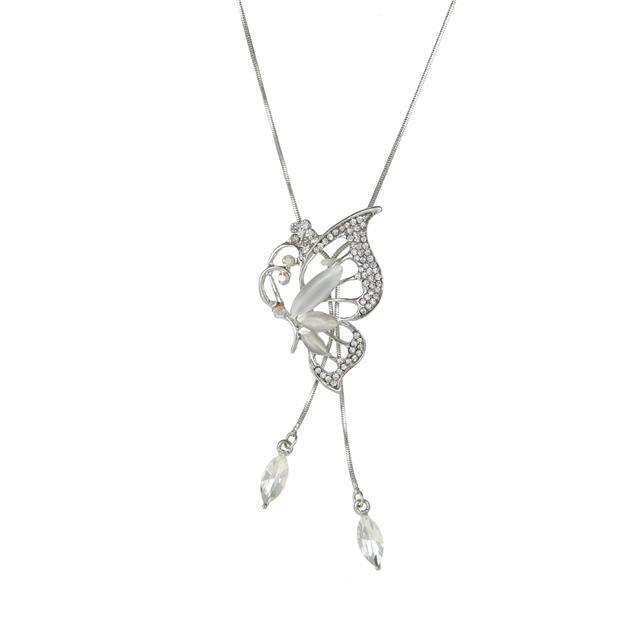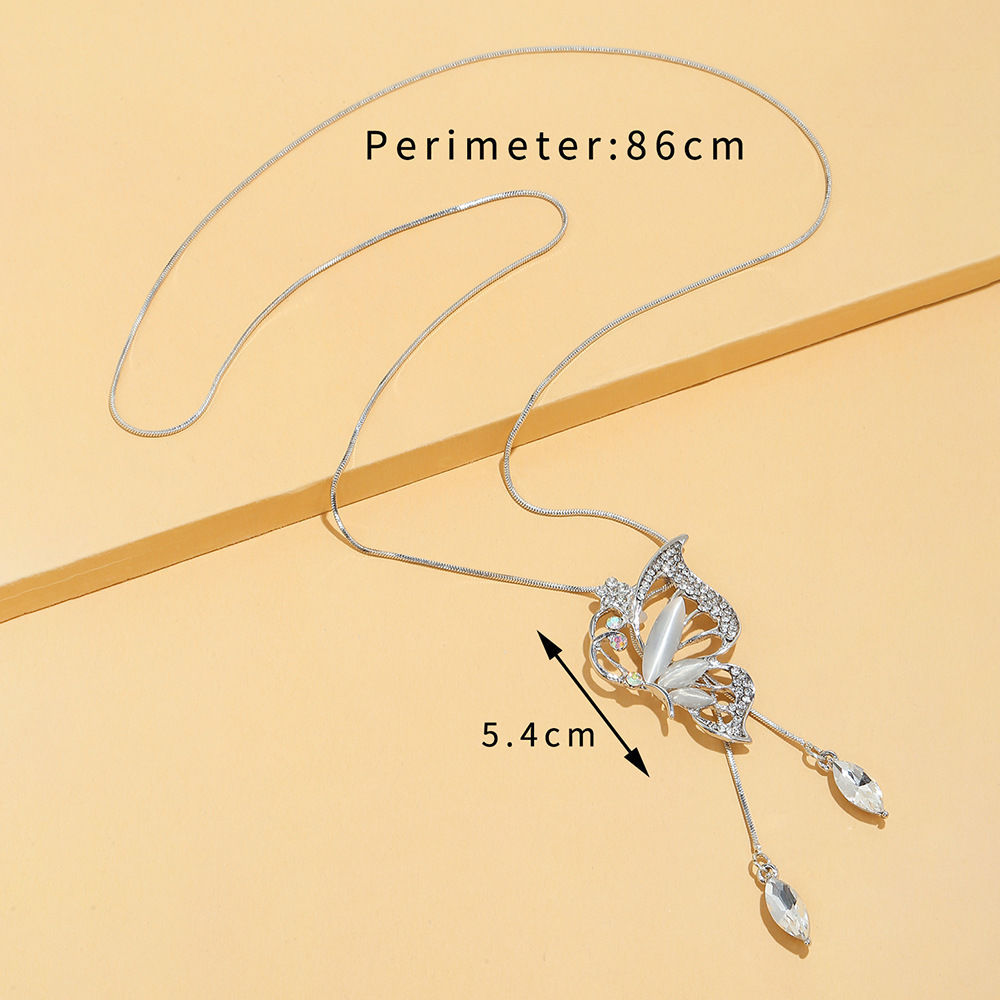 Yh ~ estilo coreano nueva moda simple cristal diamante largo medio mariposa collar suéter cadena colgante todo-juego ropa