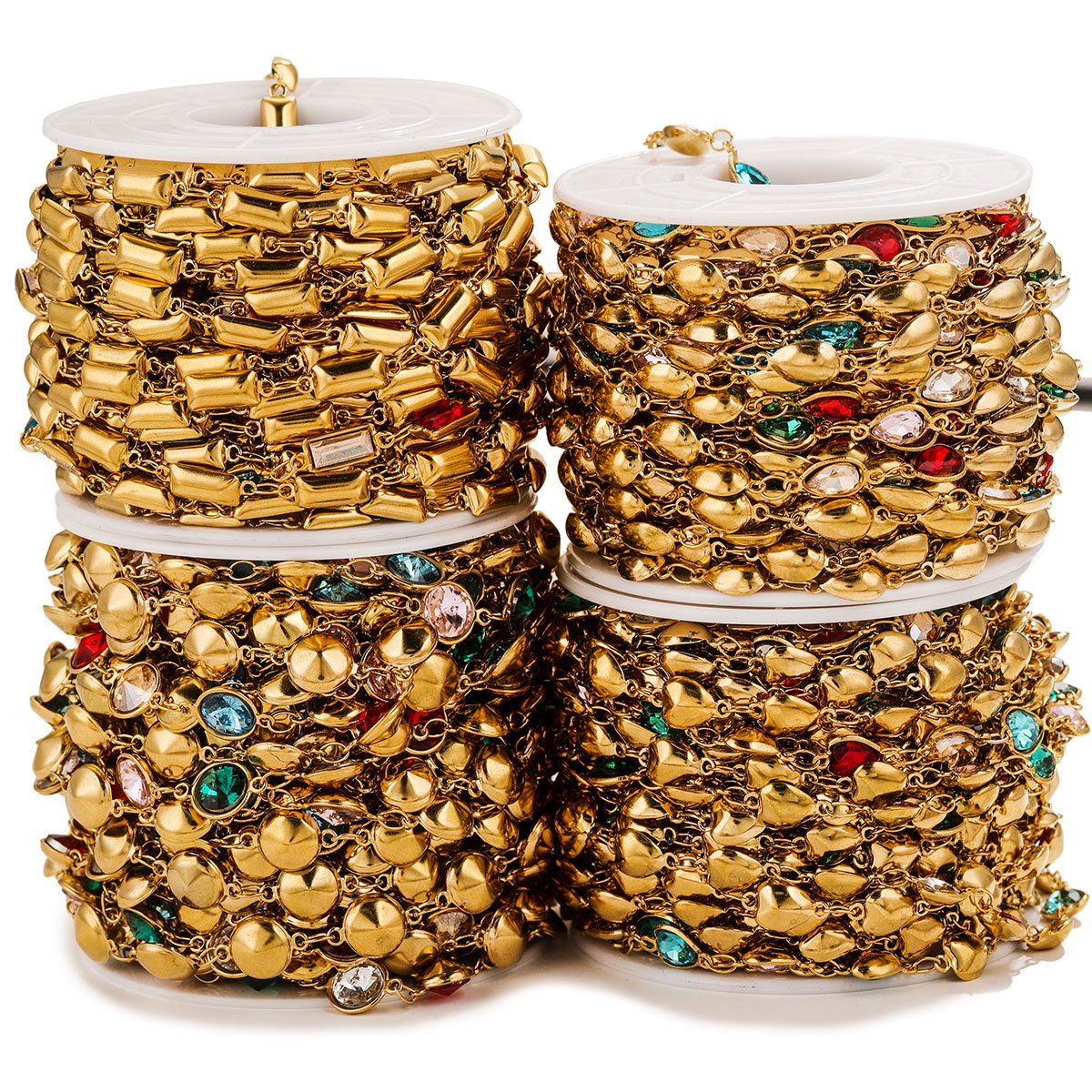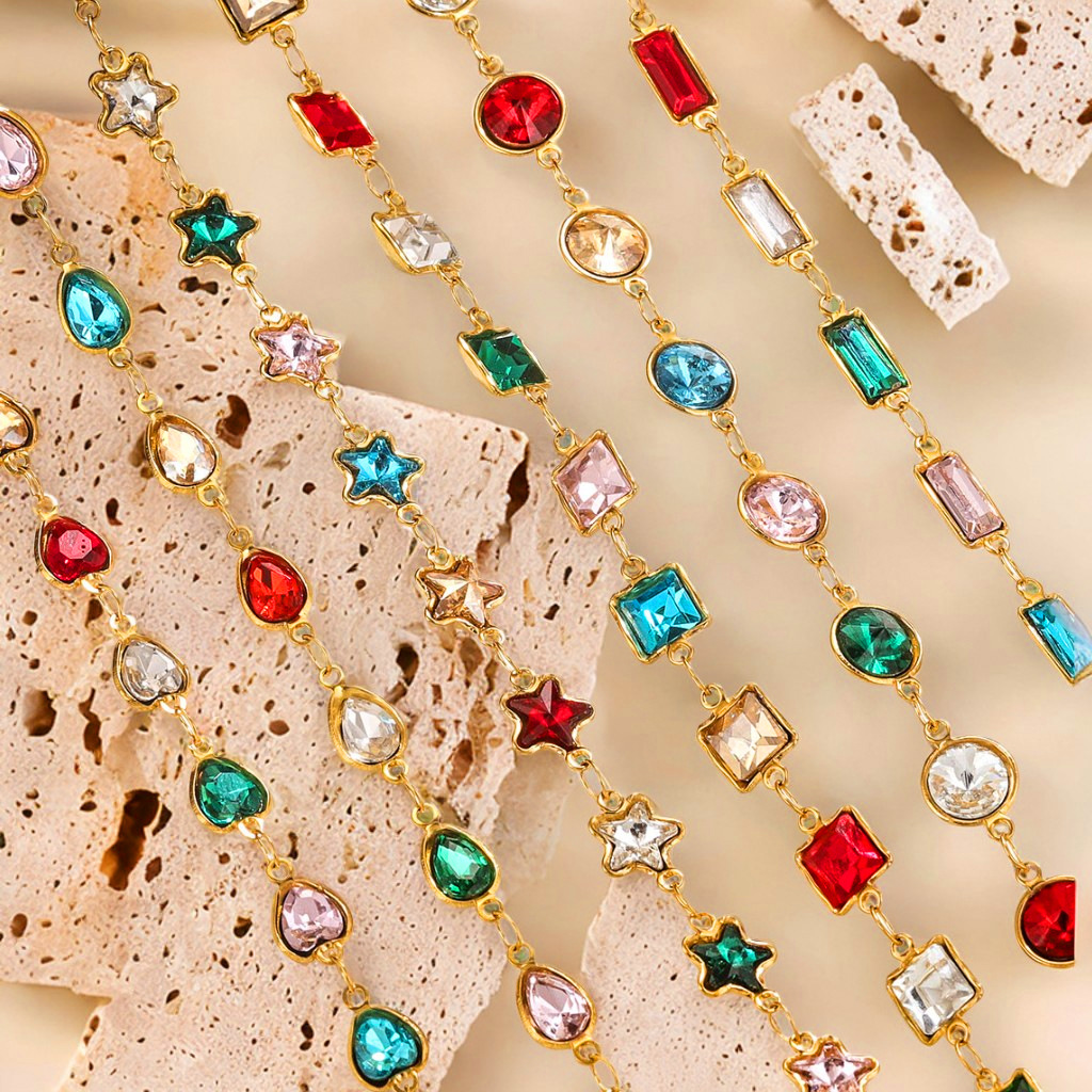 Acero inoxidable cristal cadena impermeable cadena de cristal de color joyería DIY accesorios pulsera collar chapado en oro craneal 18K