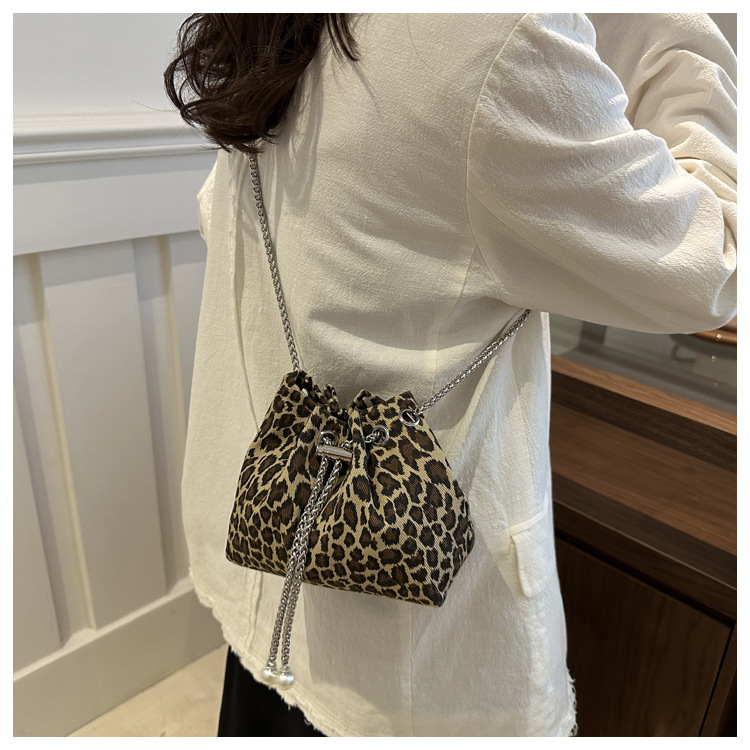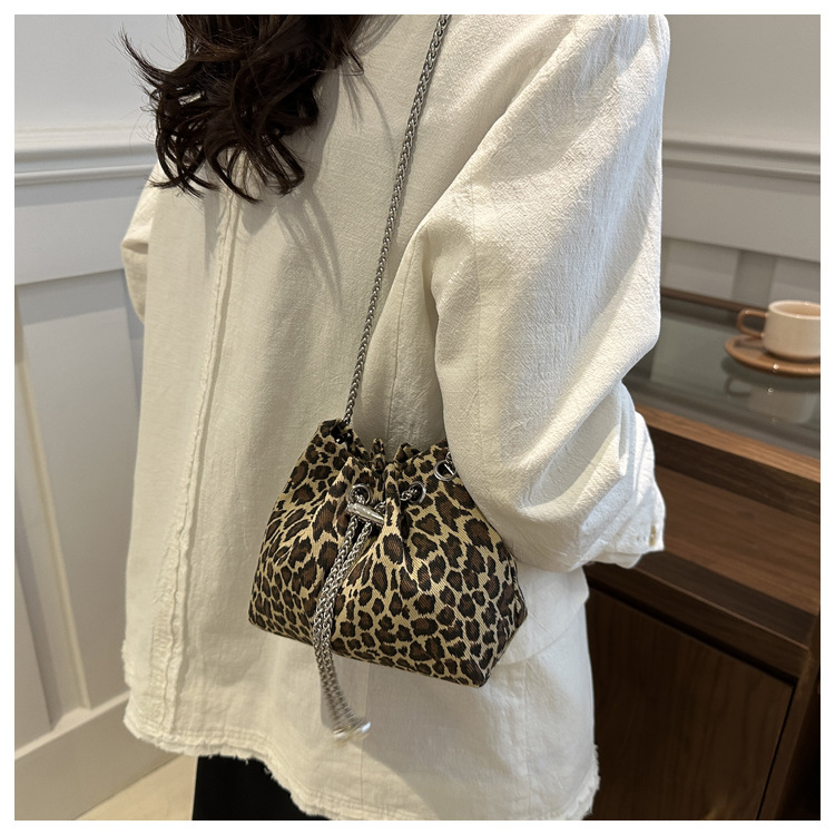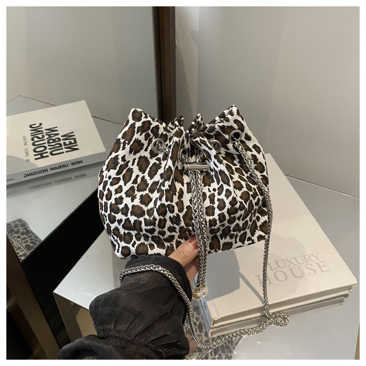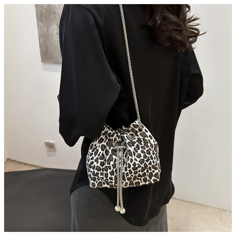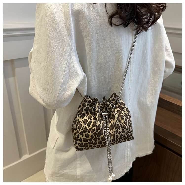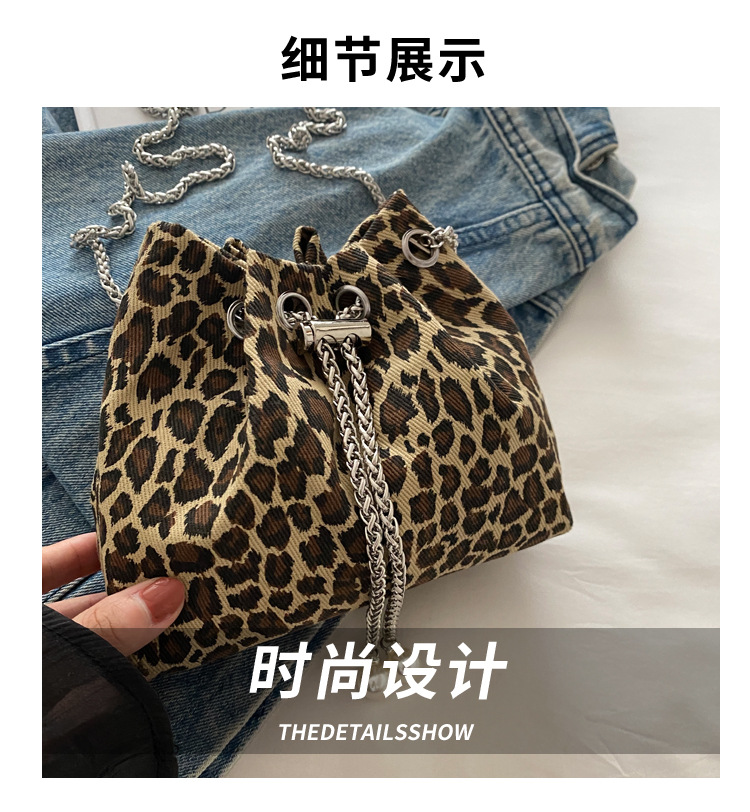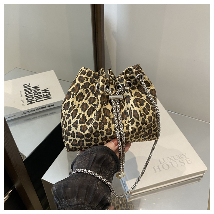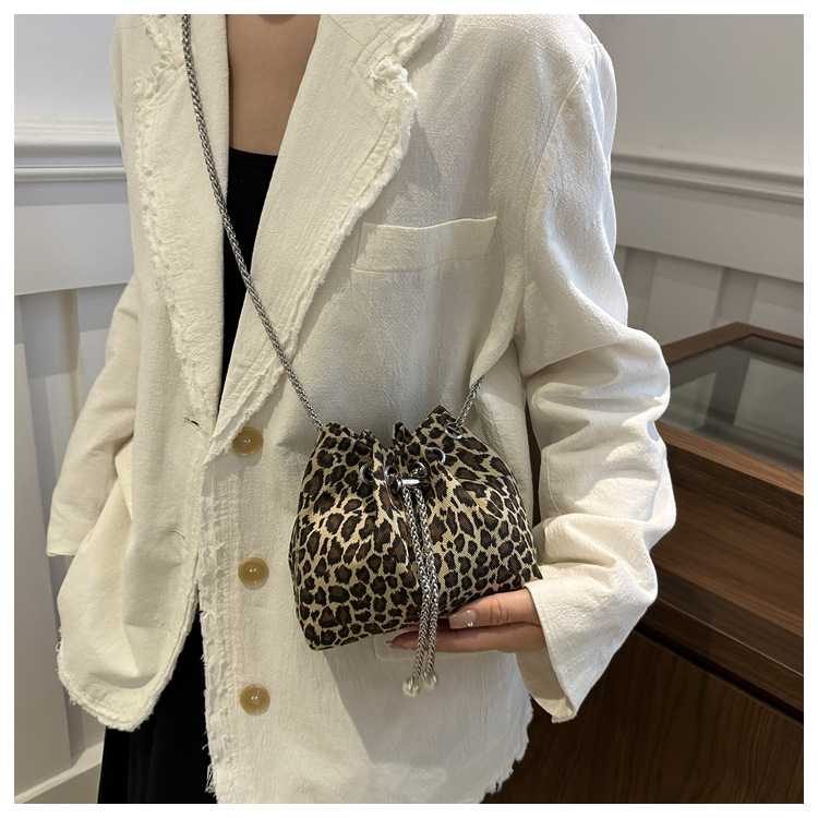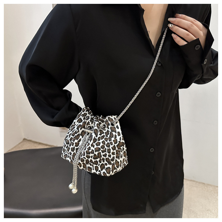 Bolso de leopardo rojo en línea para mujeres 2024 nuevo popular nicho de diseño de cadena bolso de cinturón mini bolso de cubo de cuerda