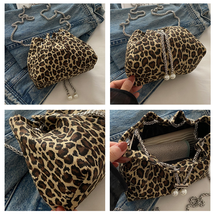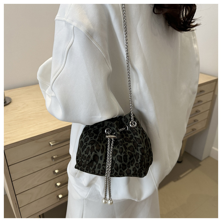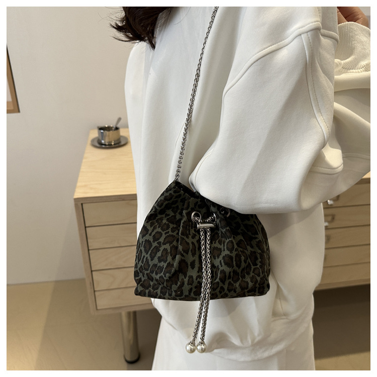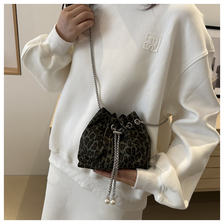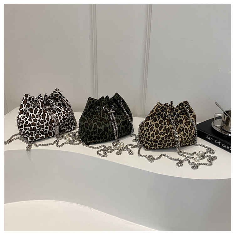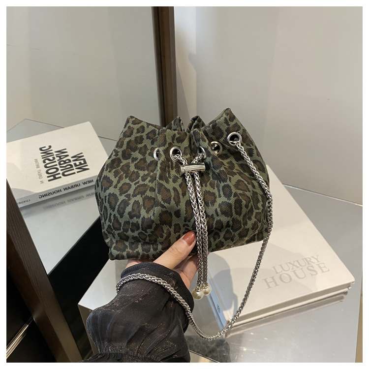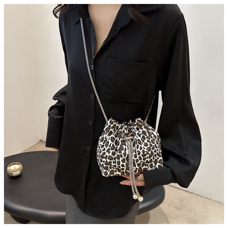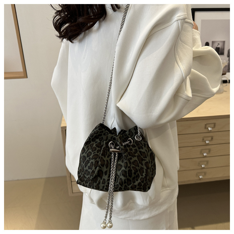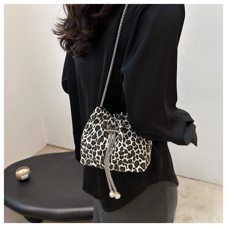 Bolso de leopardo rojo en línea para mujeres 2024 nuevo popular nicho de diseño de cadena bolso de cinturón mini bolso de cubo de cuerda