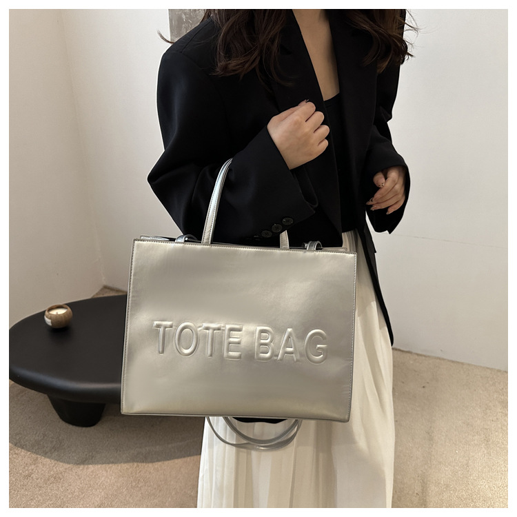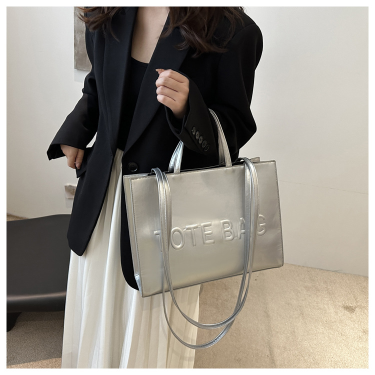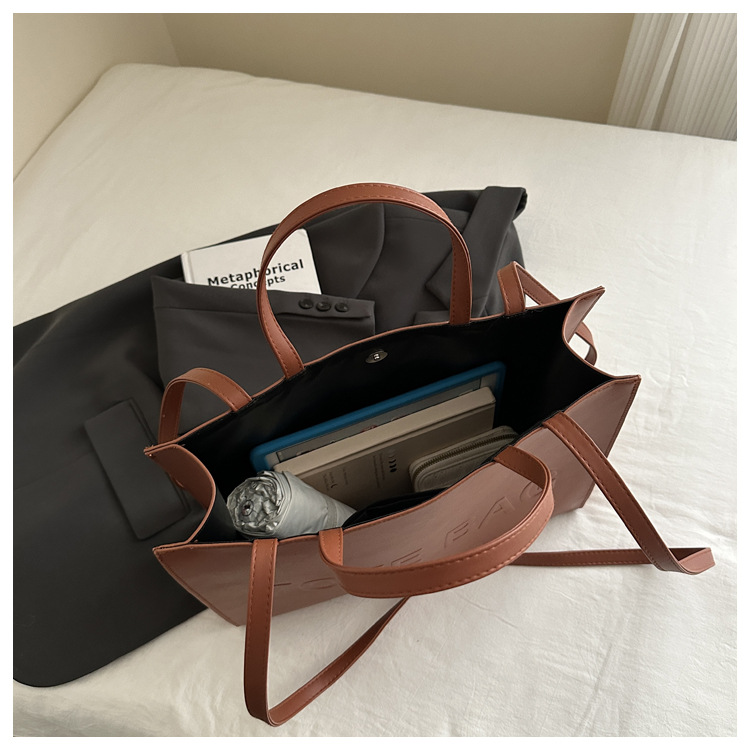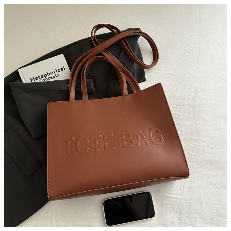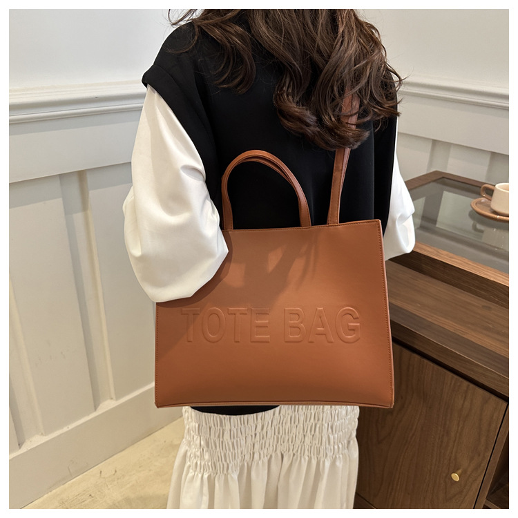 Bolsa de gran capacidad con textura de pu, nuevo bolso de moda de comercio exterior, bolso de mano, bolso de hombro retro, bolso grande de cercanías