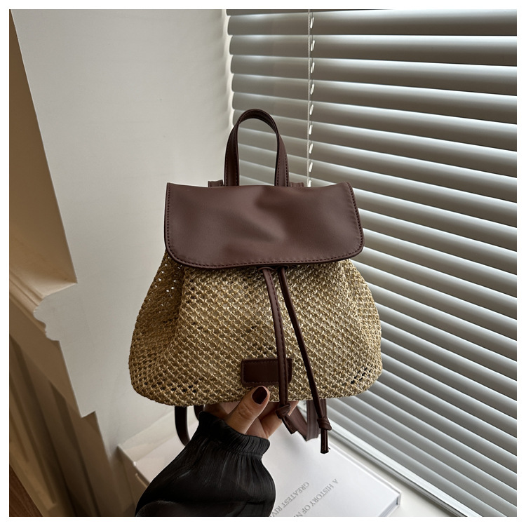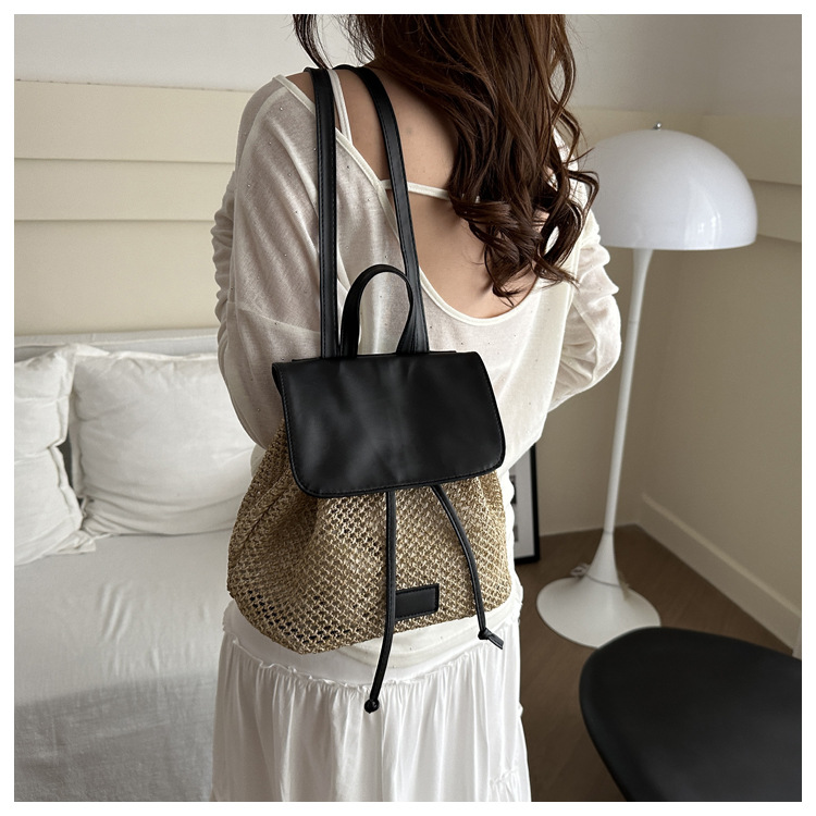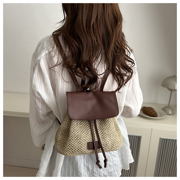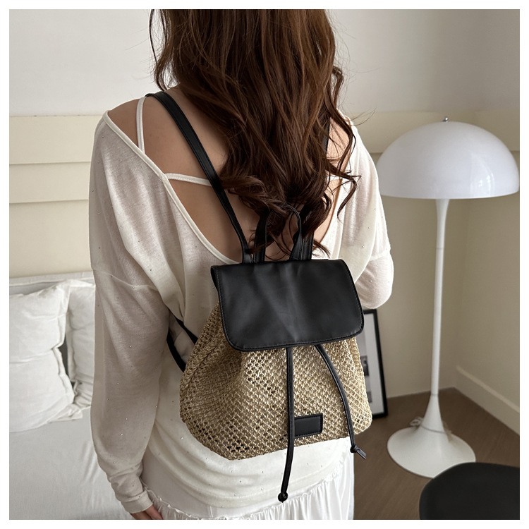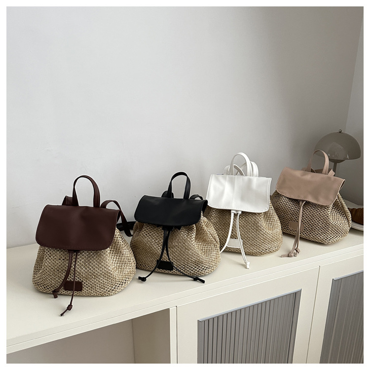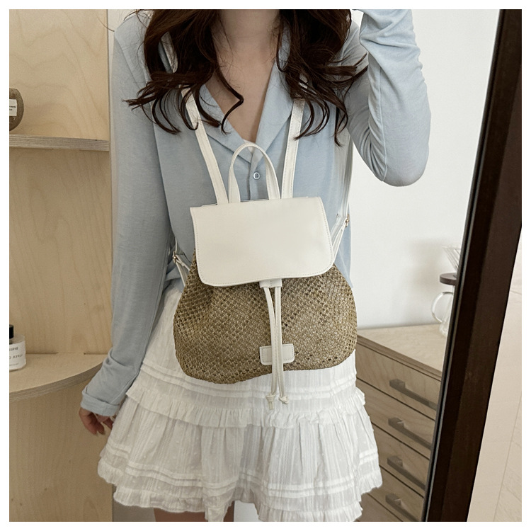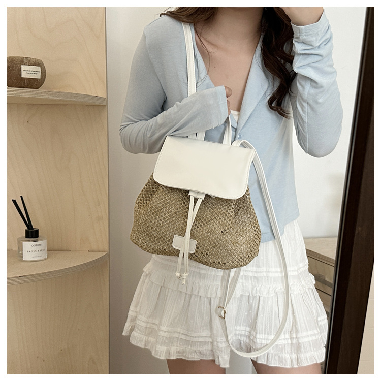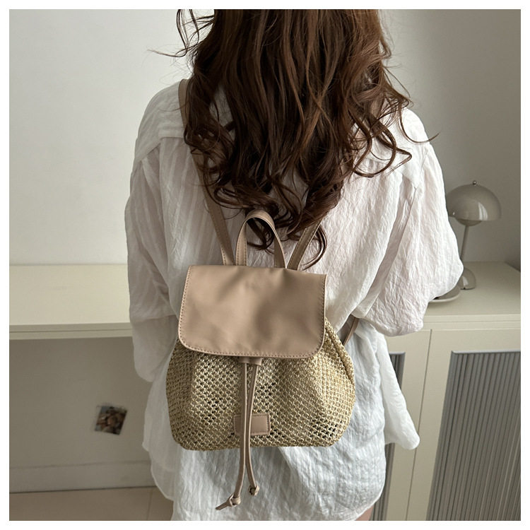 Mochila de viaje ligera para mujeres 2024 nueva moda de verano mochila de paja tejida casual mochila de mano
