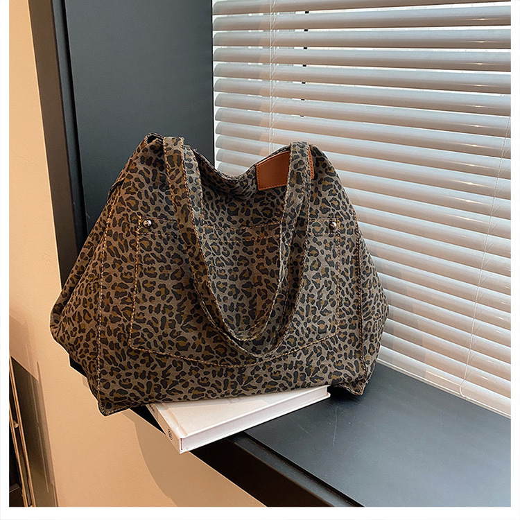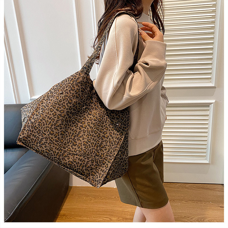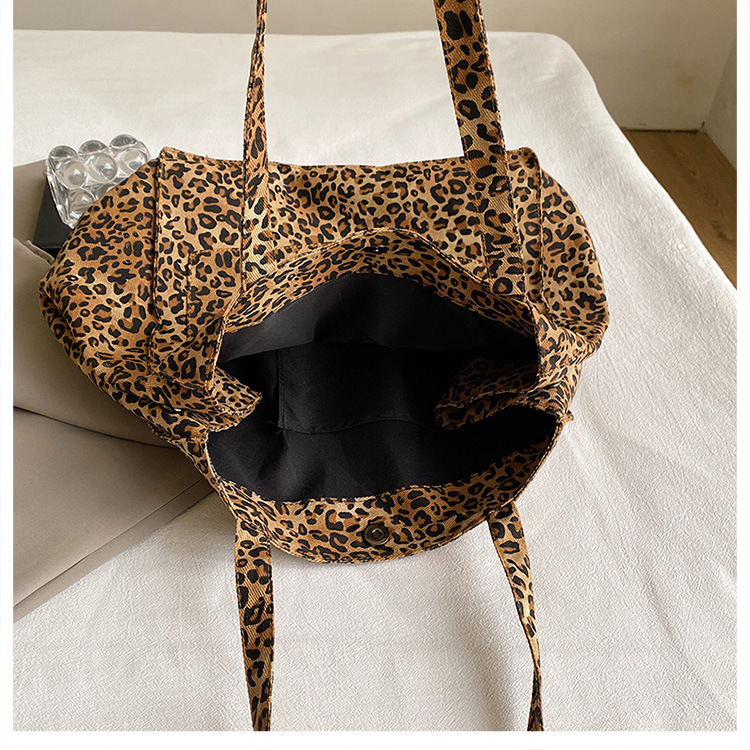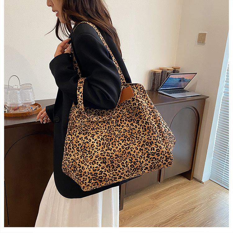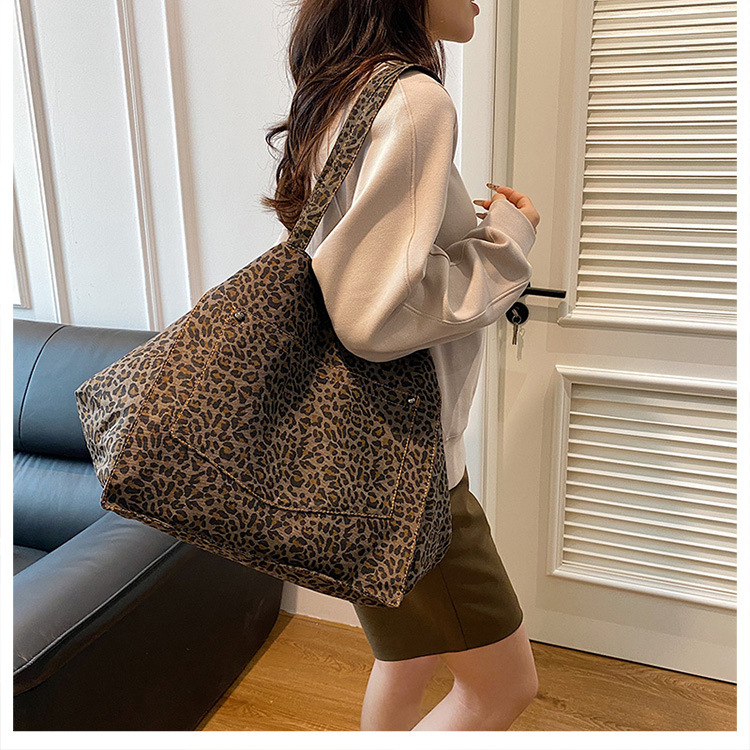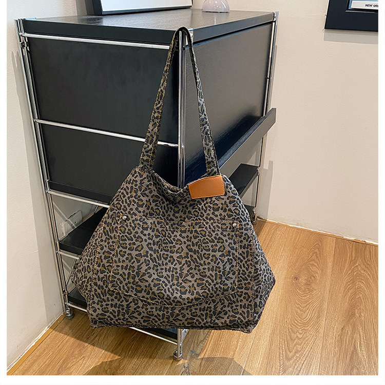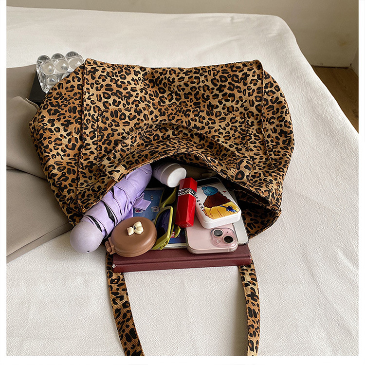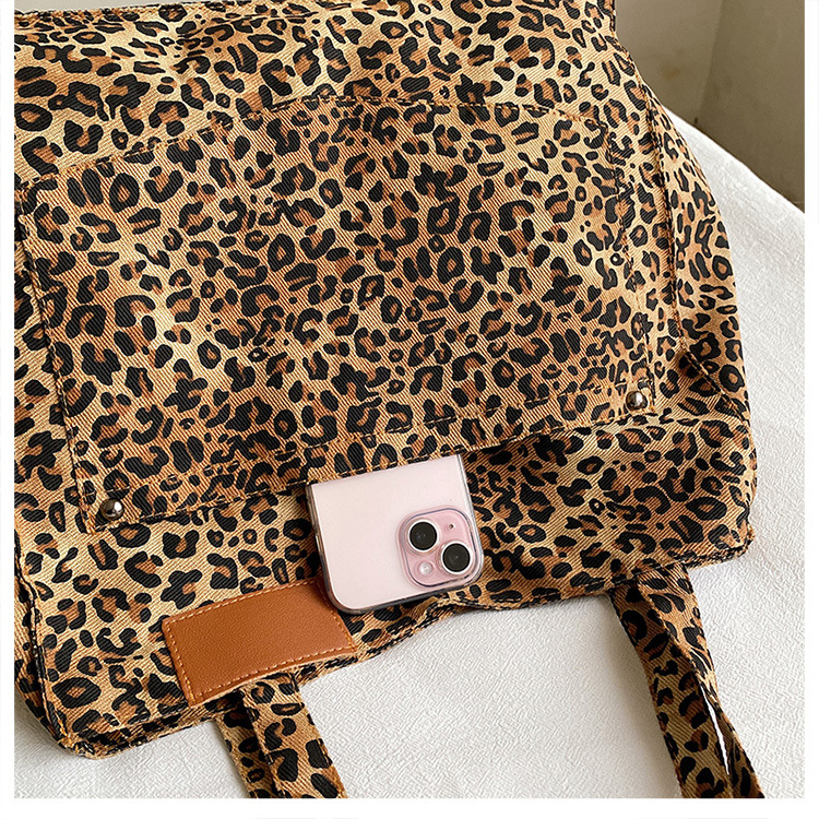 Bolso de mano de lona con estampado de leopardo de nicho Bolso de mujer Bolso de mano de moda de gran capacidad casual Bolso bandolera de estilo occidental coreano