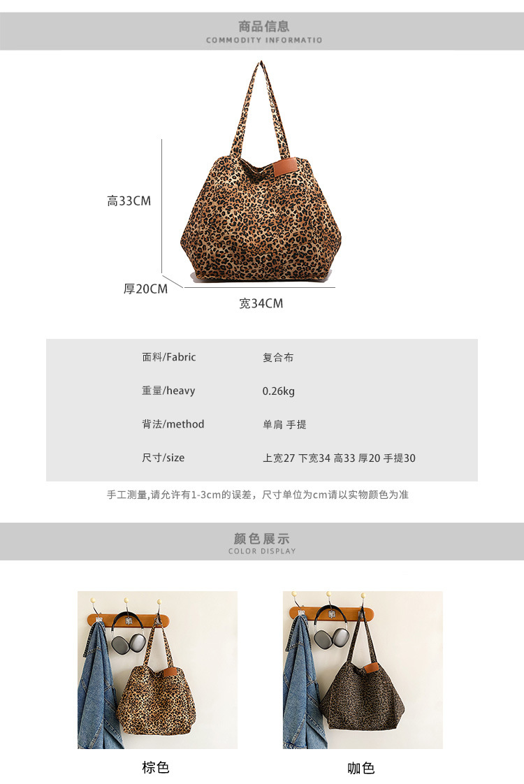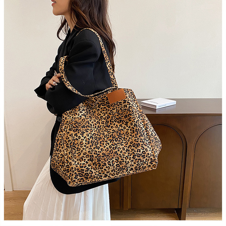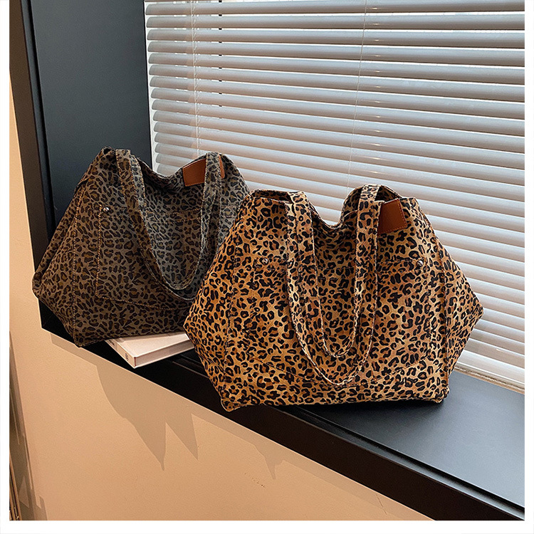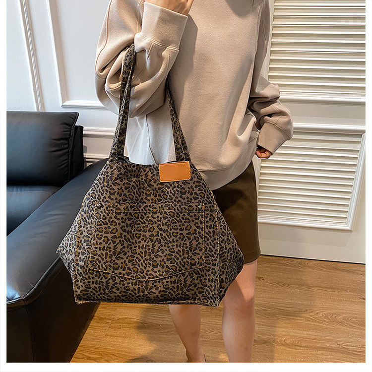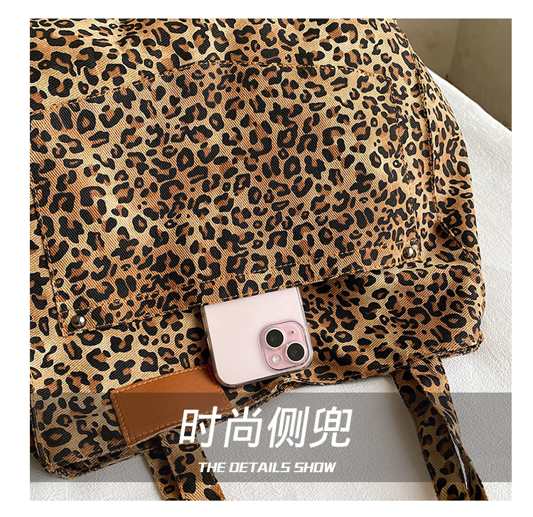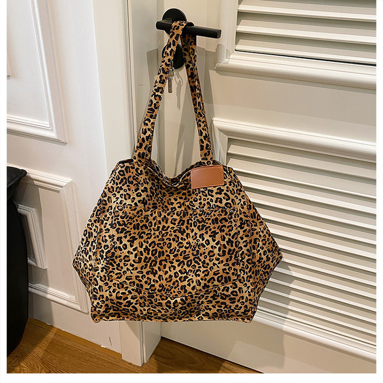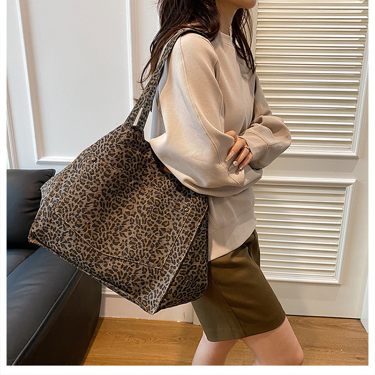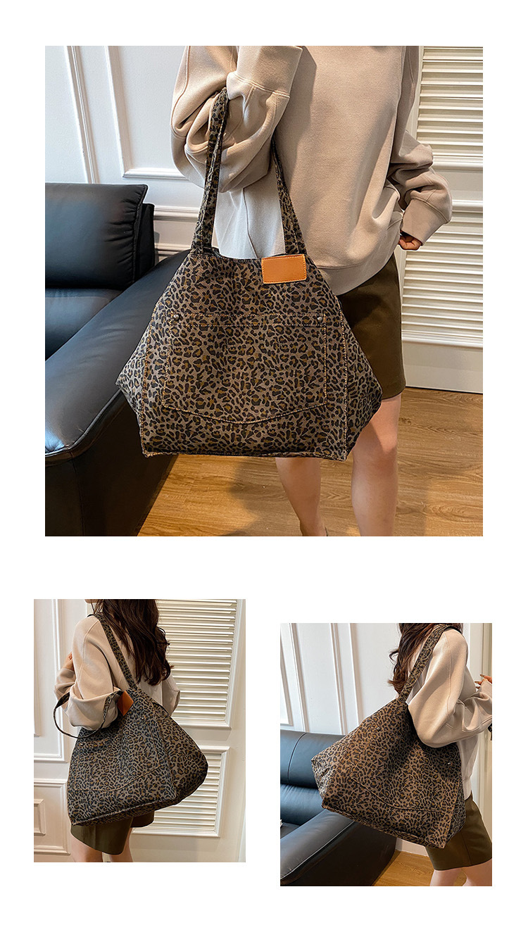 Bolso de mano de lona con estampado de leopardo de nicho Bolso de mujer Bolso de mano de moda de gran capacidad casual Bolso bandolera de estilo occidental coreano