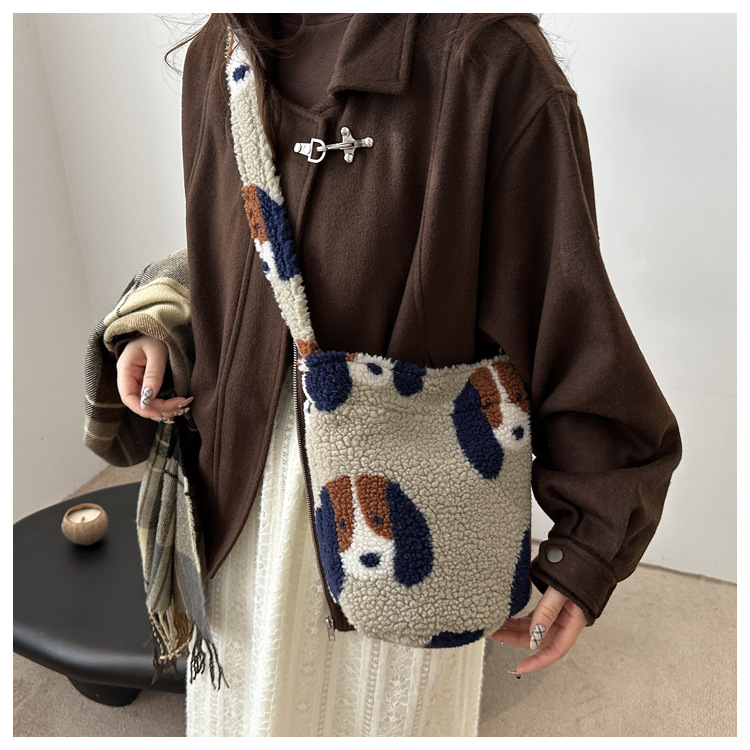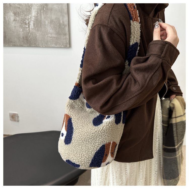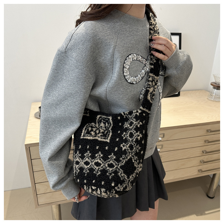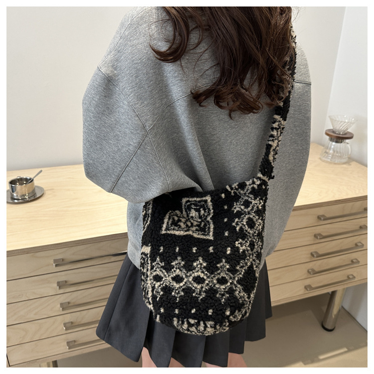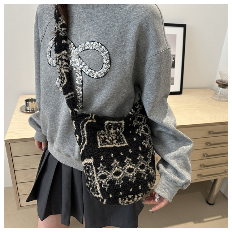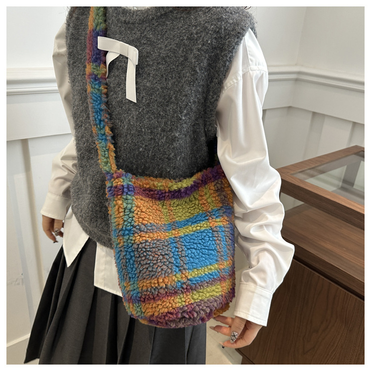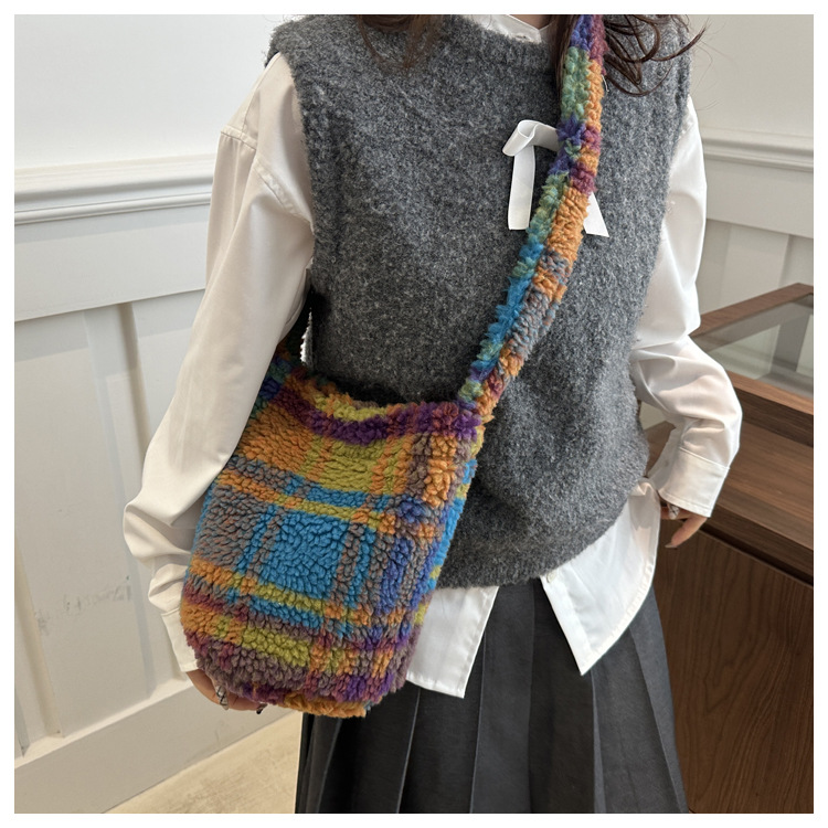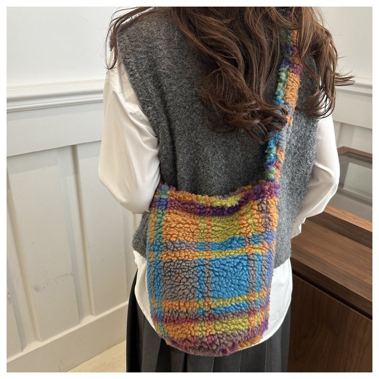La versión coreana de otoño y invierno del nuevo material de lana de gran capacidad de la bolsa de mujer de viaje de viento perezoso de un solo hombro inclinado de la moda
