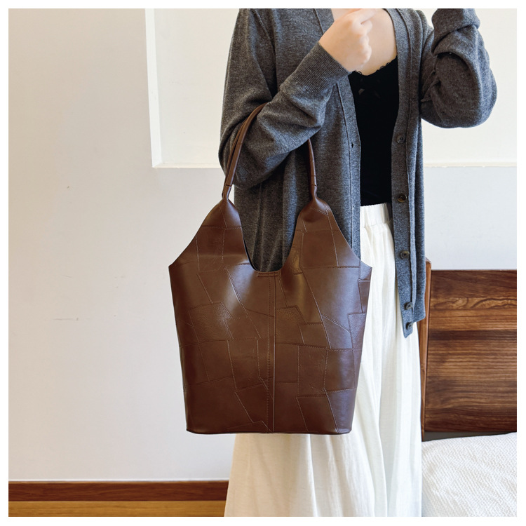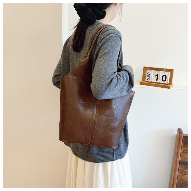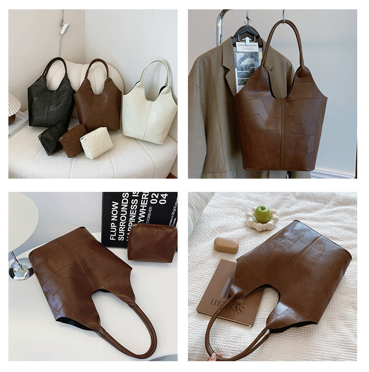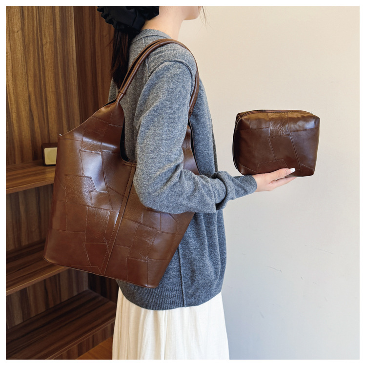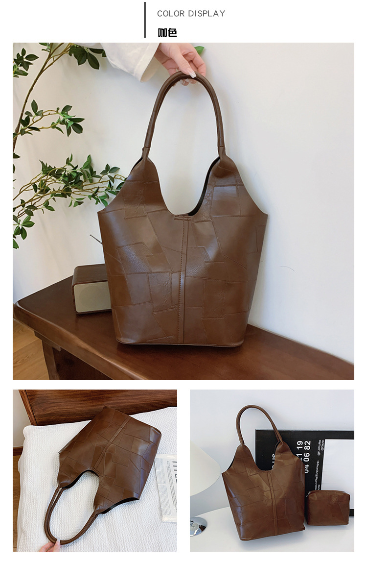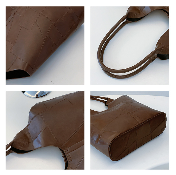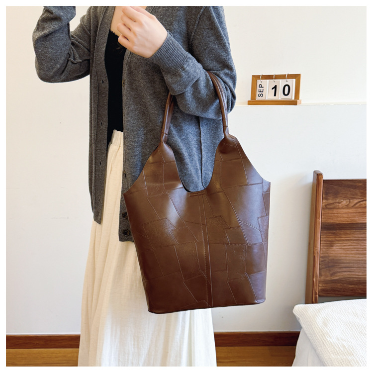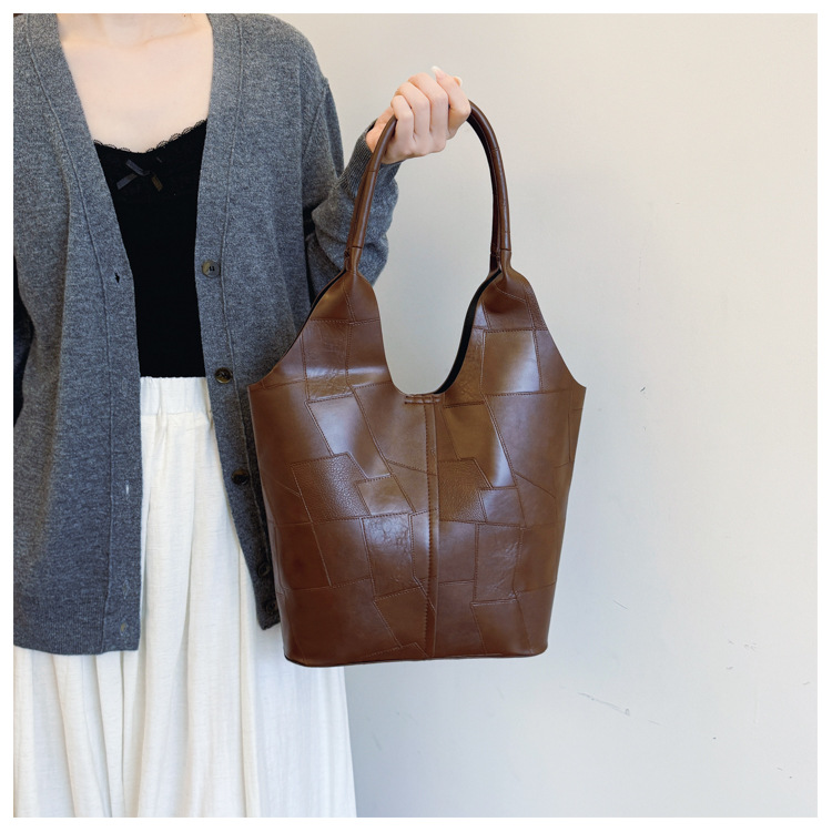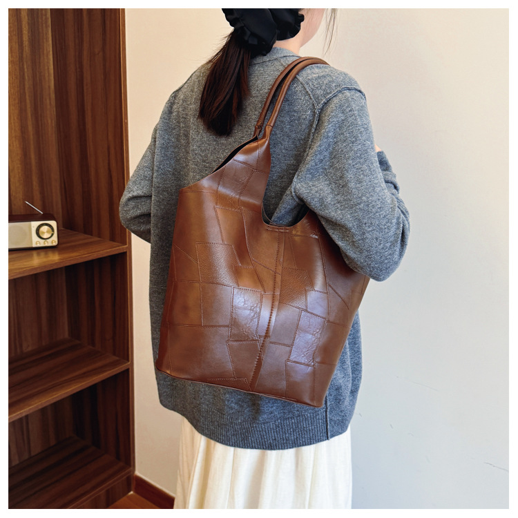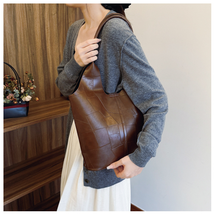 Bolsos para niños de mujer retro personalidad textura bloqueada de gran capacidad bolso de hombro de brazo de mujer nuevo estilo de viaje de hombro