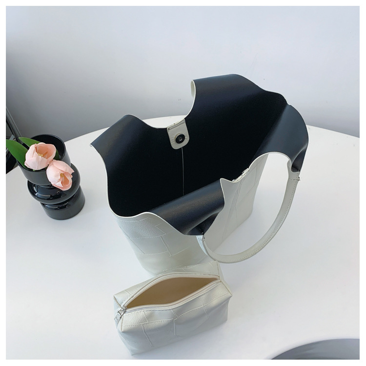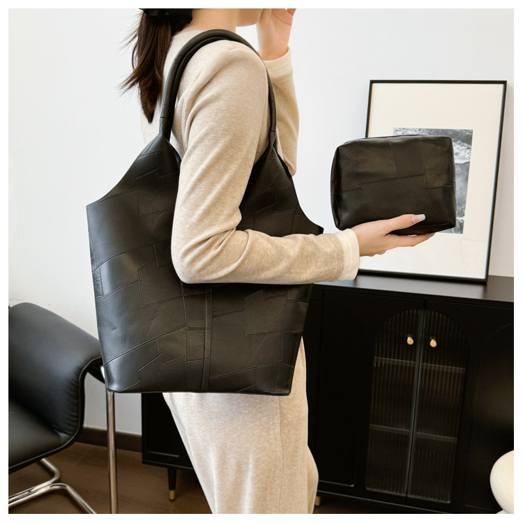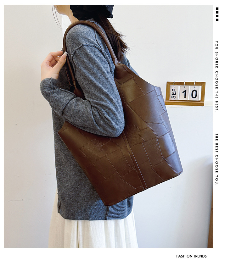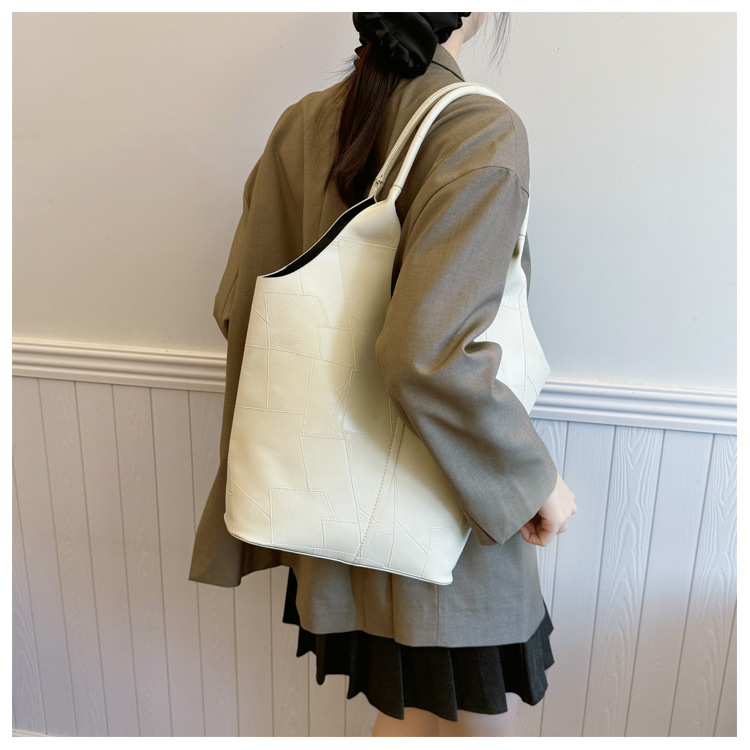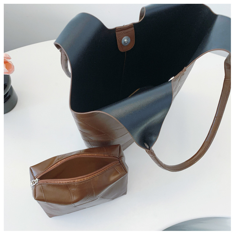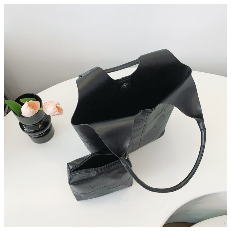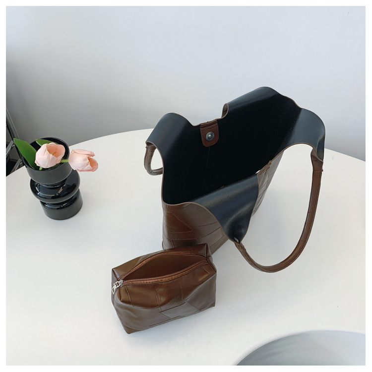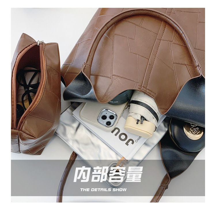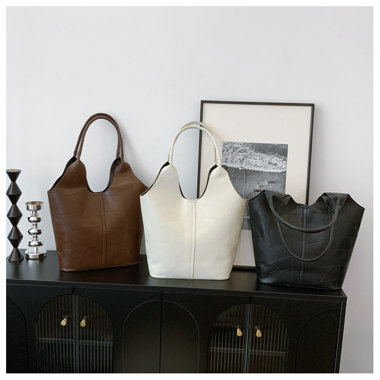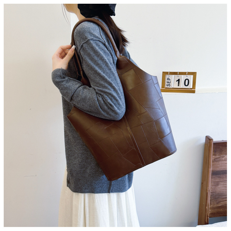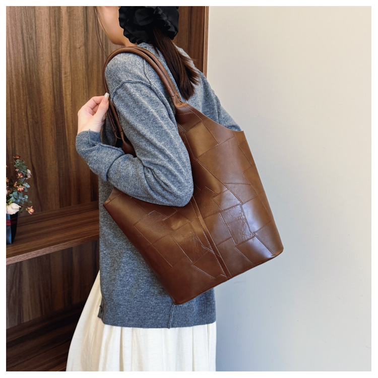 Bolsos para niños de mujer retro personalidad textura bloqueada de gran capacidad bolso de hombro de brazo de mujer nuevo estilo de viaje de hombro