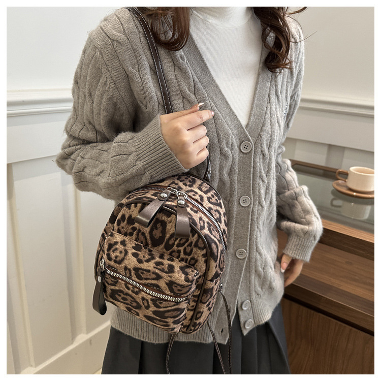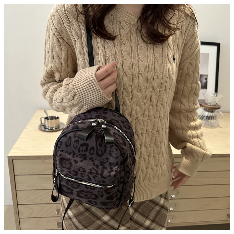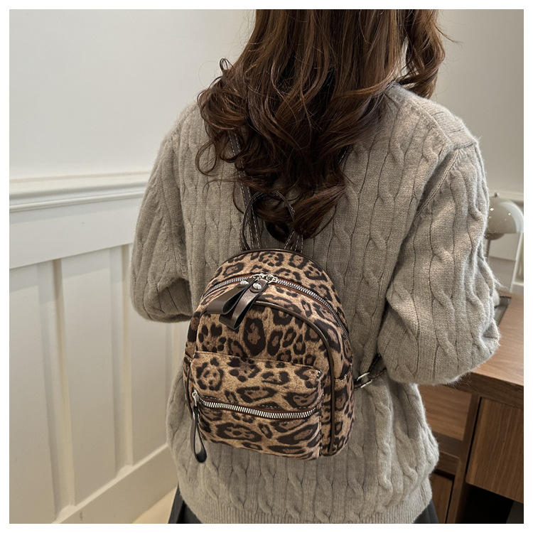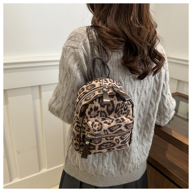 Moda coreana leopardo mochila mujer 2024 otoño invierno nueva bolsa de mano personalizada viaje viaje mochila pequeña
