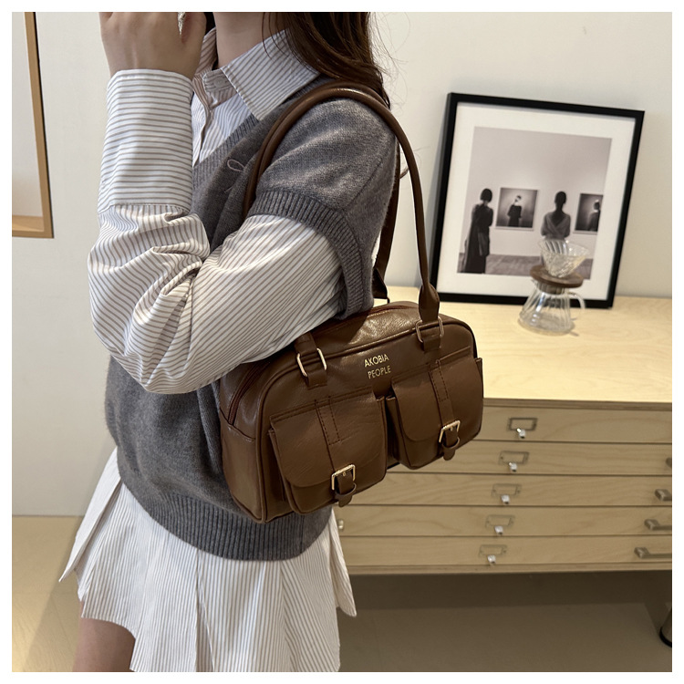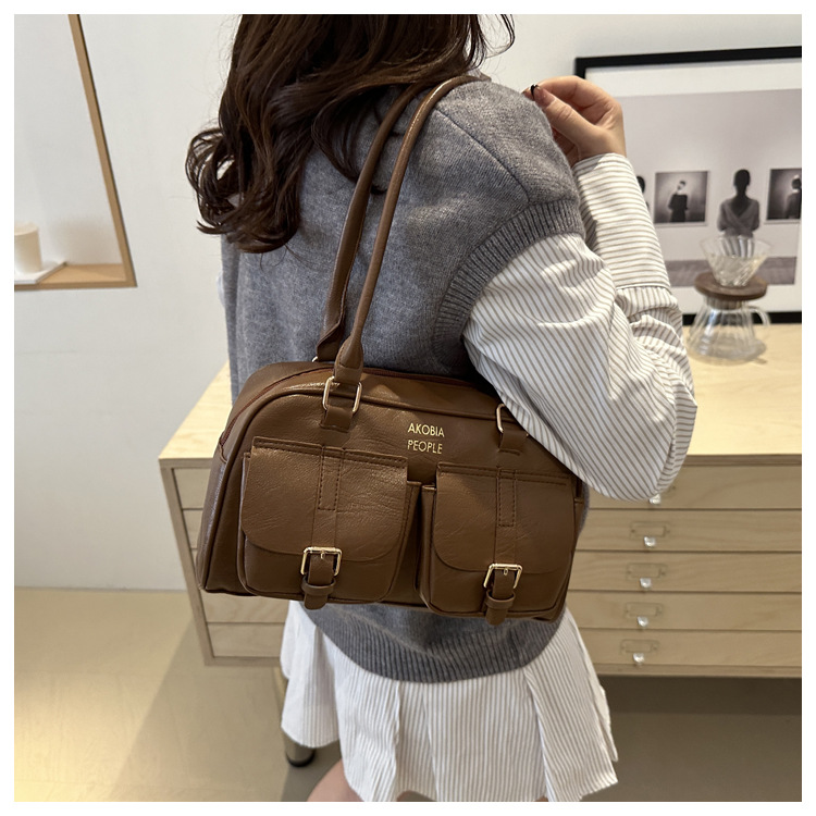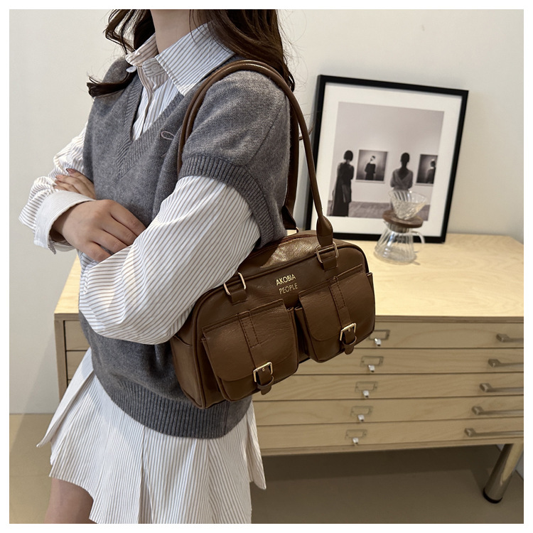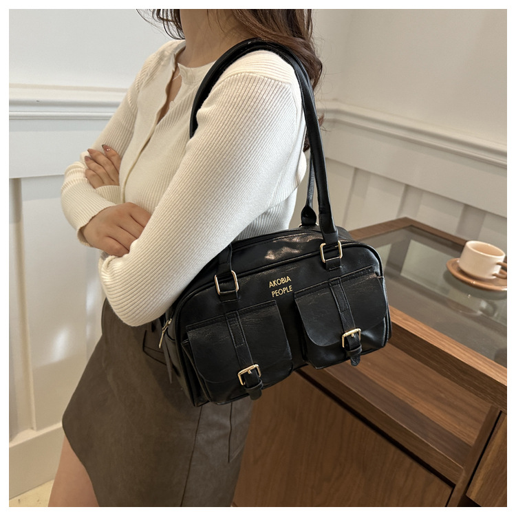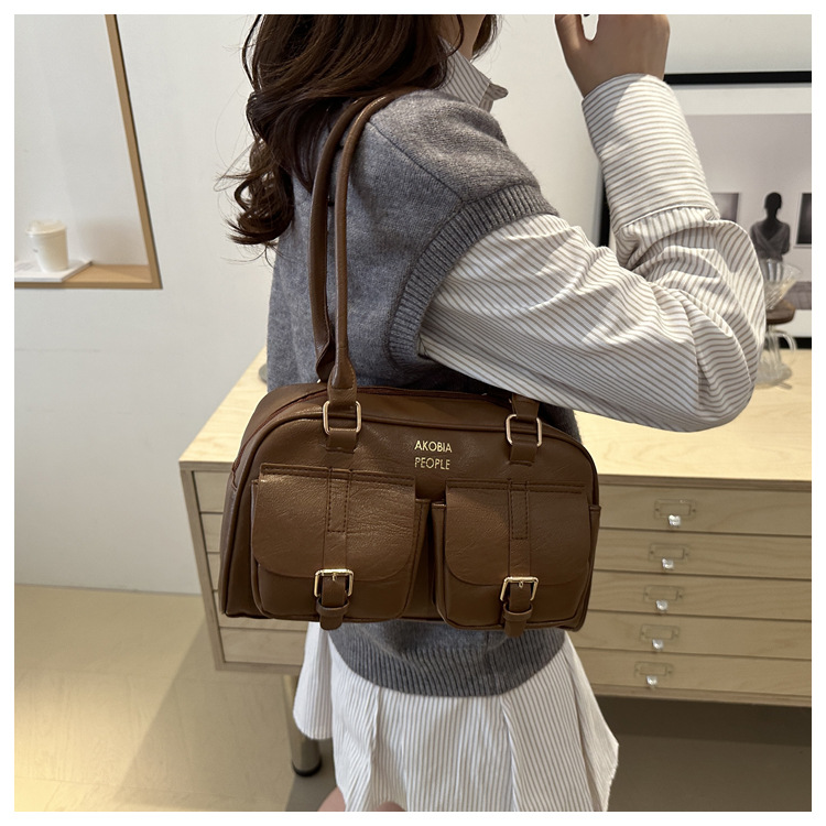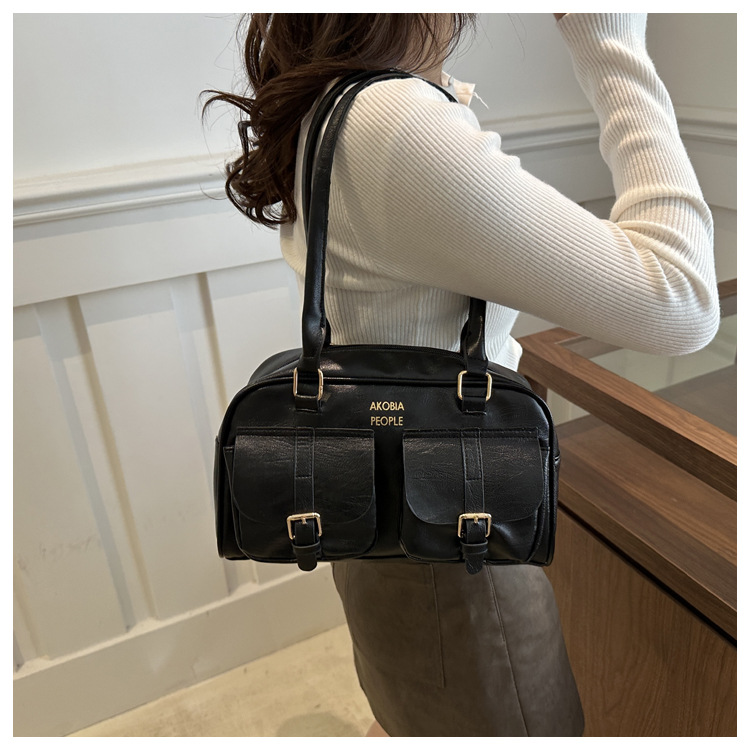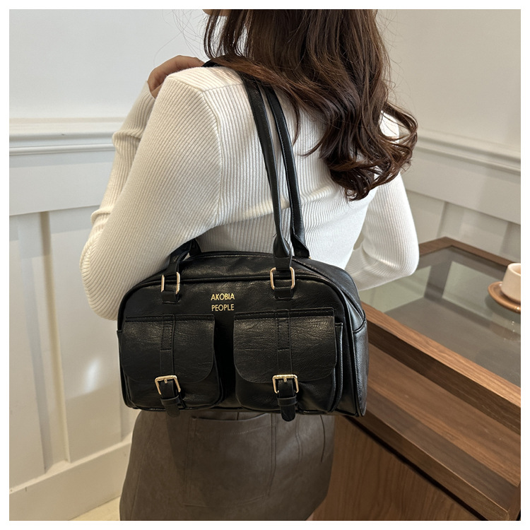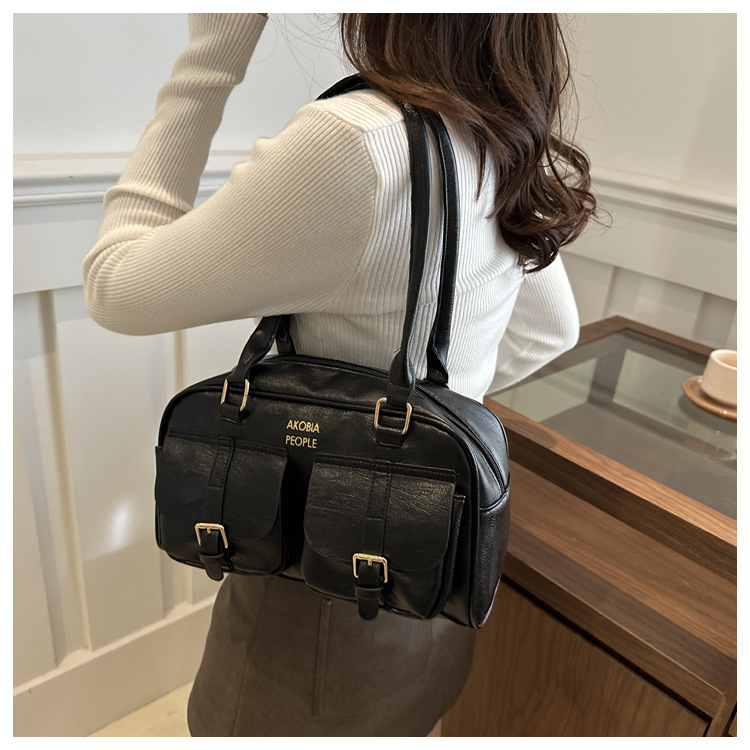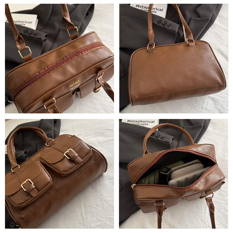 Bolso de bolera portátil de nicho retro para mujer 2024 otoño nuevo bolso de axila coreano de moda bolso de viaje de gran capacidad