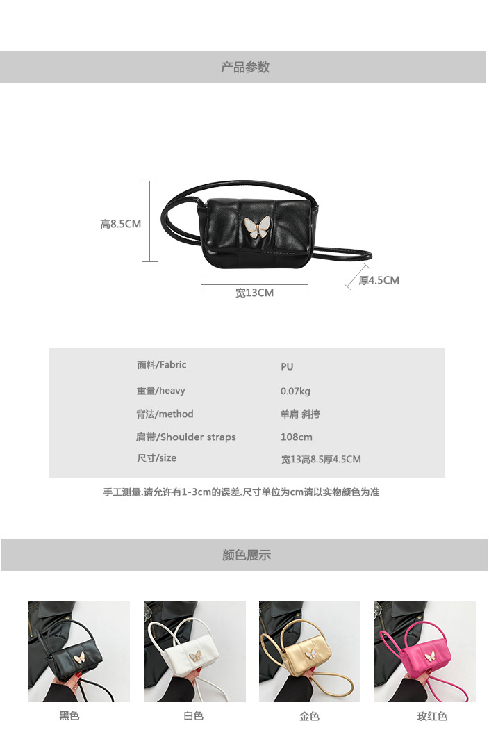 Bolso de axila con decoración de mariposa dulce 2024 textura Bolso femenino popular de este año nuevo bolso diagonal de un solo hombro mini francés