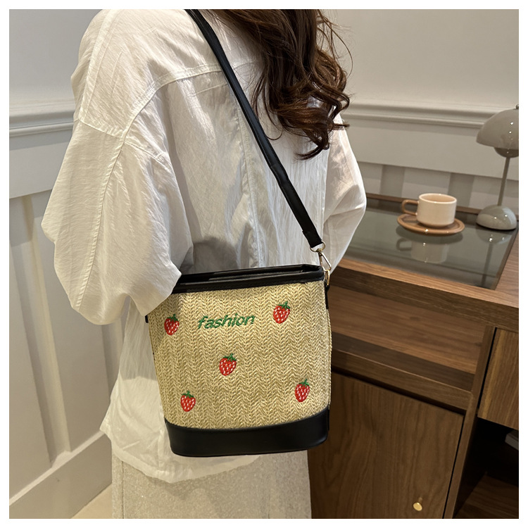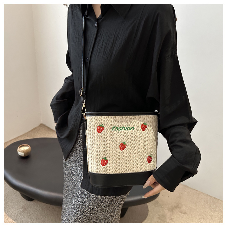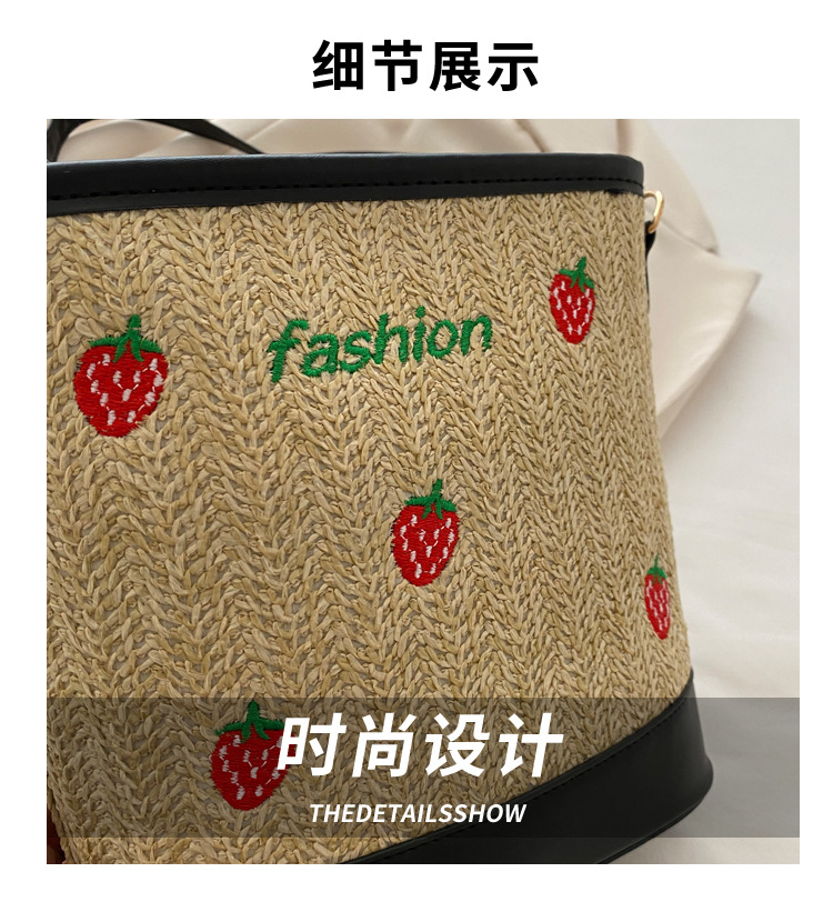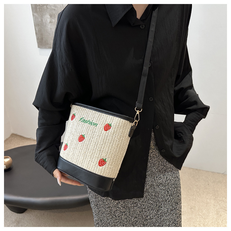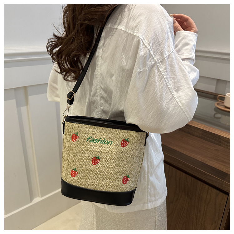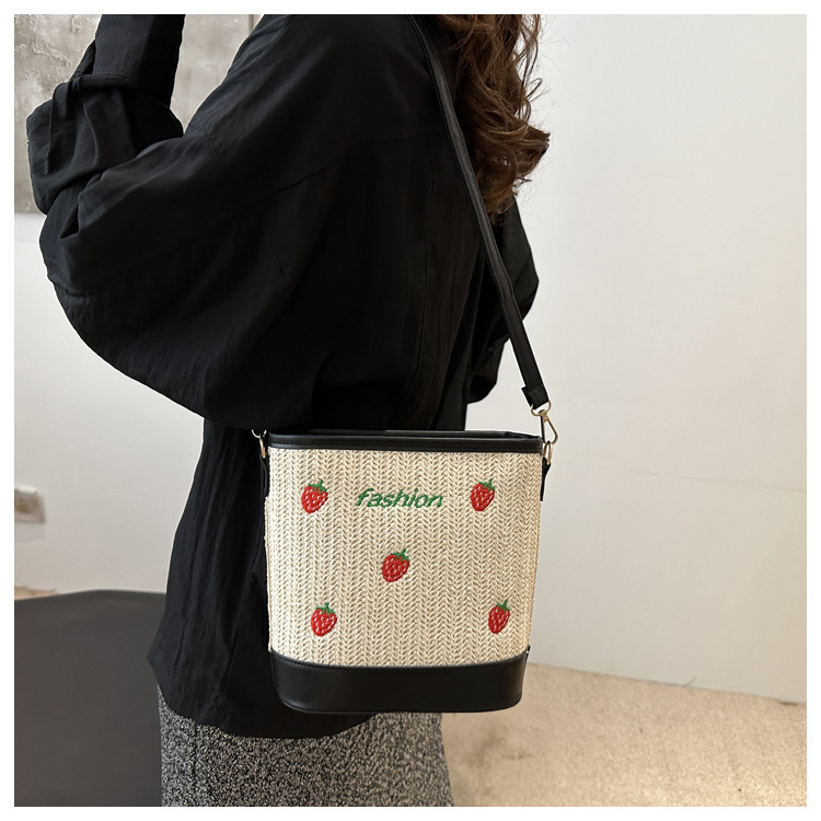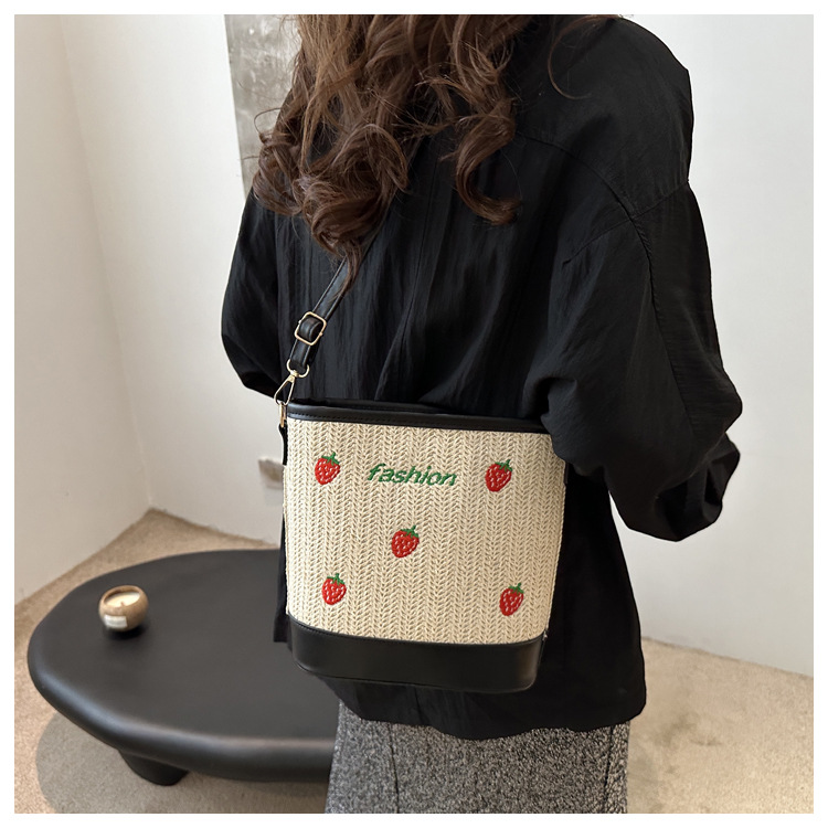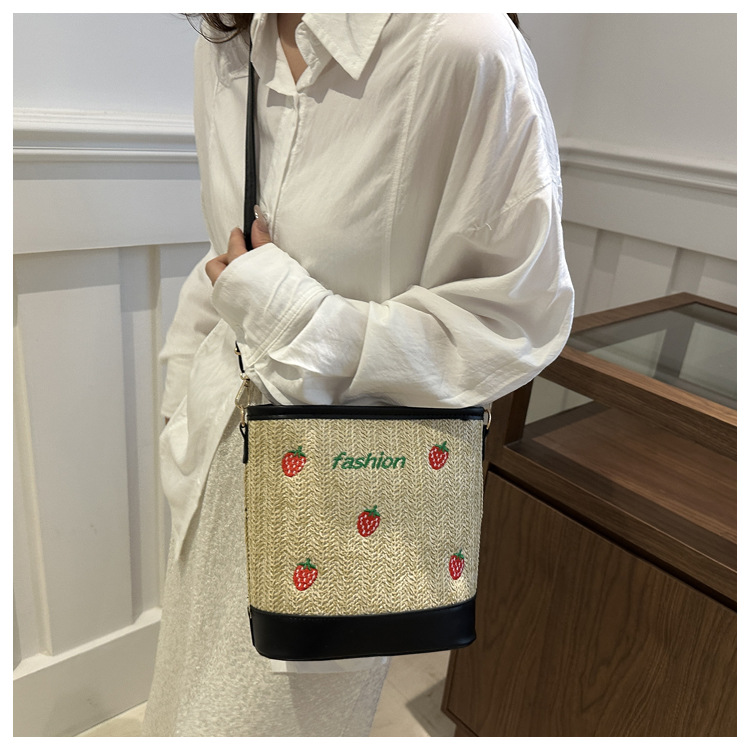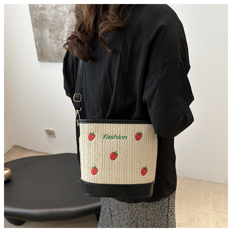 Bagos de balde de tela de fresas de gran capacidad para mujeres 2024 nueva popular alta textura nicho diseño mochila