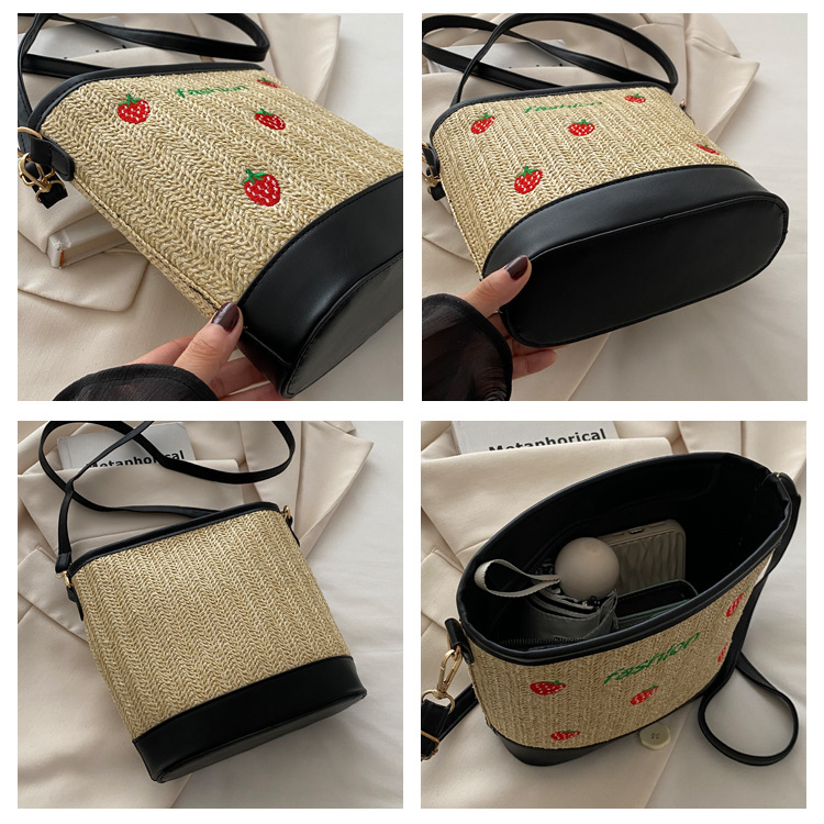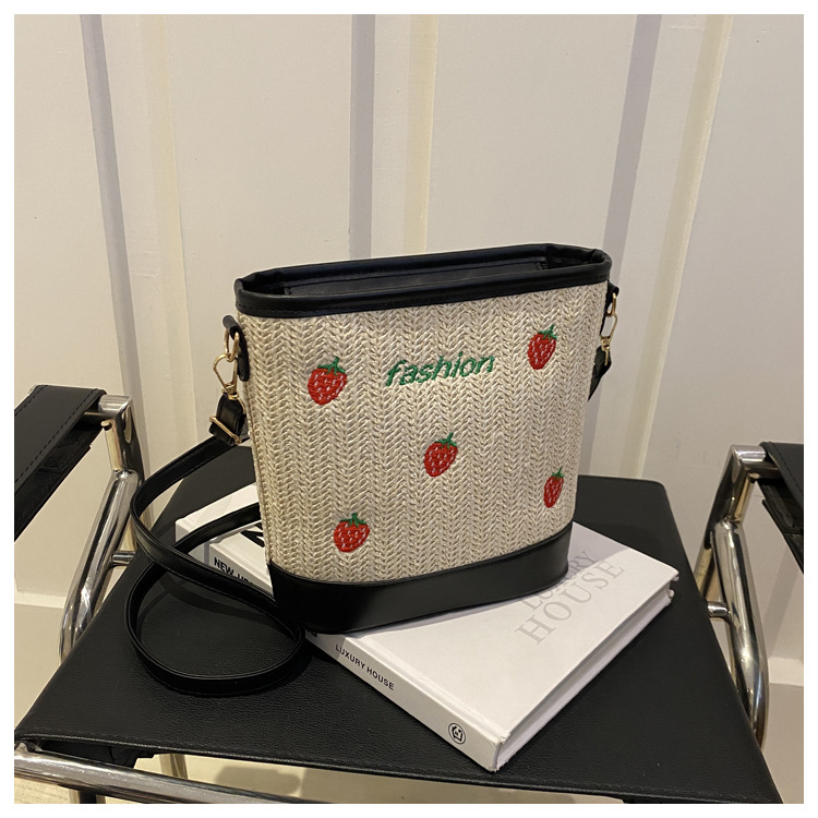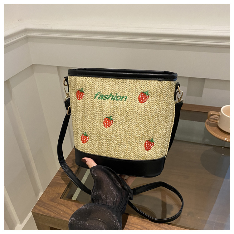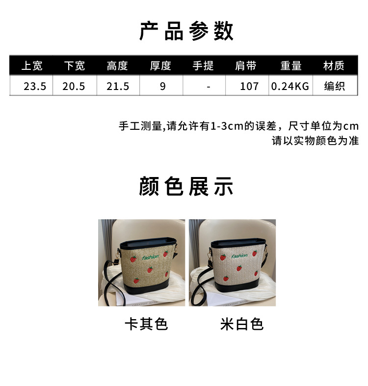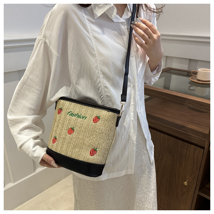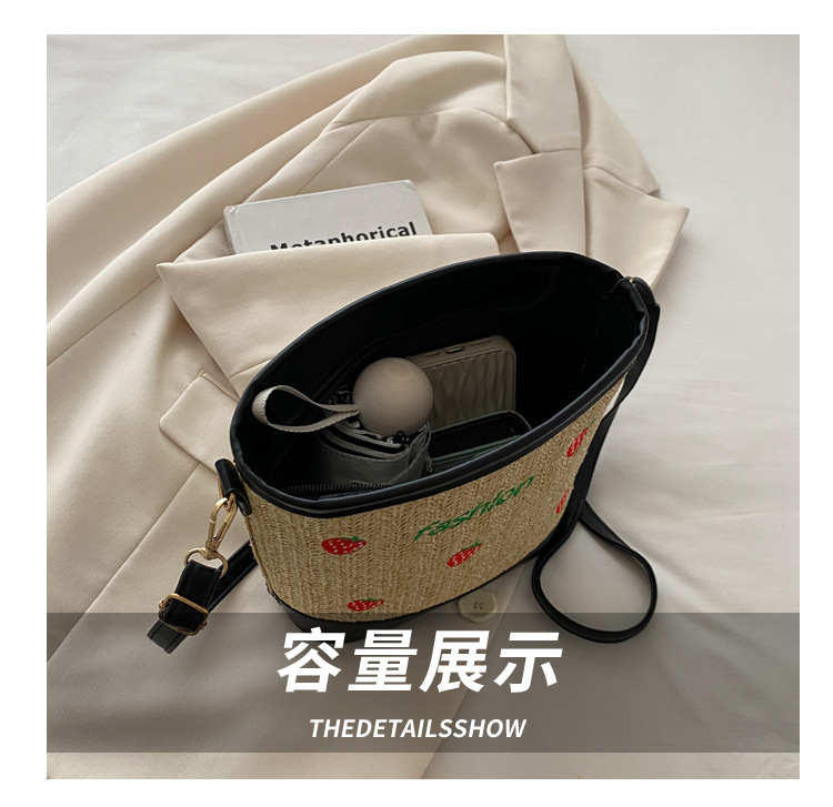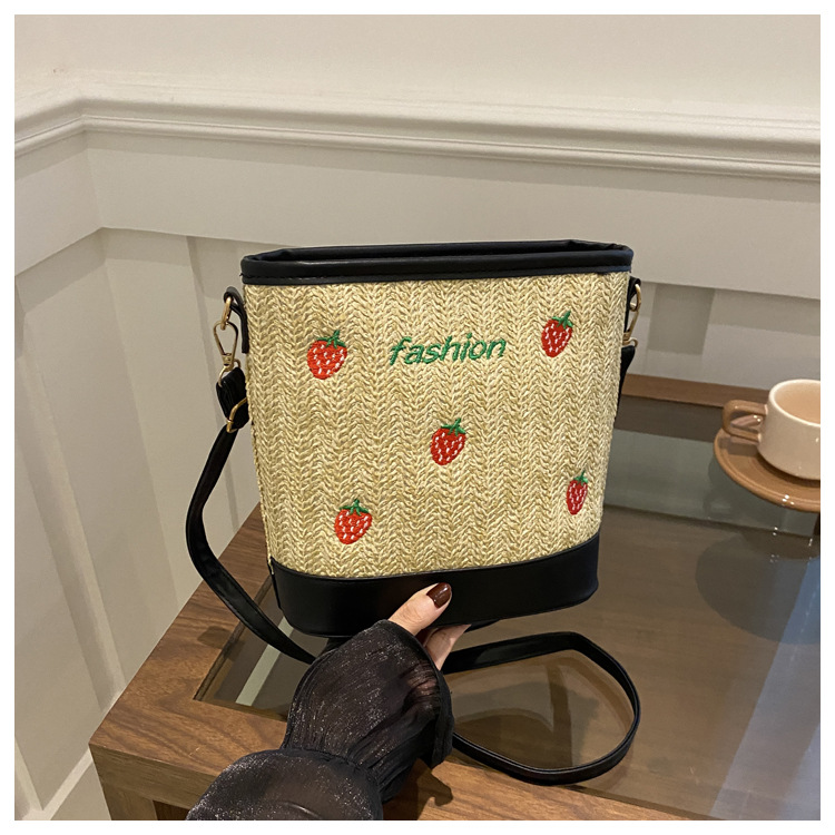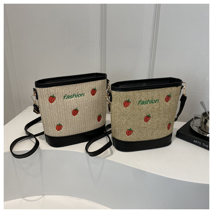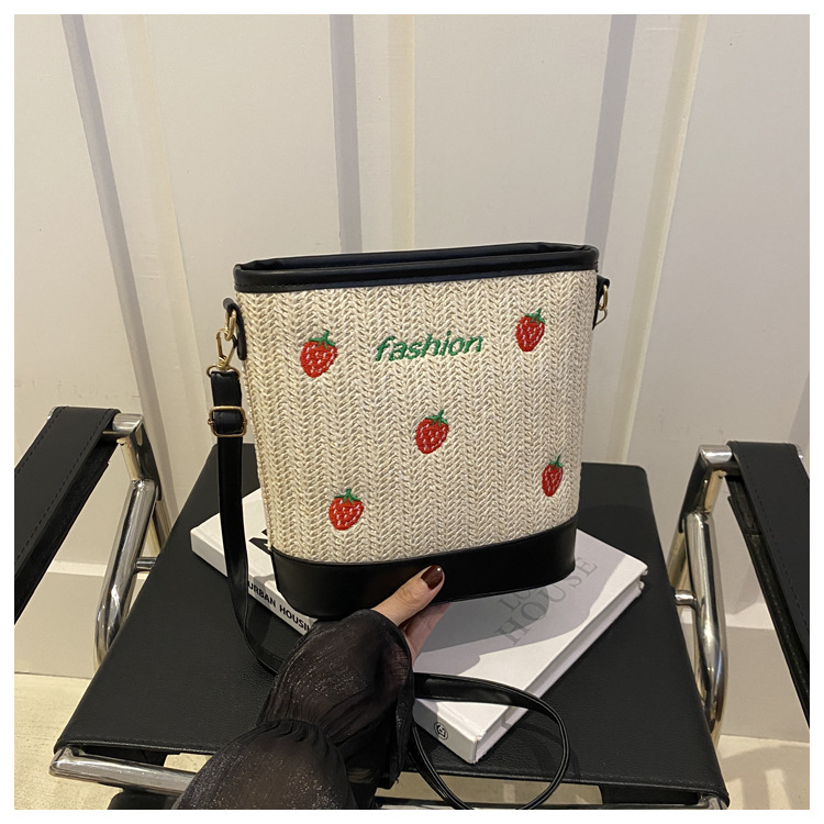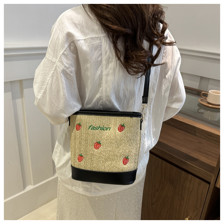 Bagos de balde de tela de fresas de gran capacidad para mujeres 2024 nueva popular alta textura nicho diseño mochila