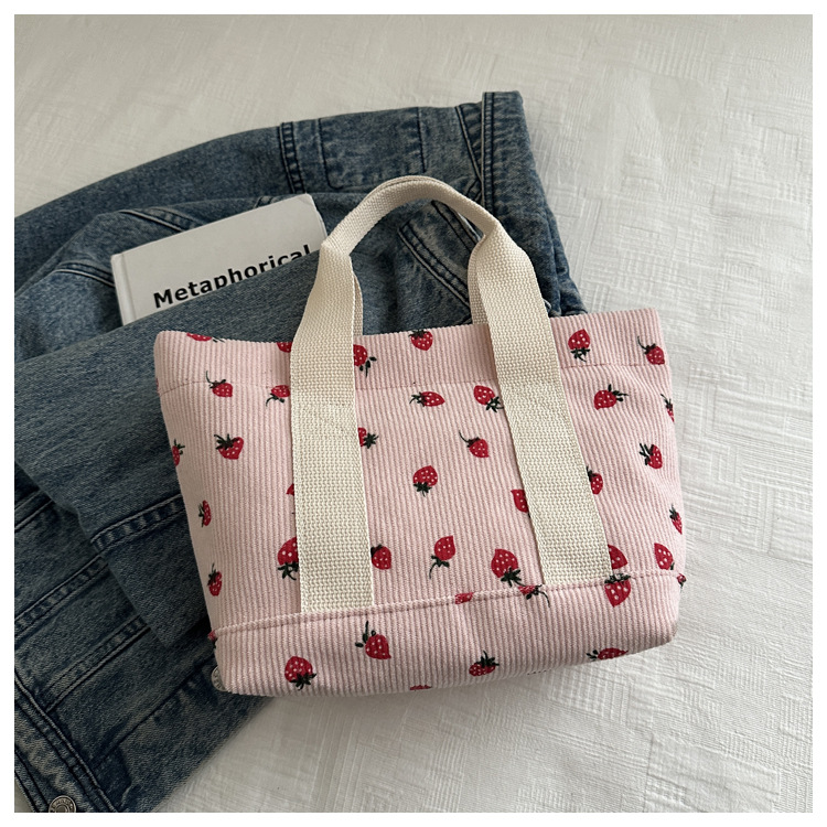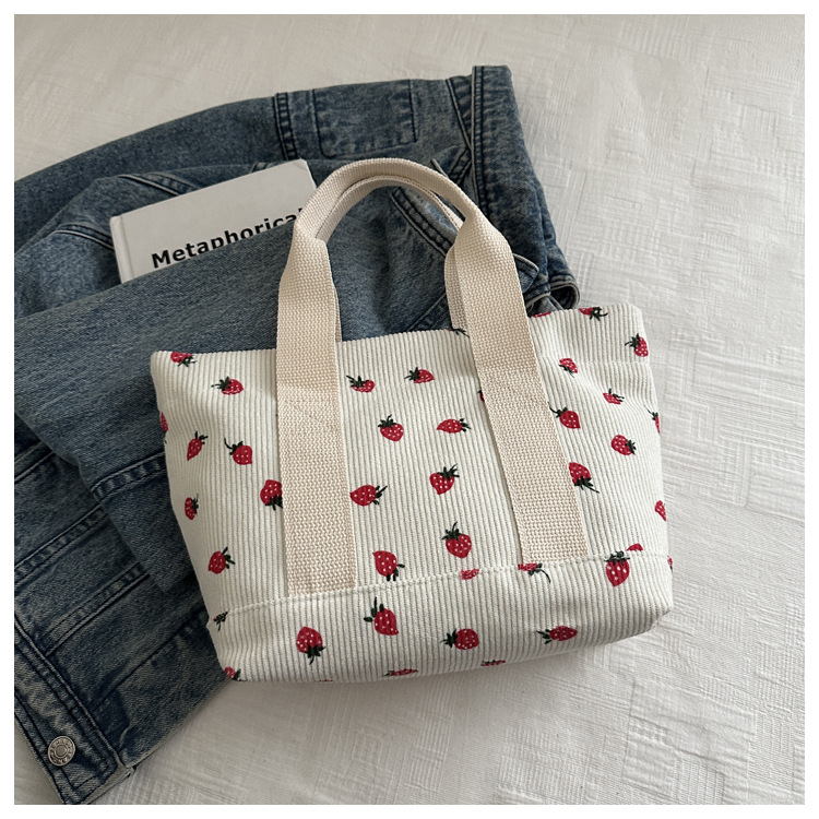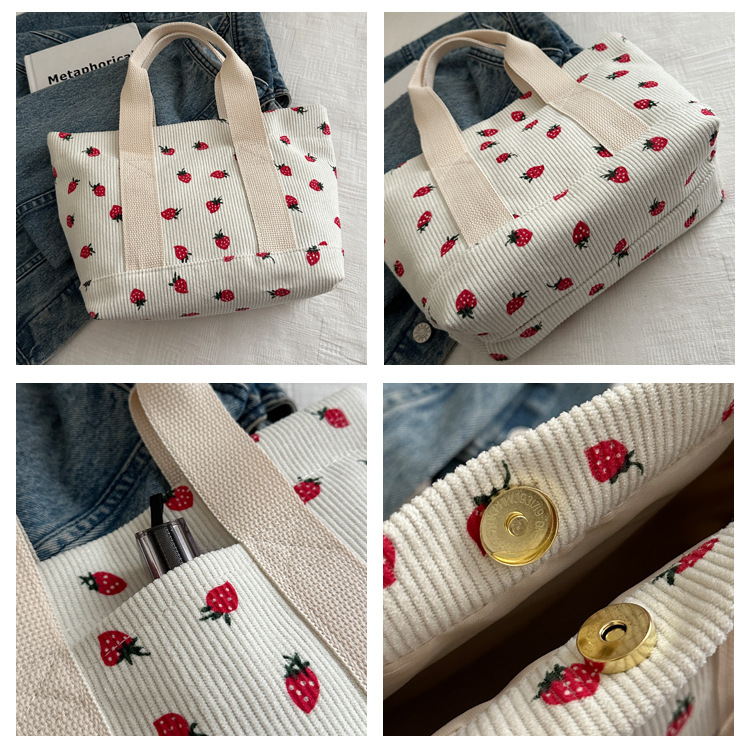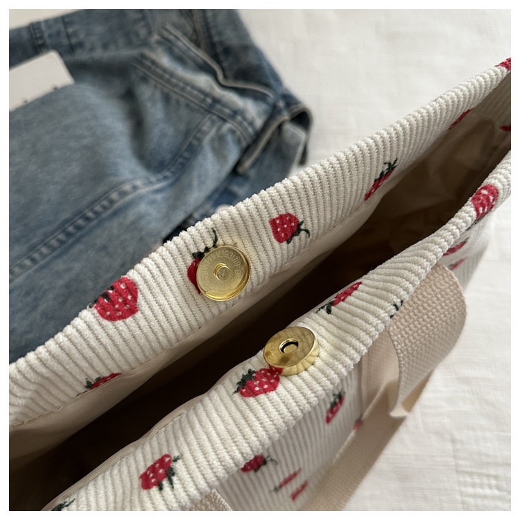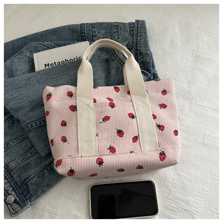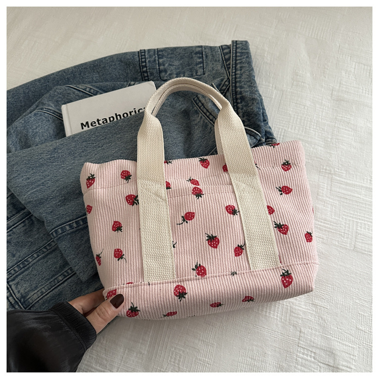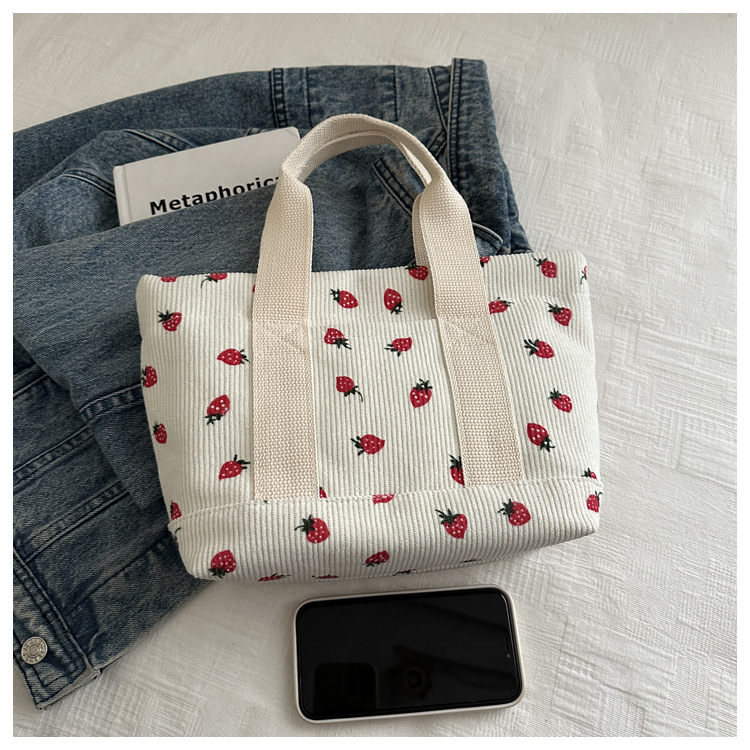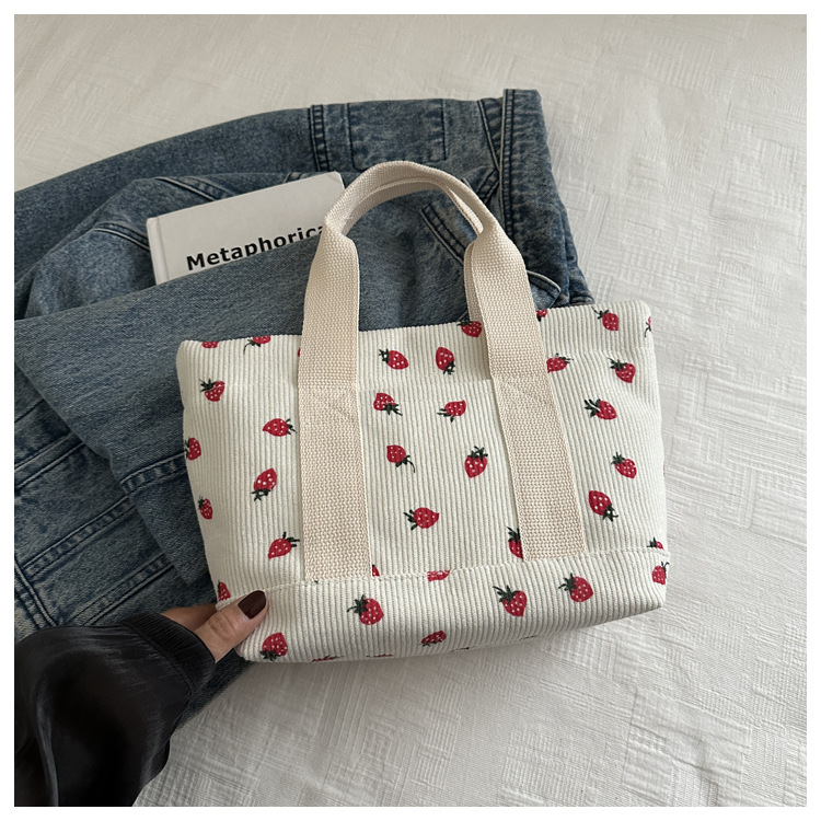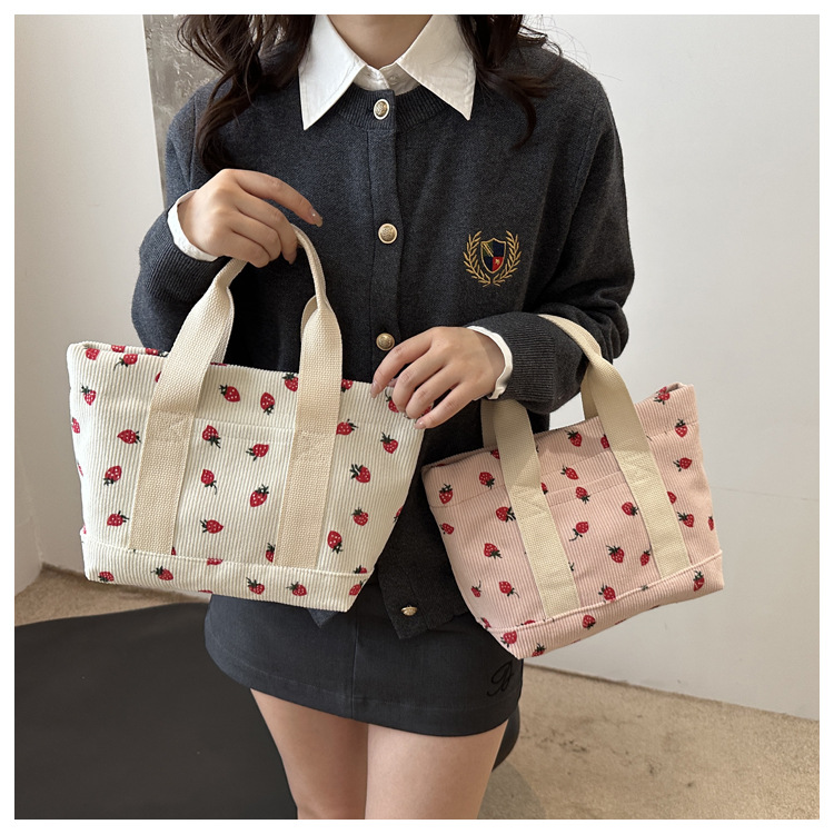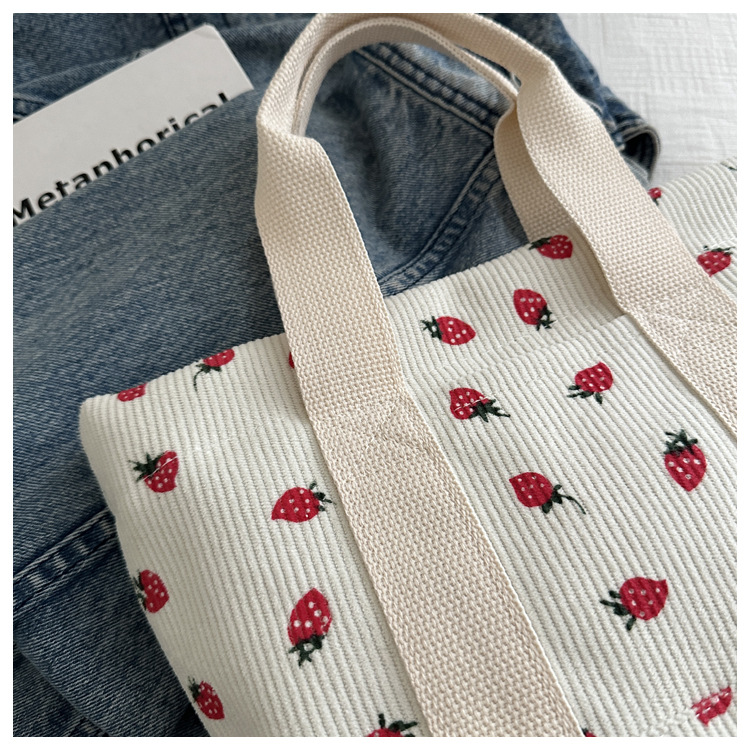 2024 otoño nueva gran capacidad simple moda encantadora impresión de fresas de moda coreana bolsos de chicas de estilo universitario
