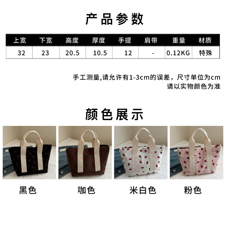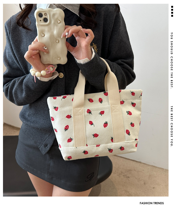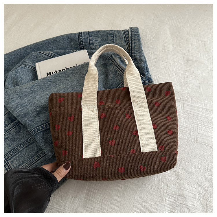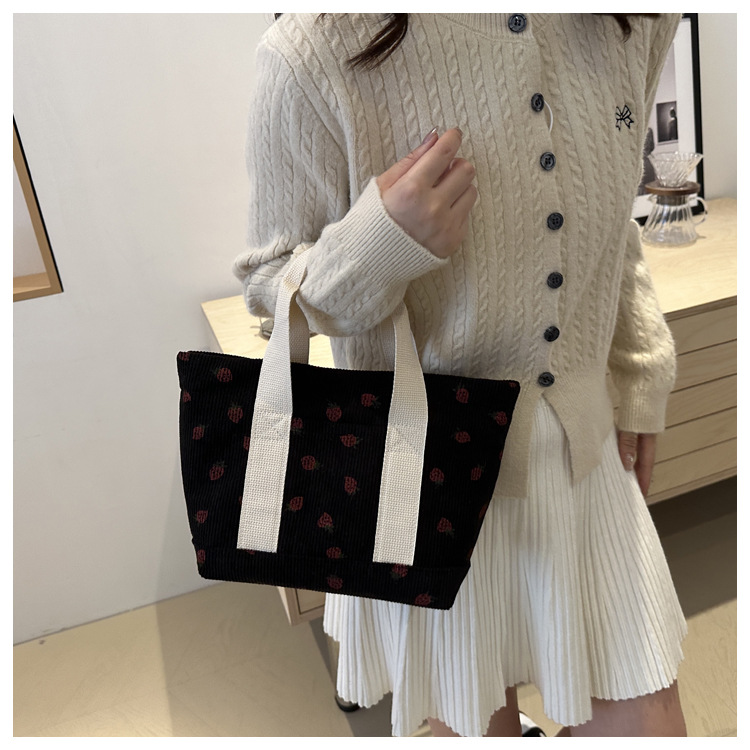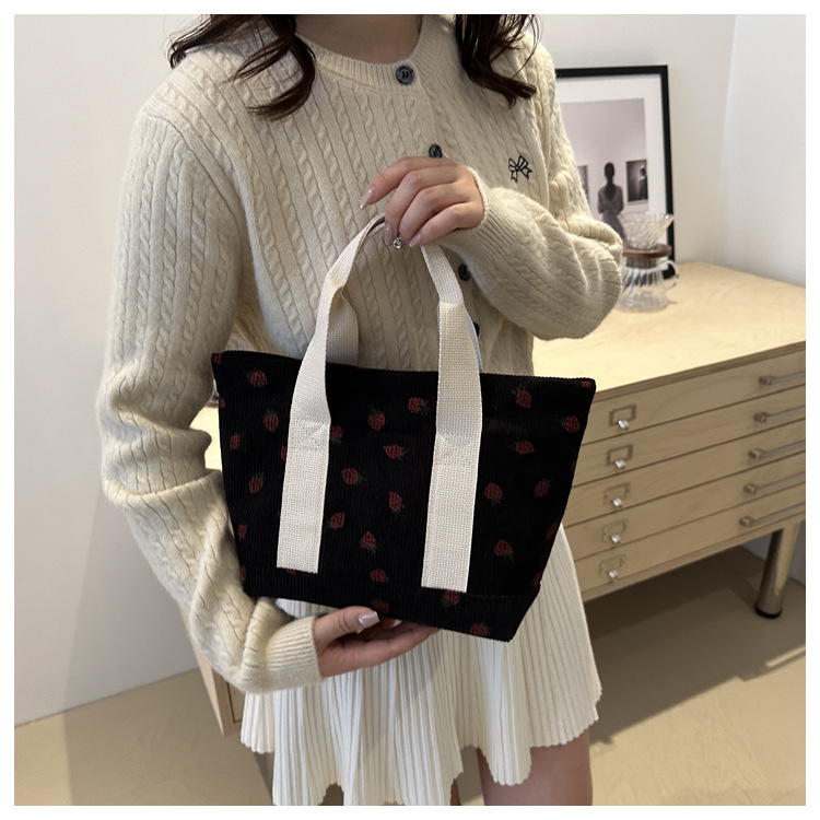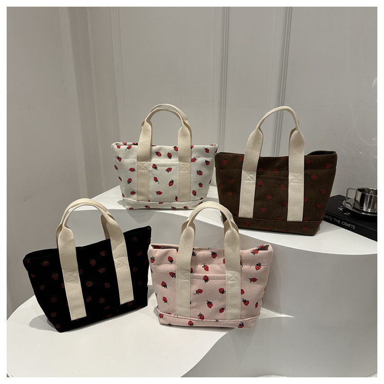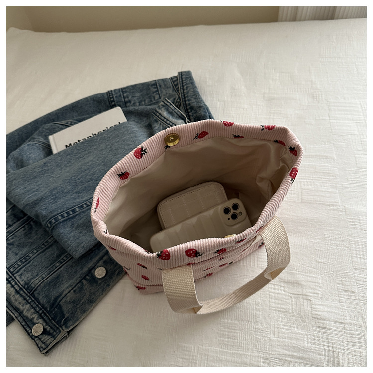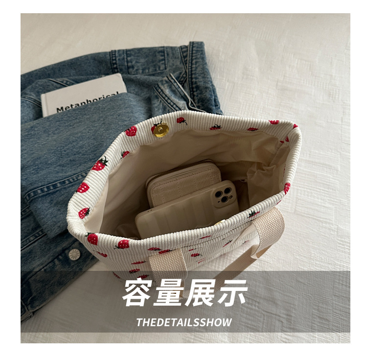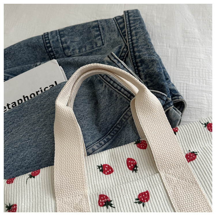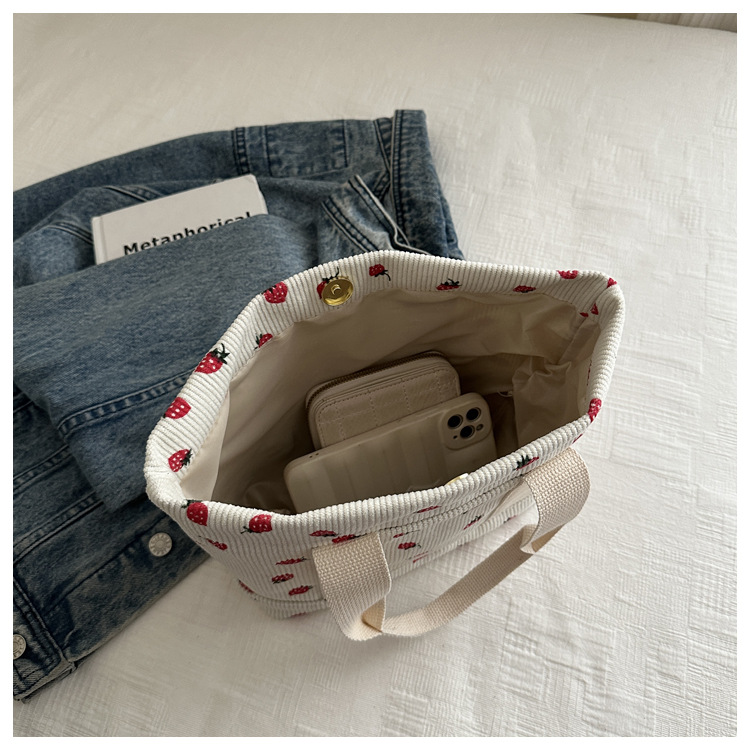2024 otoño nueva gran capacidad simple moda encantadora impresión de fresas de moda coreana bolsos de chicas de estilo universitario