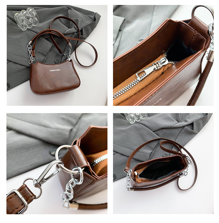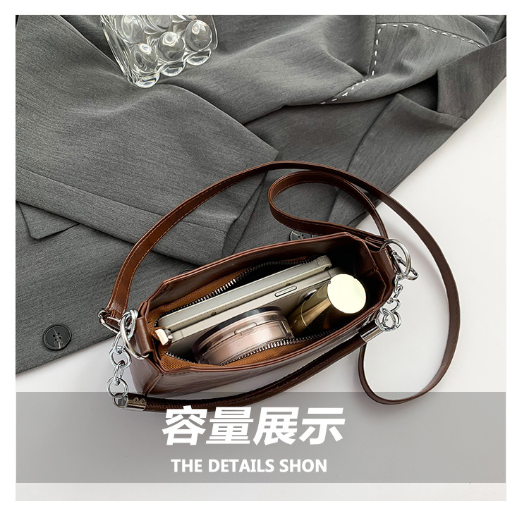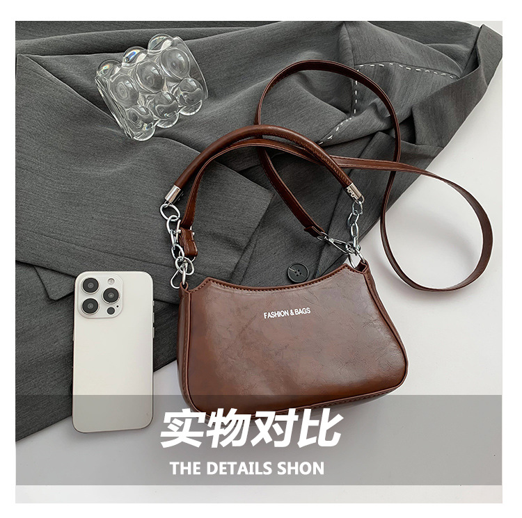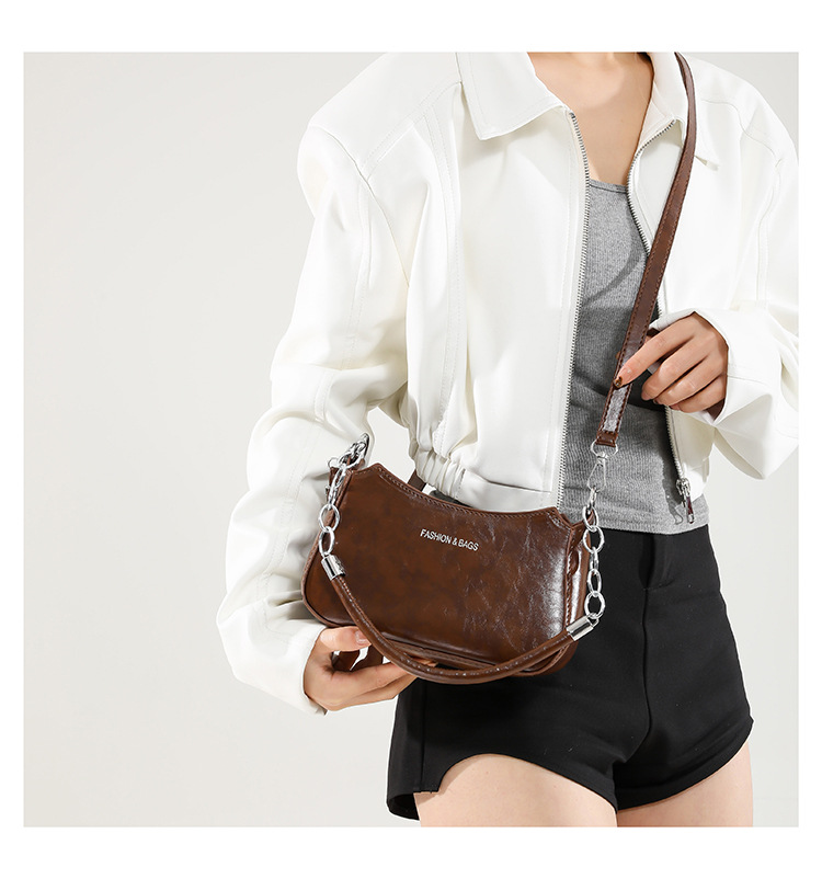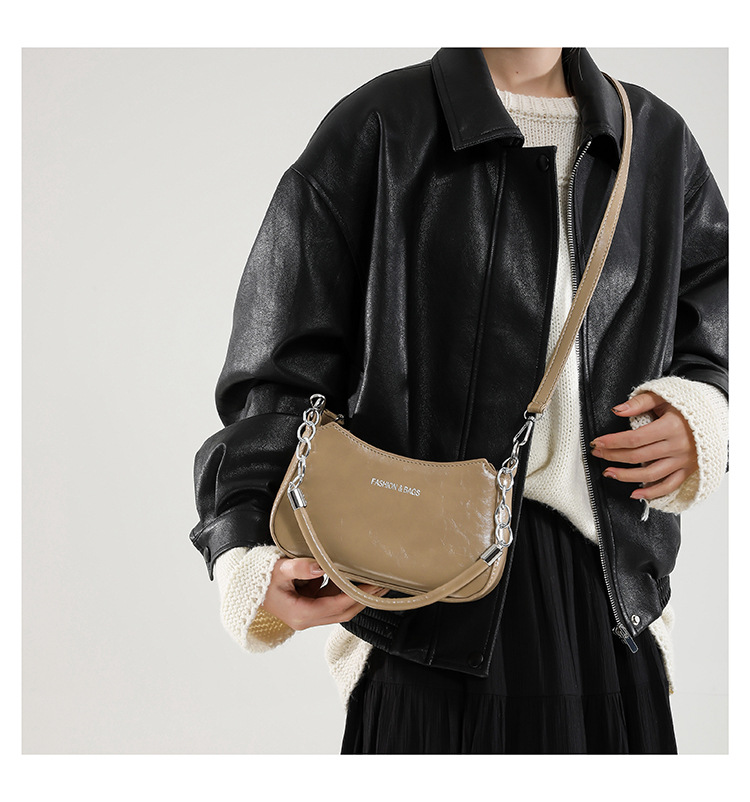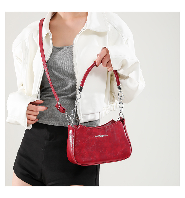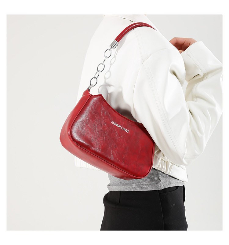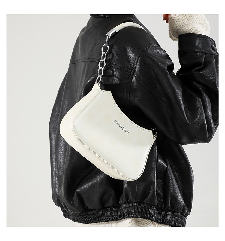 Bolso de mano de cadena de color sólido debajo de la axila para mujeres 2024 nuevo estilo estilo extranjero bolso de hombro de moda textura temperamento mochila casual