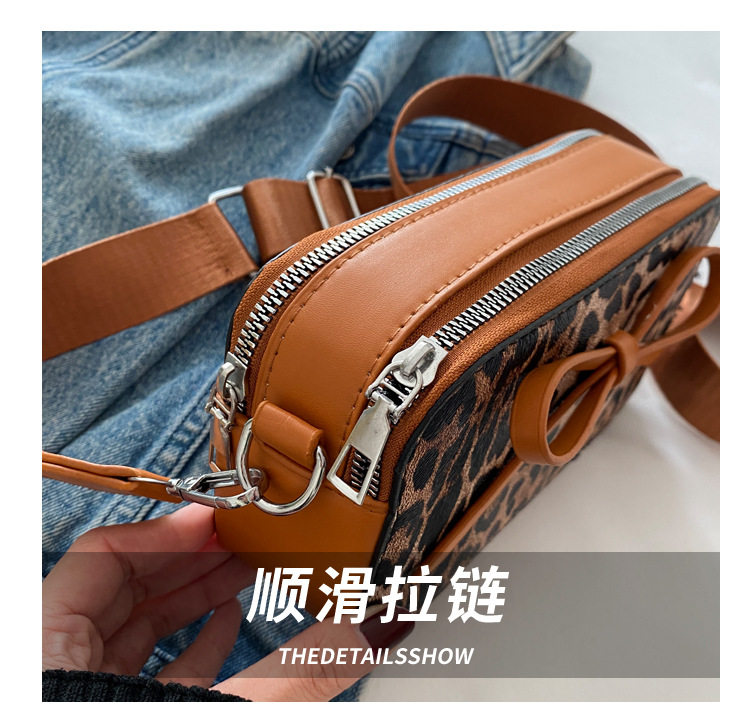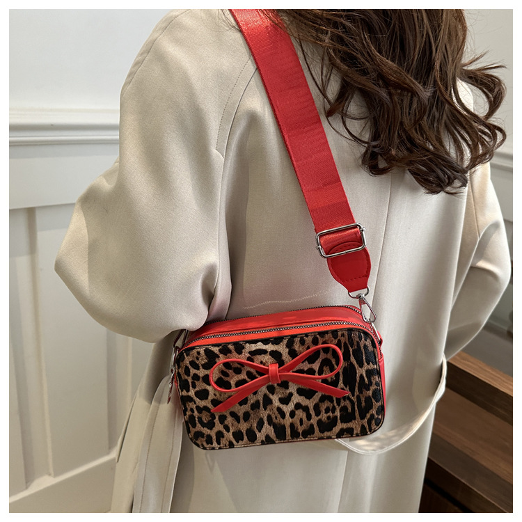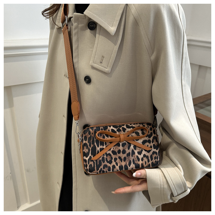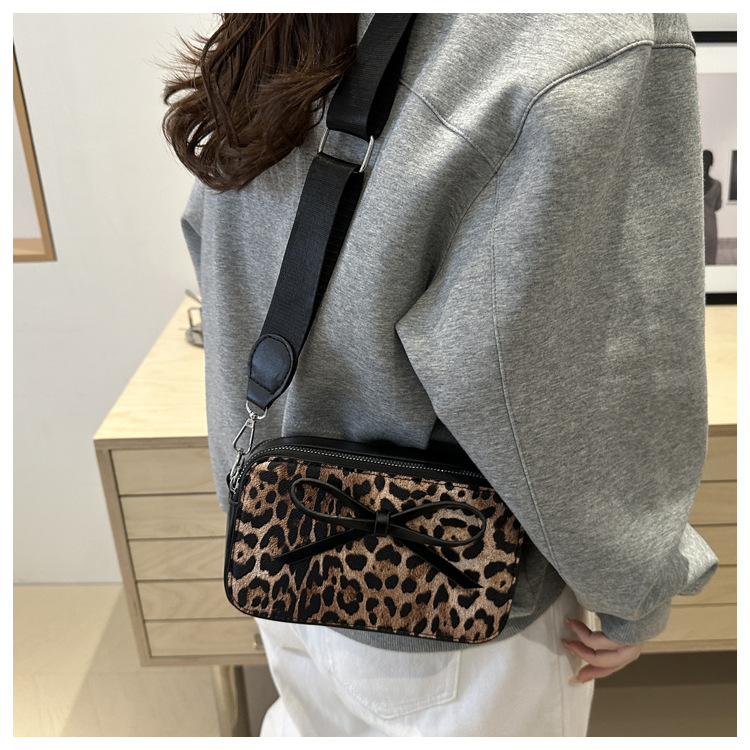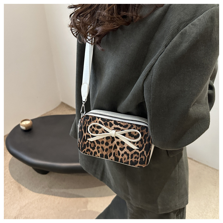 Impresión de moda de arco de invierno 2024 nueva moda de moda personalidad de leopardo mochila de hombro pequeño bolso cuadrado para mujeres