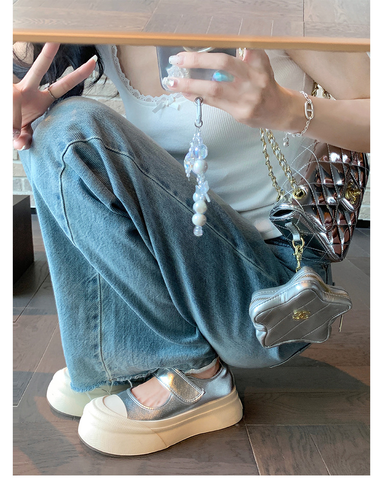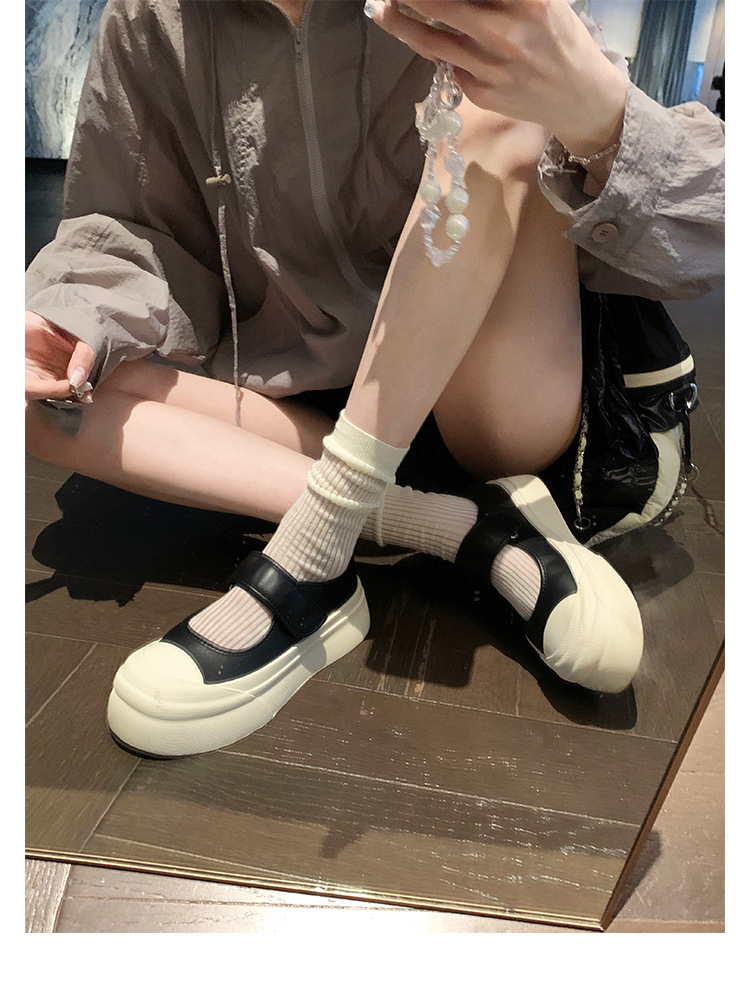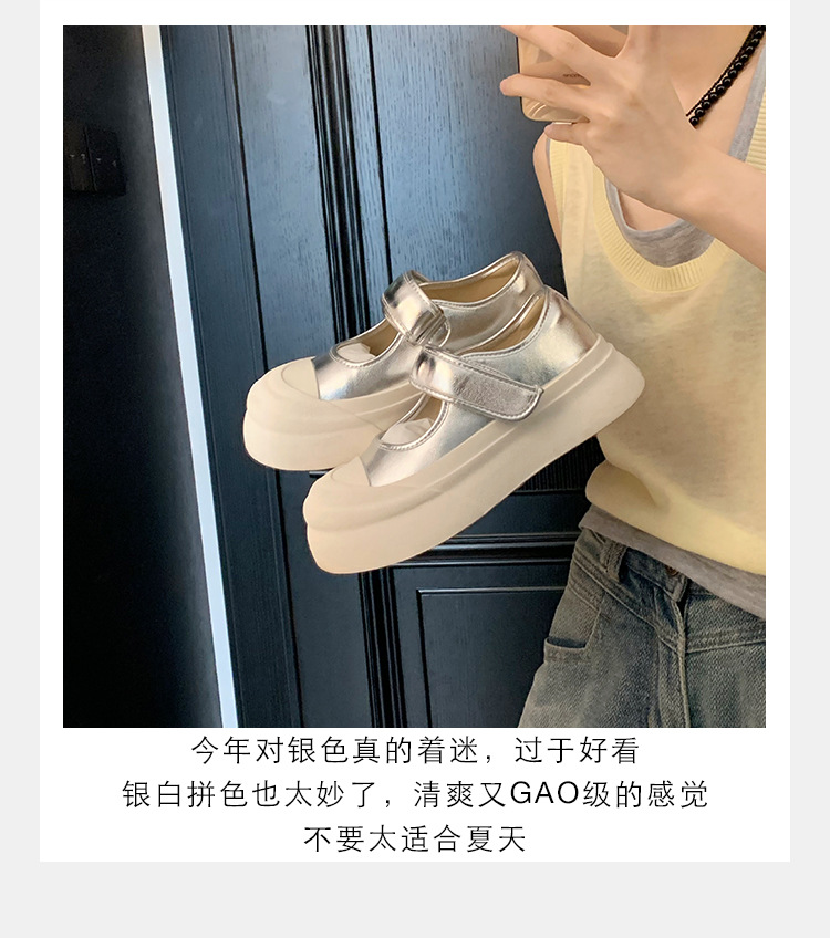 Versión de piel de vaca ~ Ruth con zapatos de cuero de cabeza grande para mujeres con suela gruesa muffin velcro marizhen zapatos blancos pequeños