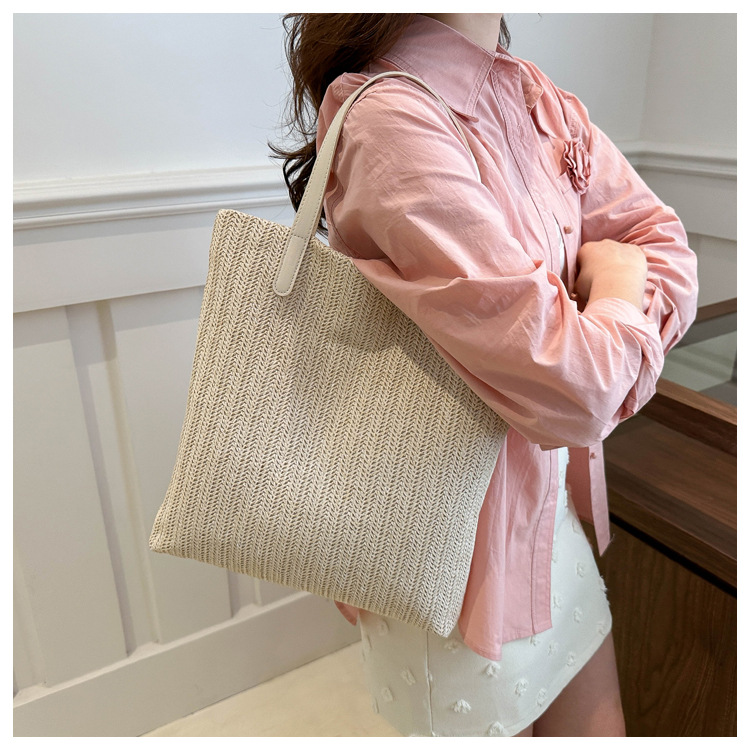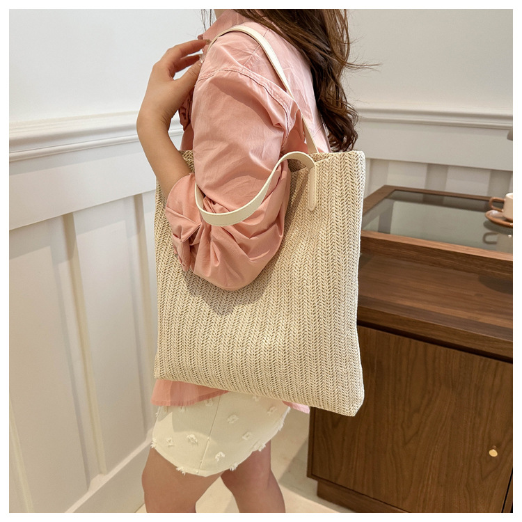 Bolsa de tejido para mujeres este nuevo verano ins simple bolsa de paja de viaje diario bolsa roja