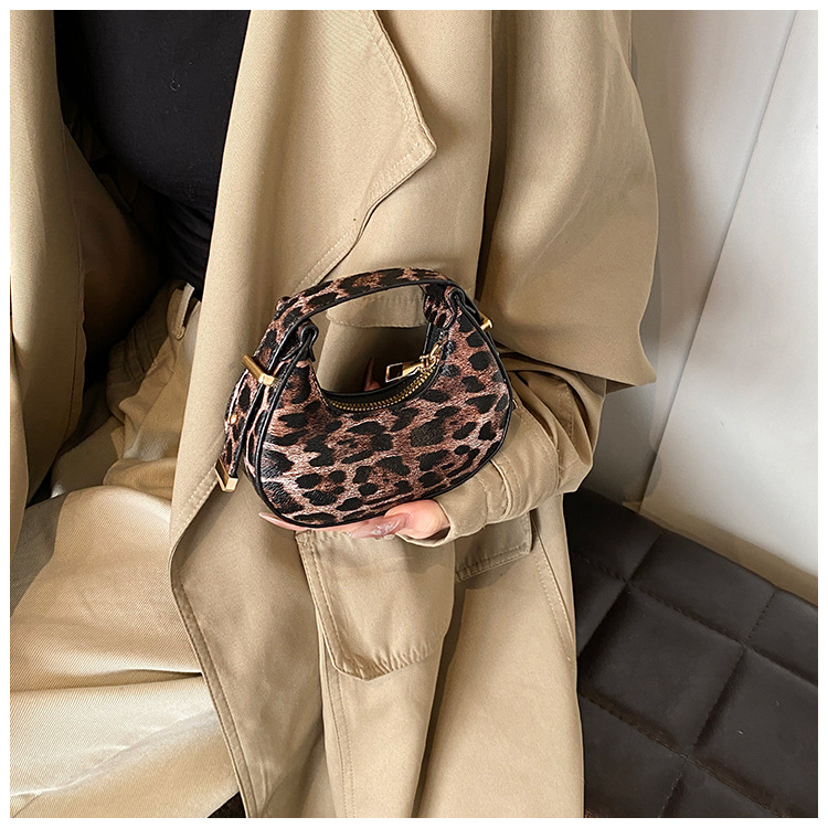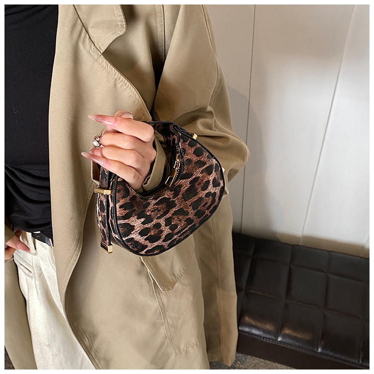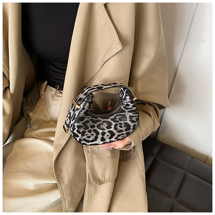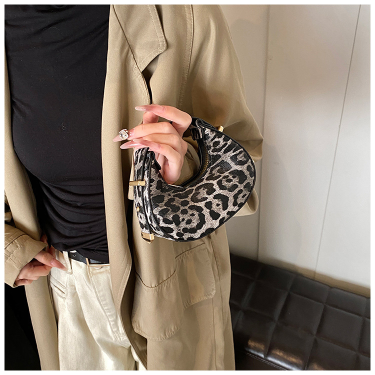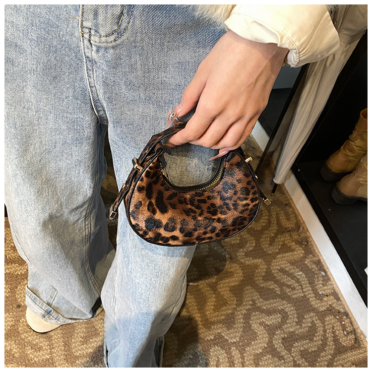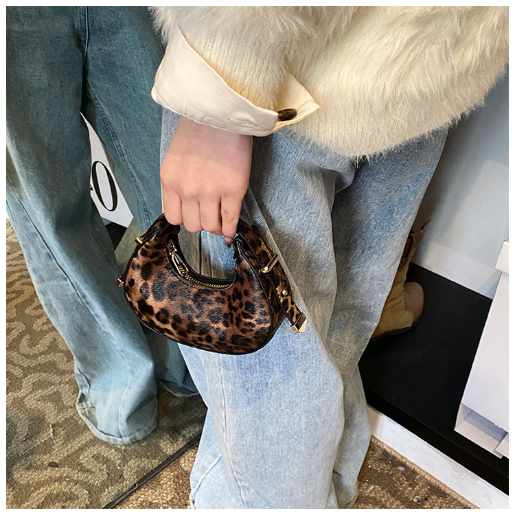 Tendencia nueva bolsa de mujer casual 2024 personalidad coreana de invierno mini media luna temperamento leopardo bolso de mano