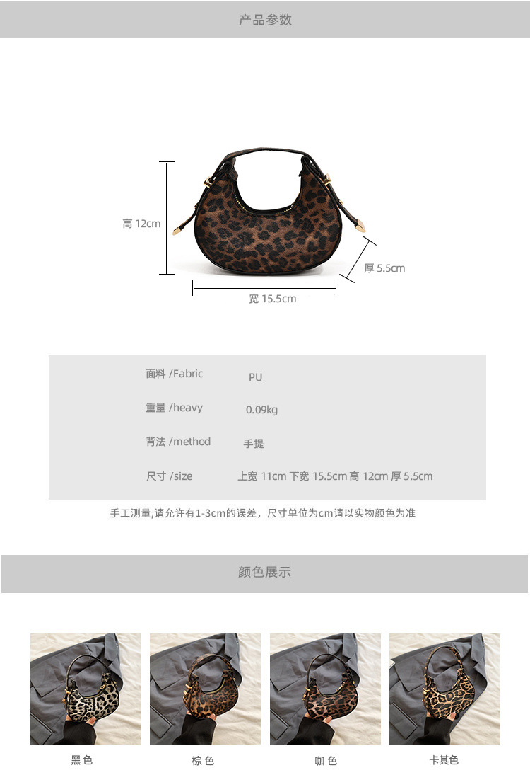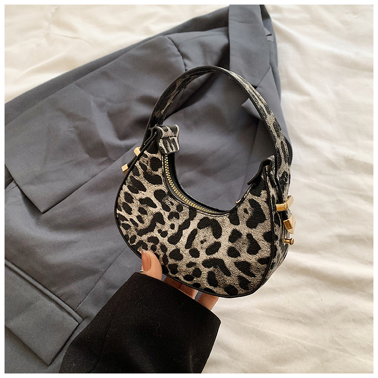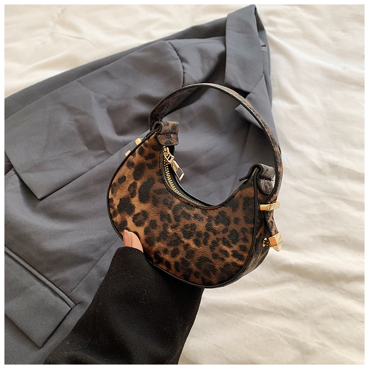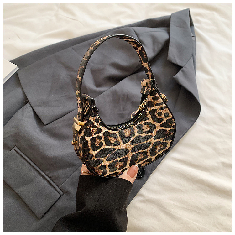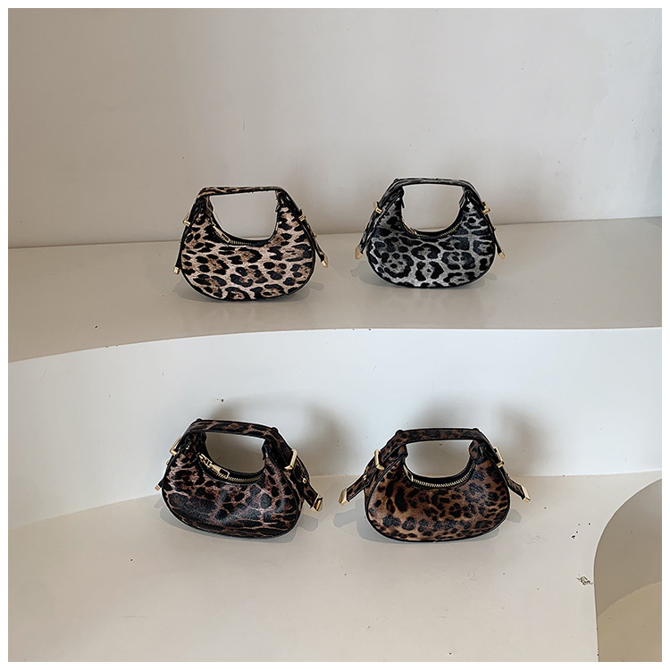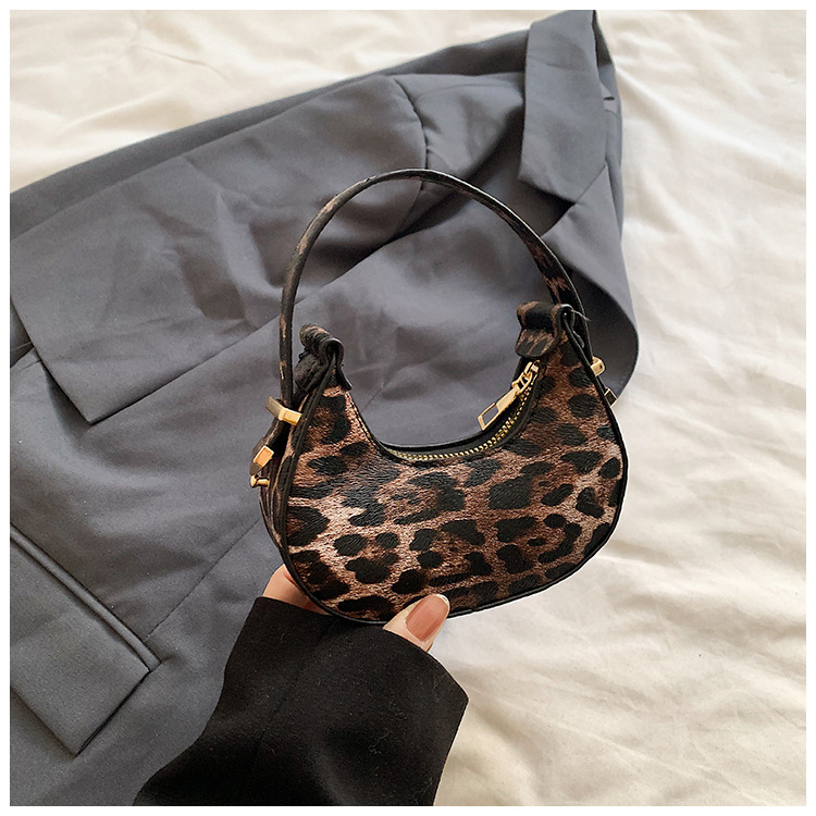 Tendencia nueva bolsa de mujer casual 2024 personalidad coreana de invierno mini media luna temperamento leopardo bolso de mano