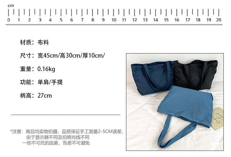 Jeans ligero, bolso de hombro único, bolso portátil simple, maleta de trabajo, bolso de mujer de gran capacidad.