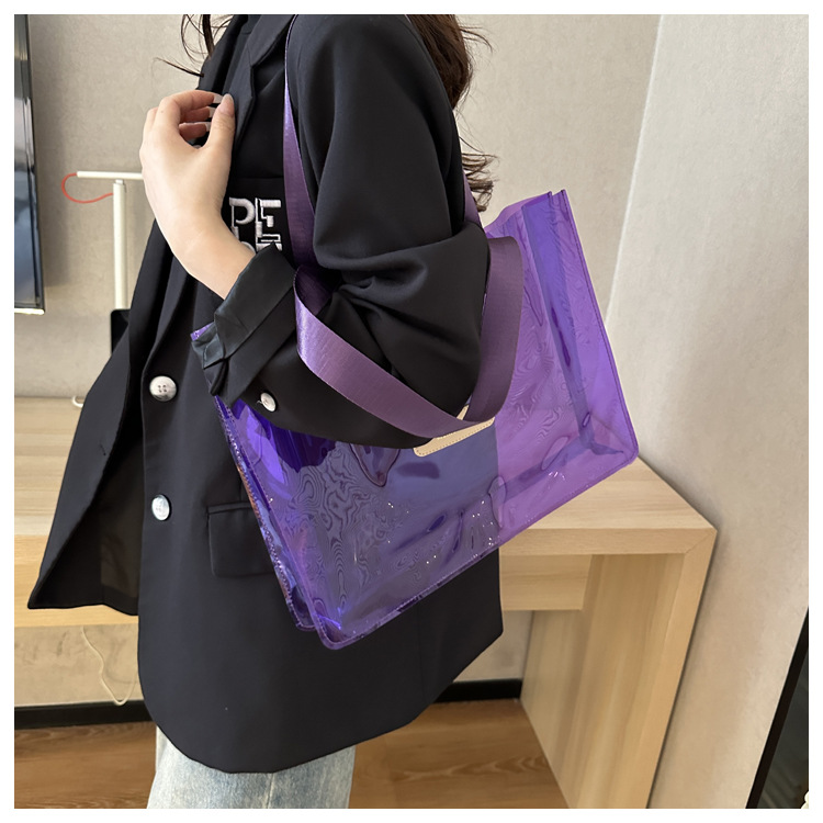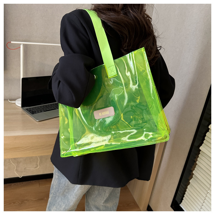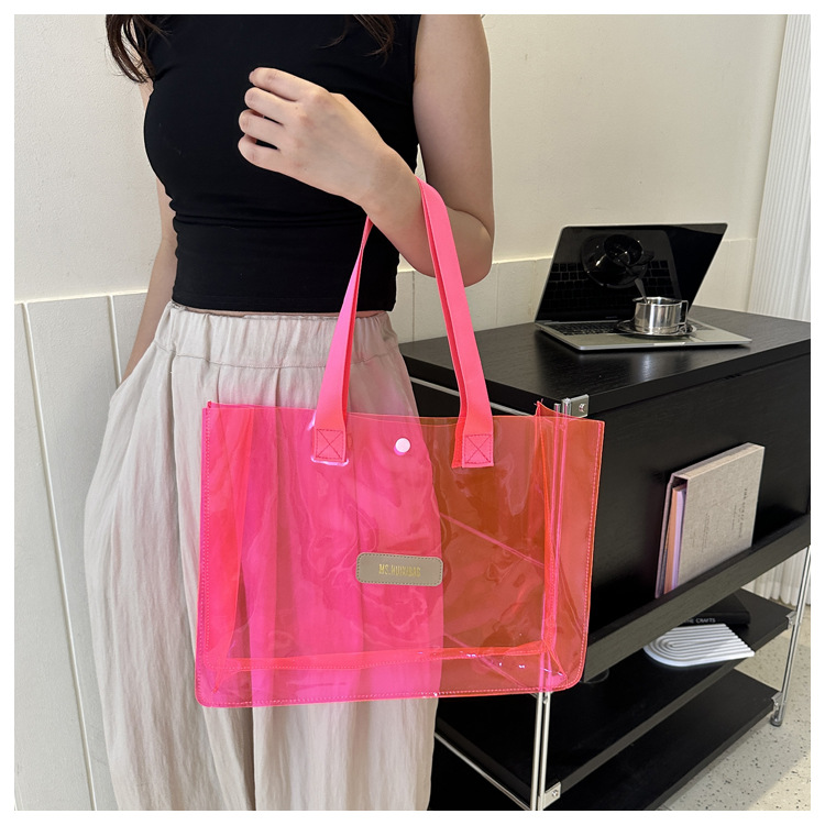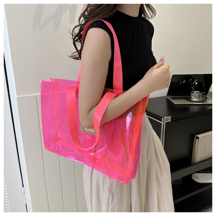 Este verano popular bolsa de jalea transparente de gran capacidad para mujeres 2024 nueva moda bolsa de plástico versátil