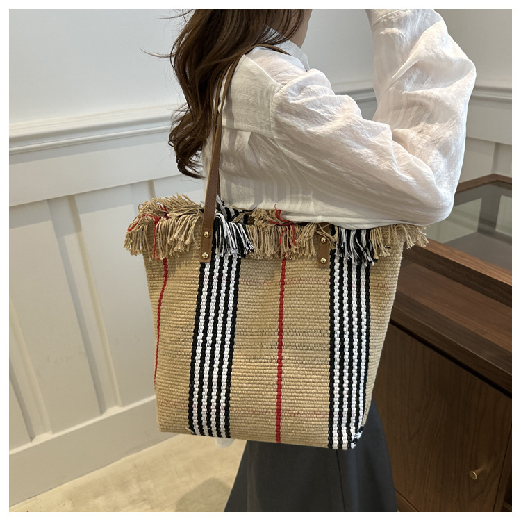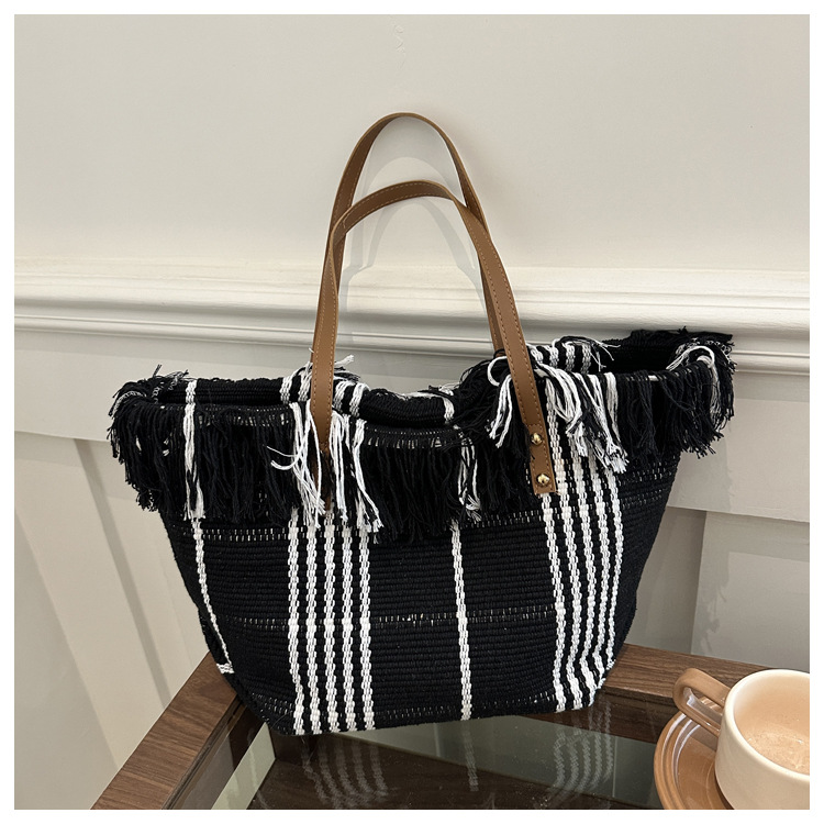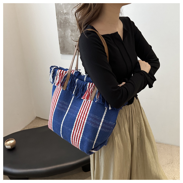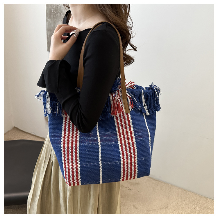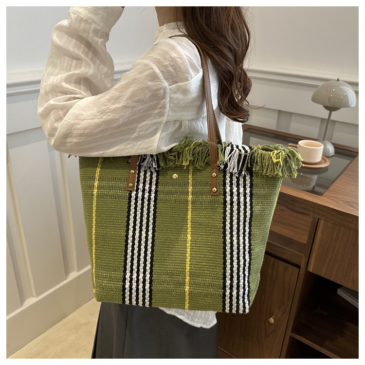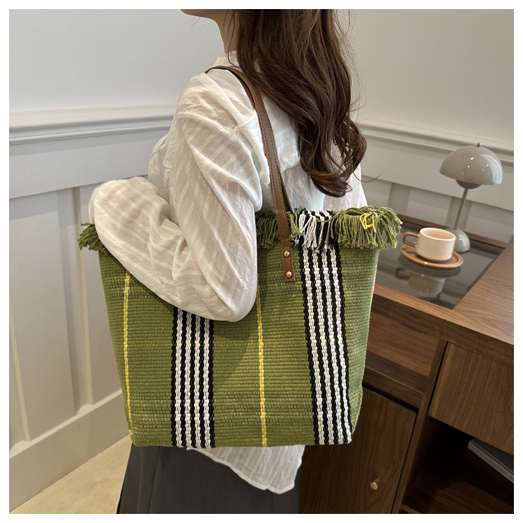2024 nuevo bolso de tote de lona de cercanías de gran capacidad de moda con borlas de un solo hombro bolso tejido de todo fósforo bolso de lona