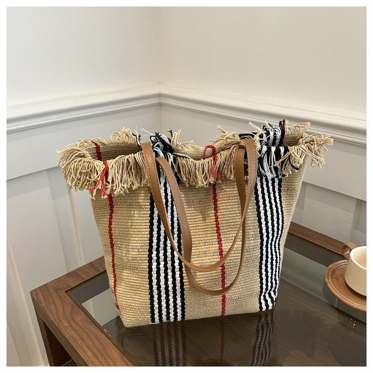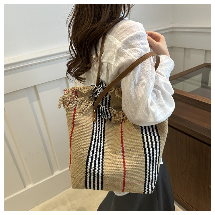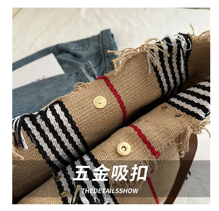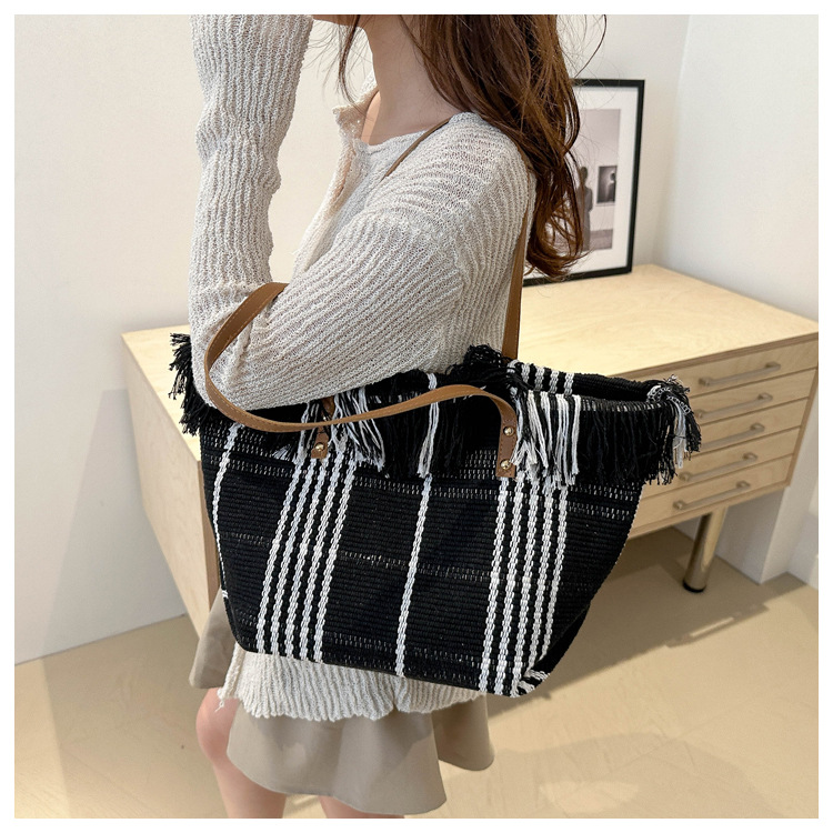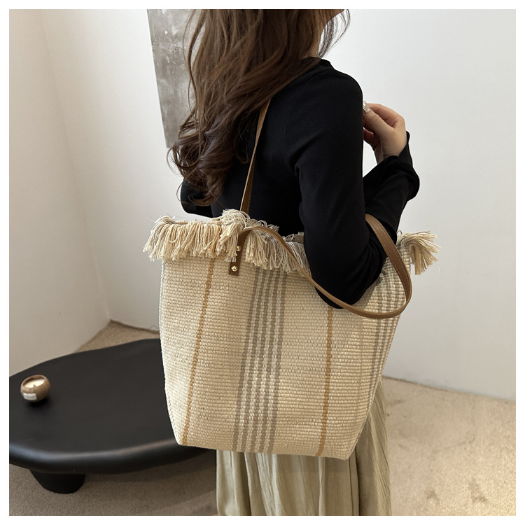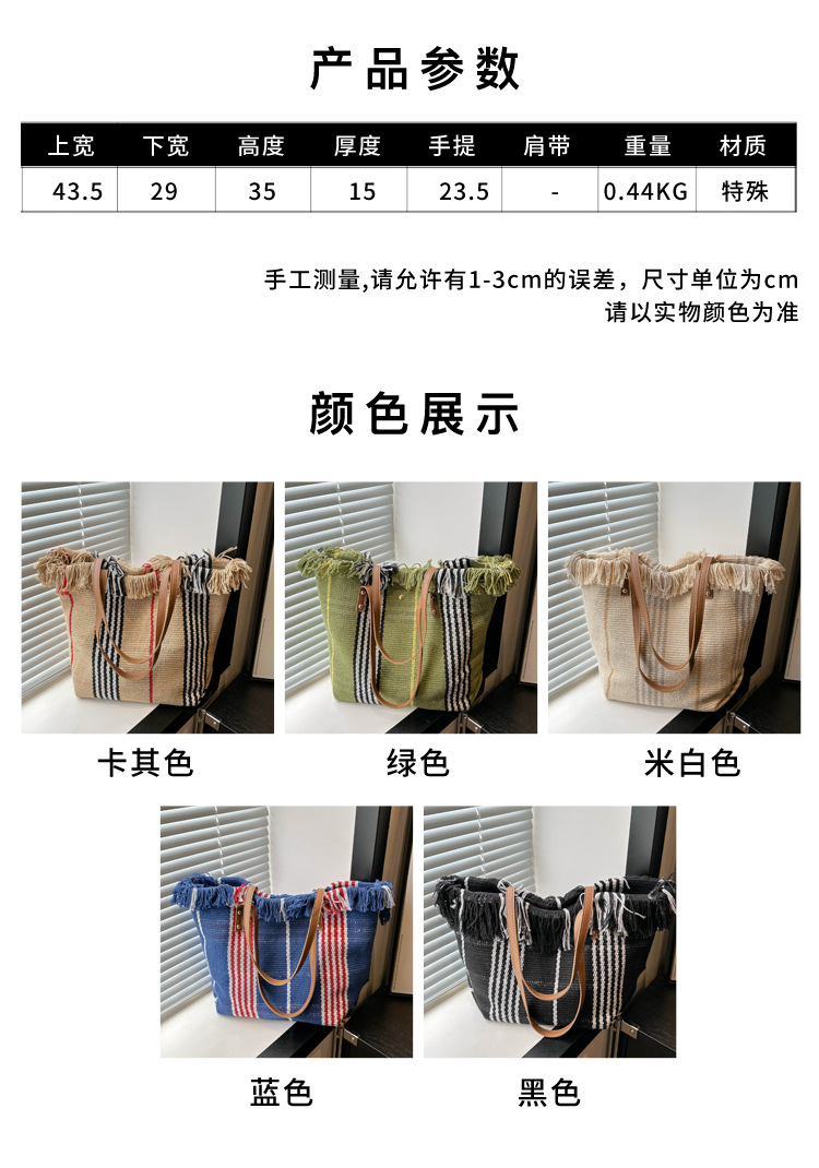 2024 nuevo bolso de tote de lona de cercanías de gran capacidad de moda con borlas de un solo hombro bolso tejido de todo fósforo bolso de lona