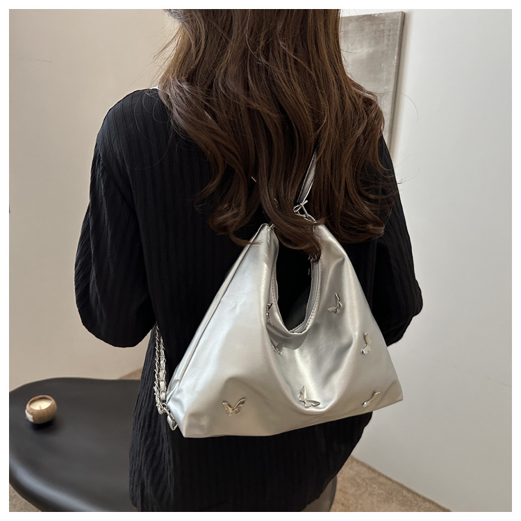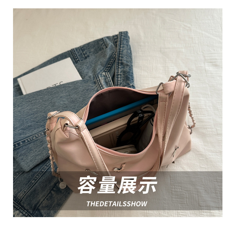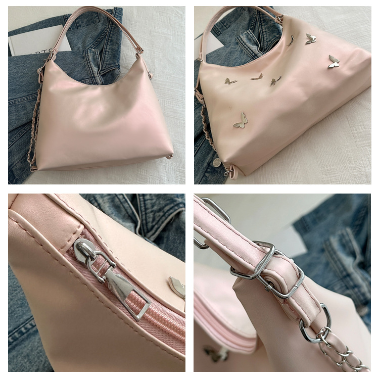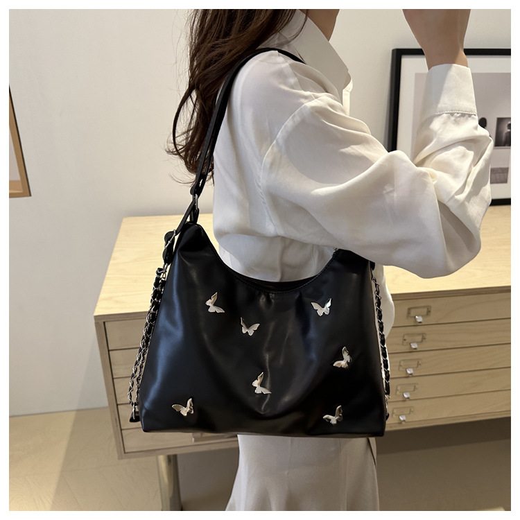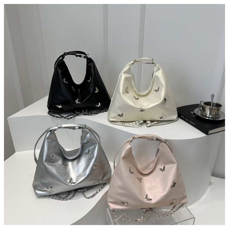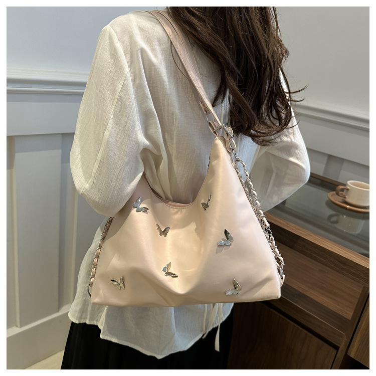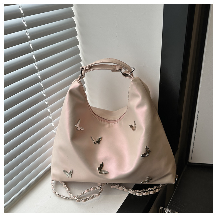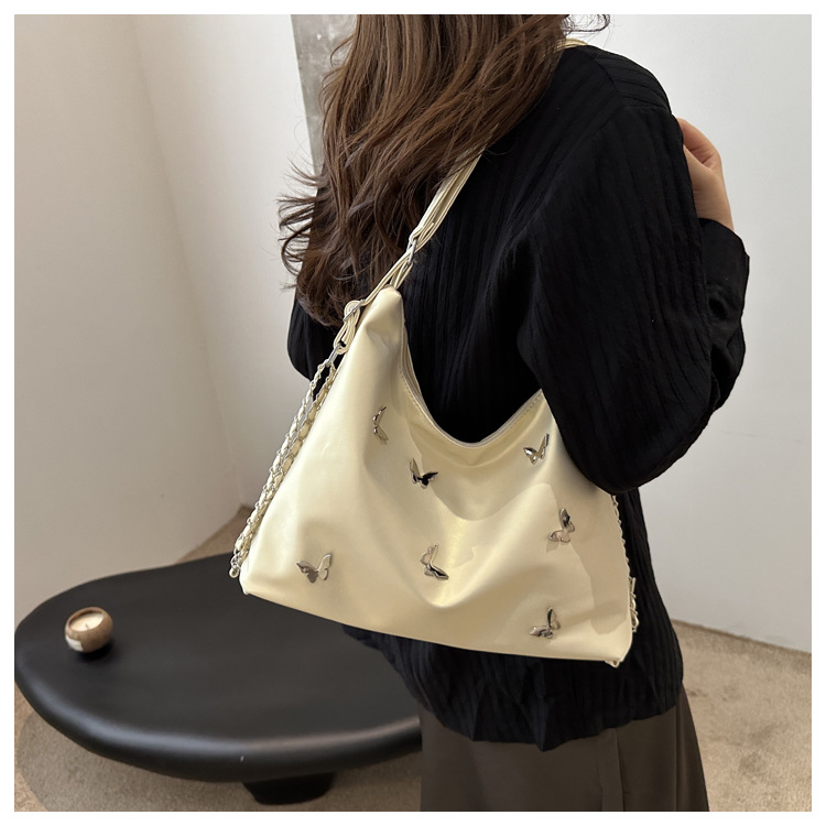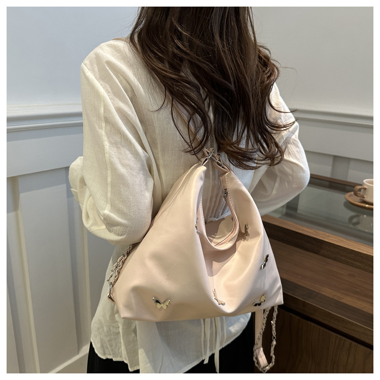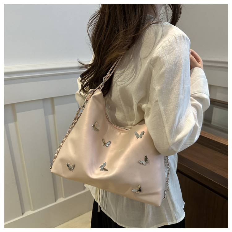 [Bolso de doble propósito de hombro único] bolso de gran capacidad de mariposa blanca perlada 2024 nueva moda flexible y suave